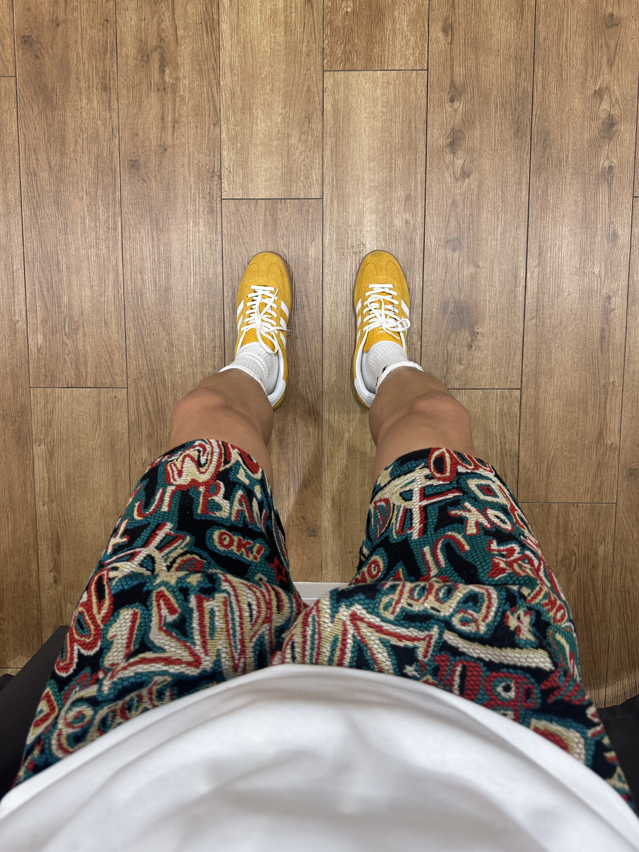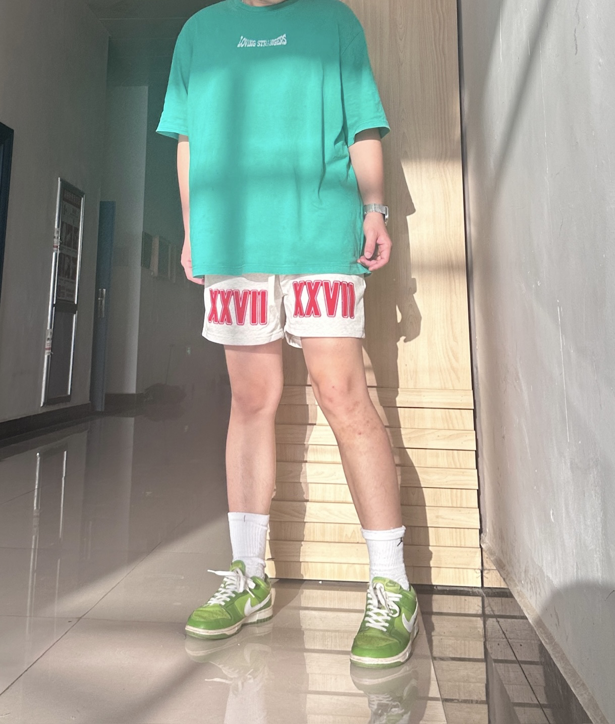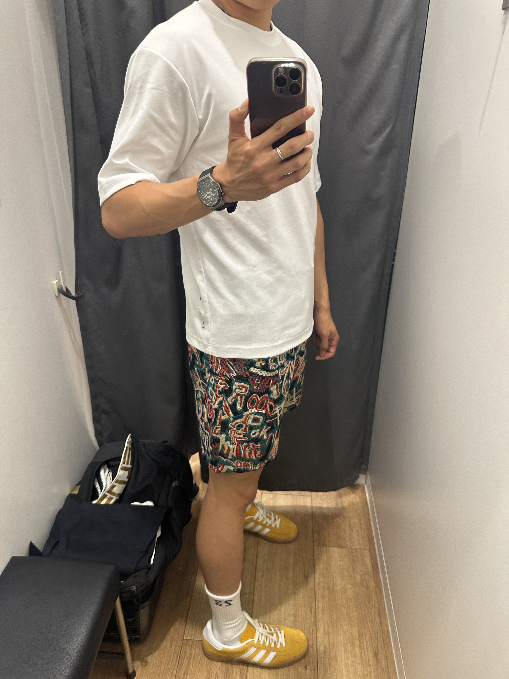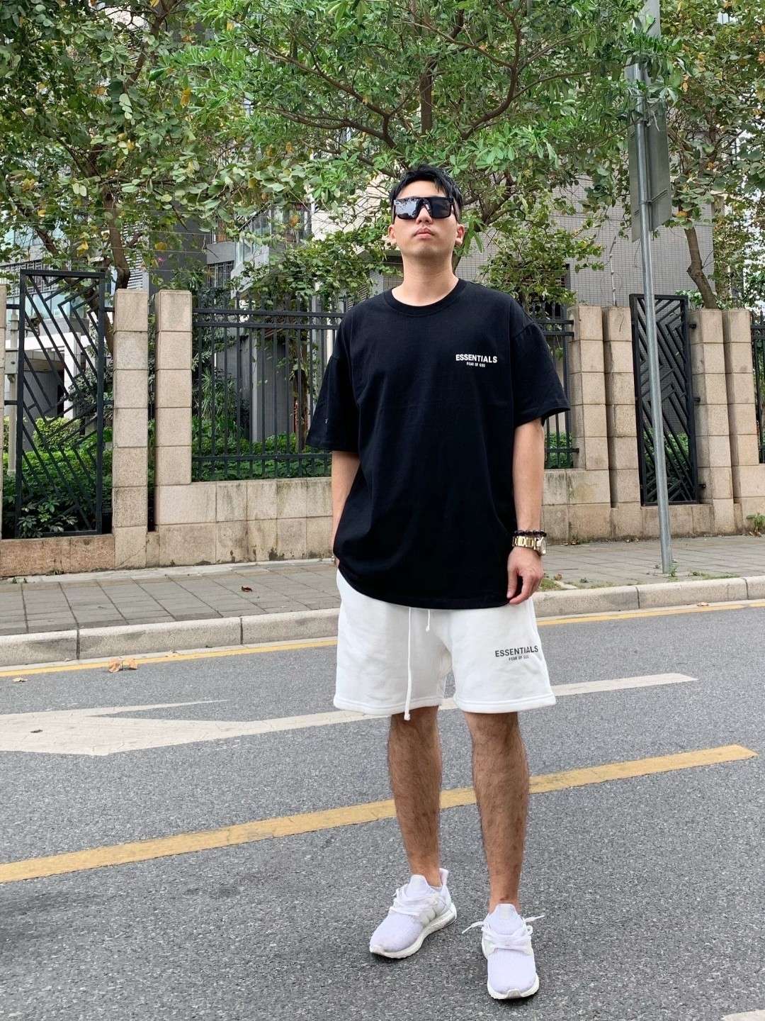 身高|体重:190/83kg 🧍♂️ 穿搭风格:美式穿搭 👔 上衣:纯白T 👖 下装:花短裤 👟 鞋子:gallze 🎒配饰: