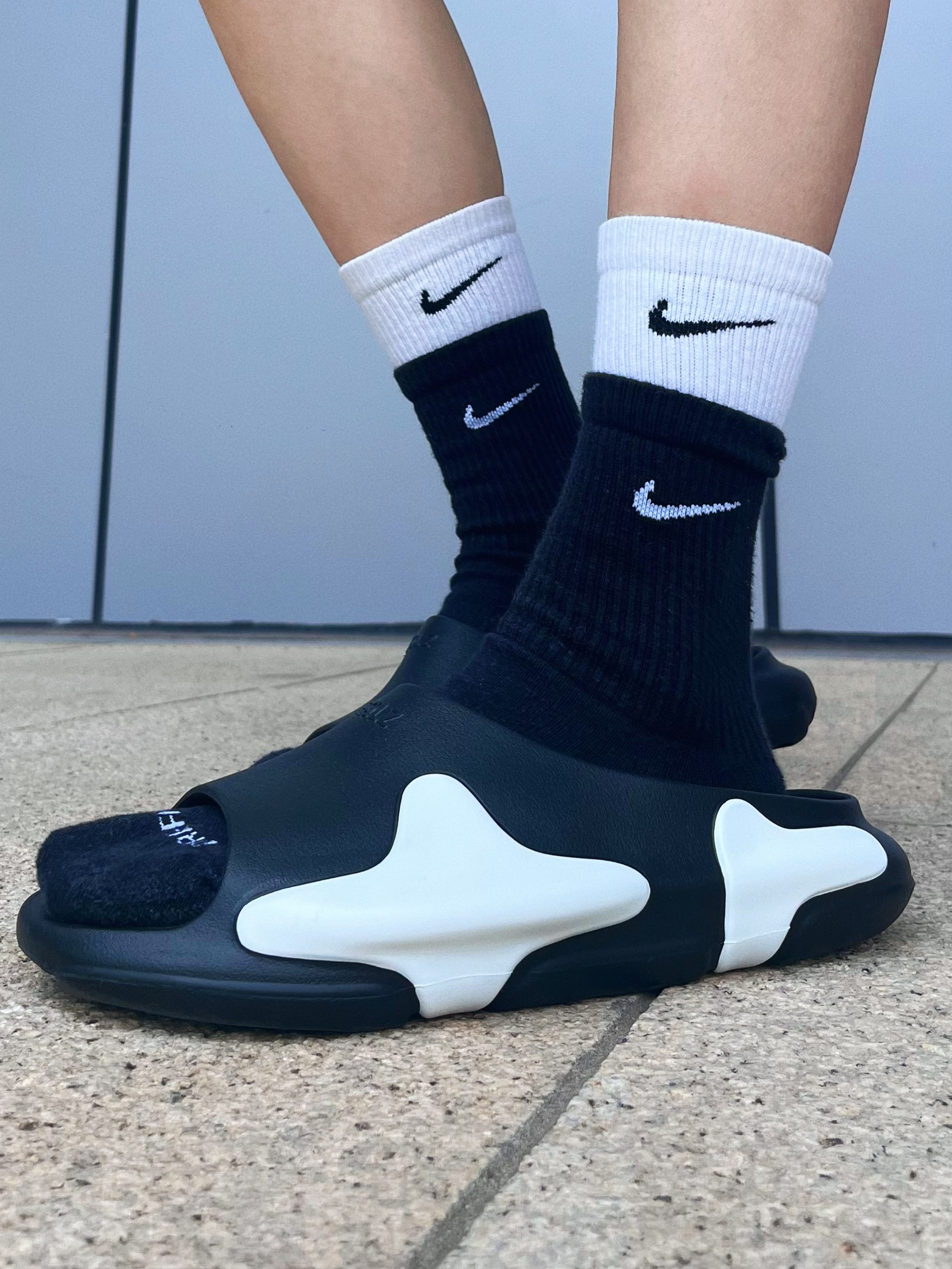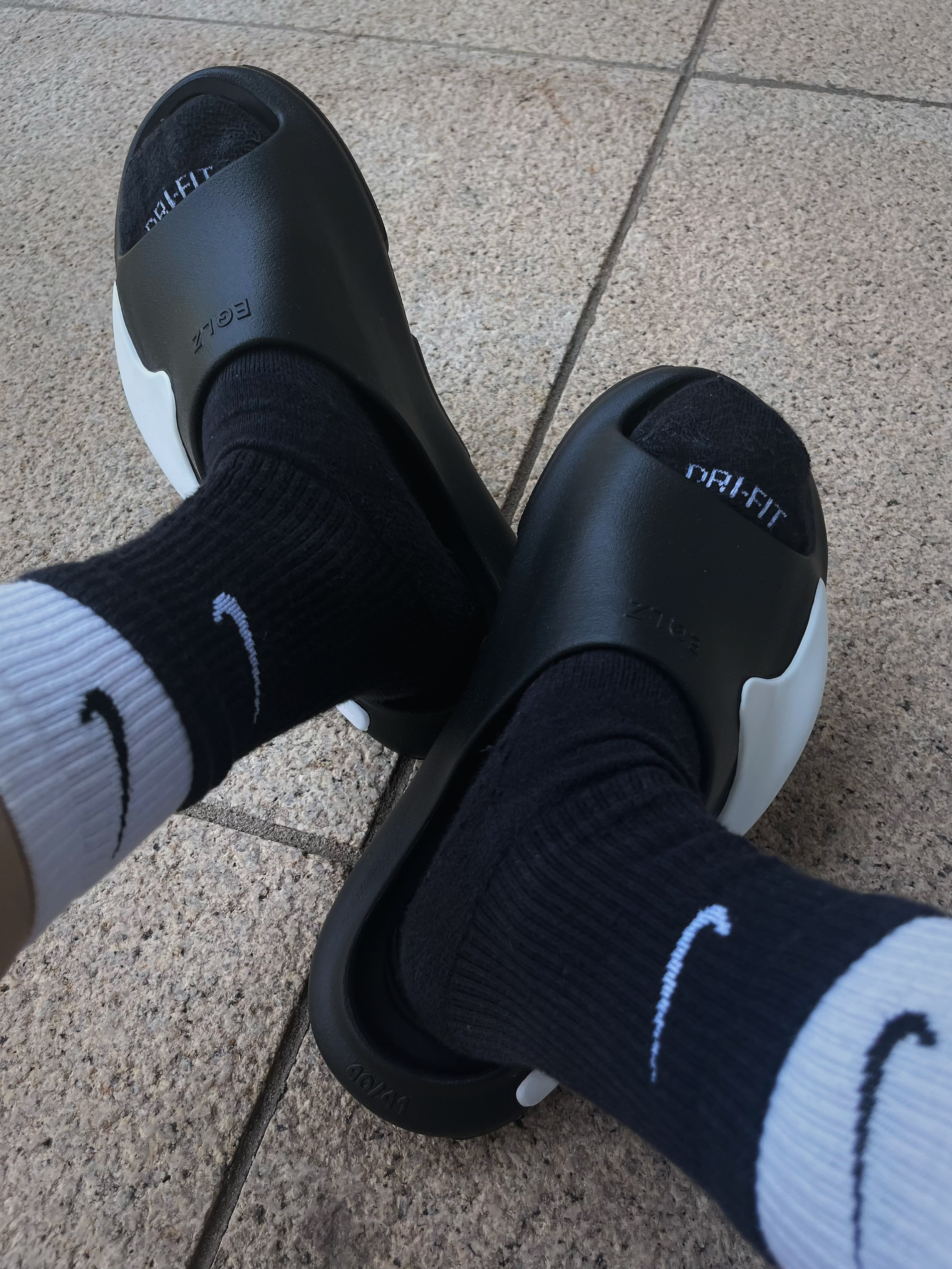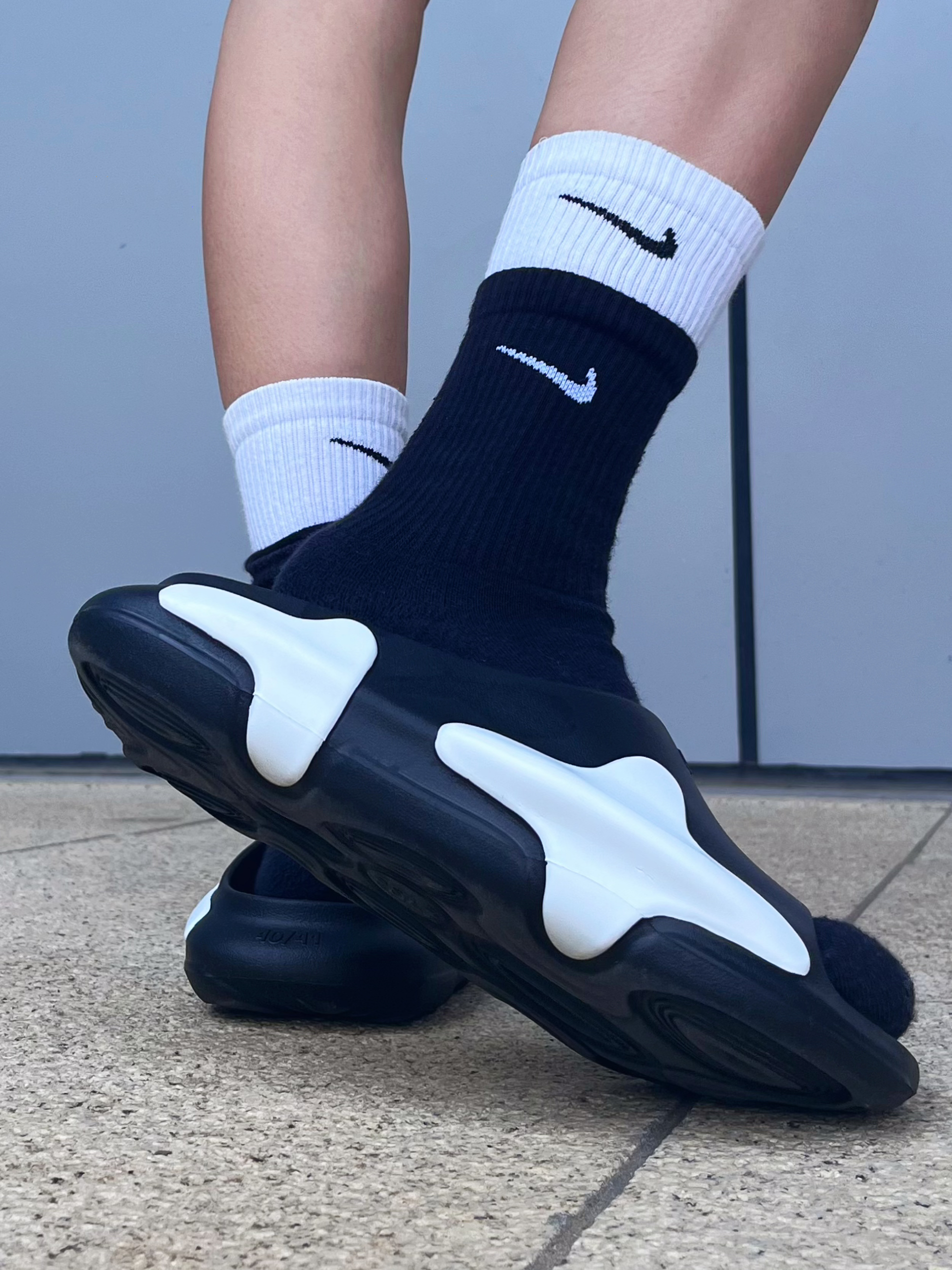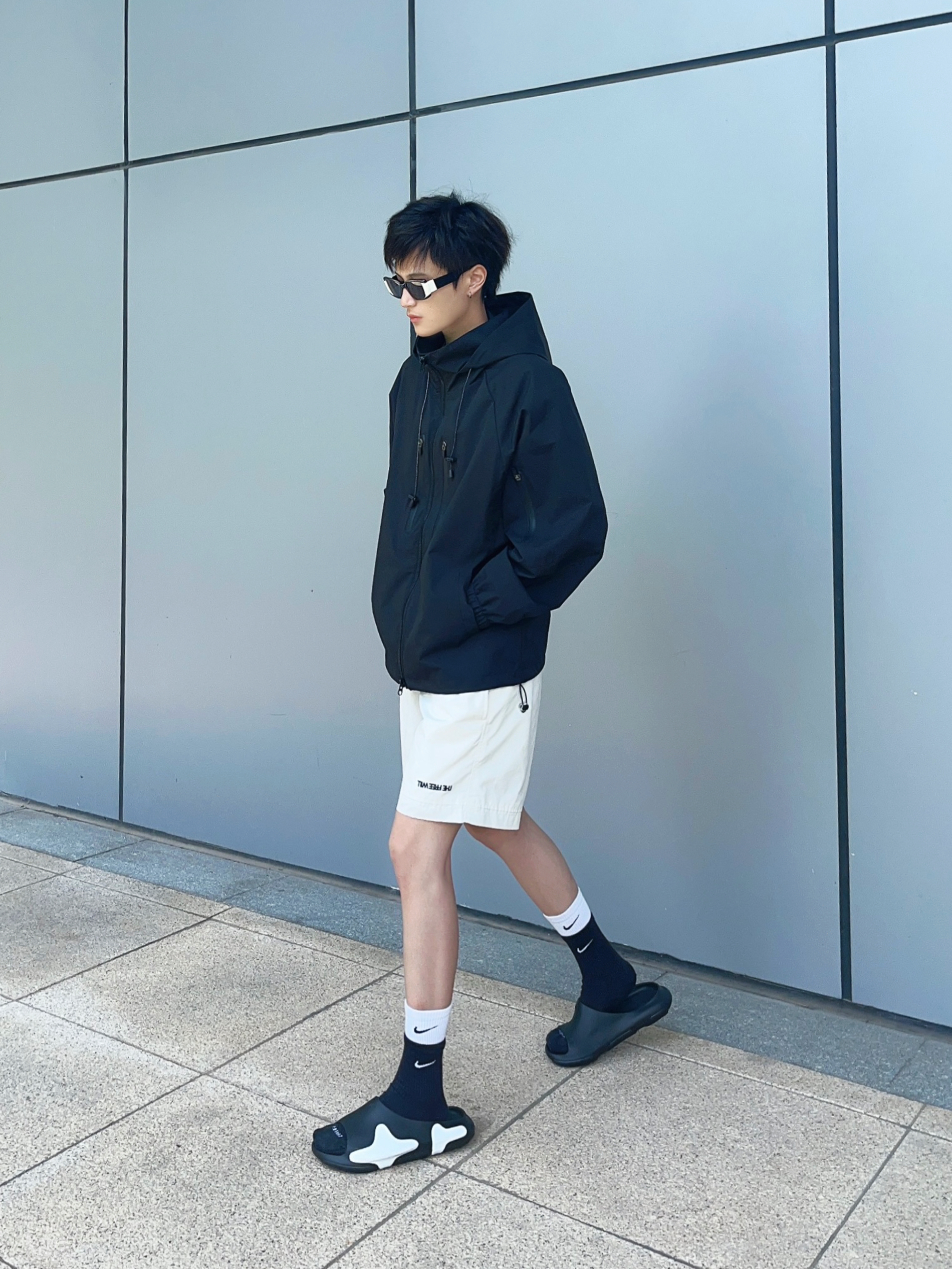 Dio今日份营业时间🕘 这个气温一升高我就知道... 又到了每天可以穿拖鞋出门的日子了!☀️🤣 夏天的热度穿鞋超闷真的难顶呀🔥 But☝🏻如果腰带上不别一大串房子钥匙,光脚出街似乎还是有点过于随意了👀 目前的随性level停留在长袜配拖鞋上,黑白百搭不出错,街头运动感拿捏得刚刚好~ 再结合一下上长下短的搭配公式! 脱下外套就可以尽情运动🏋🏻 嗯,是体育生那味儿了🫢