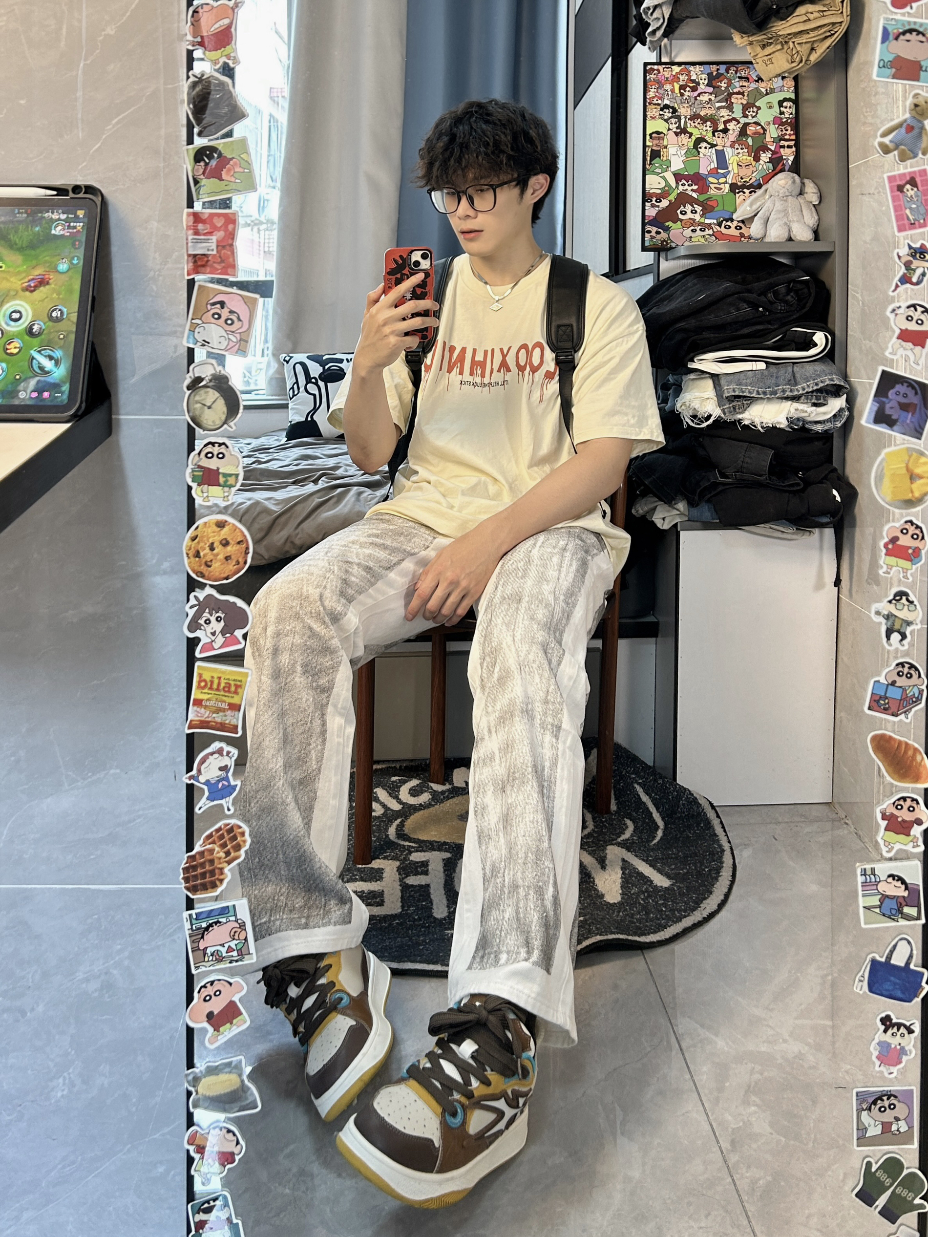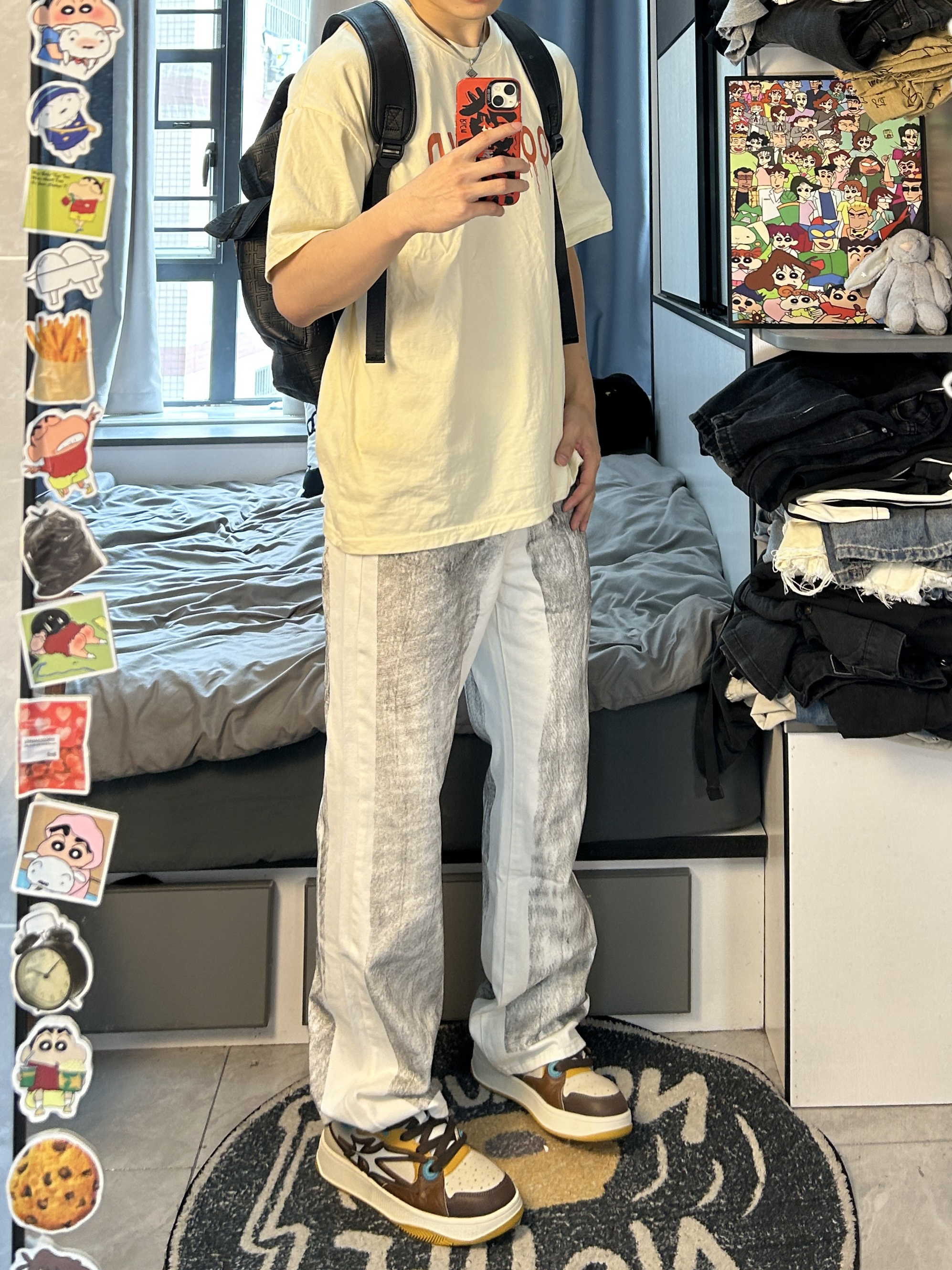 本篇笔记关联了【陈鑫海同款】新因素 美式做旧复古做脏脏感满印花直筒牛仔裤 X9265 白等商品,为用户提供真实的使用体验和购买参考。
