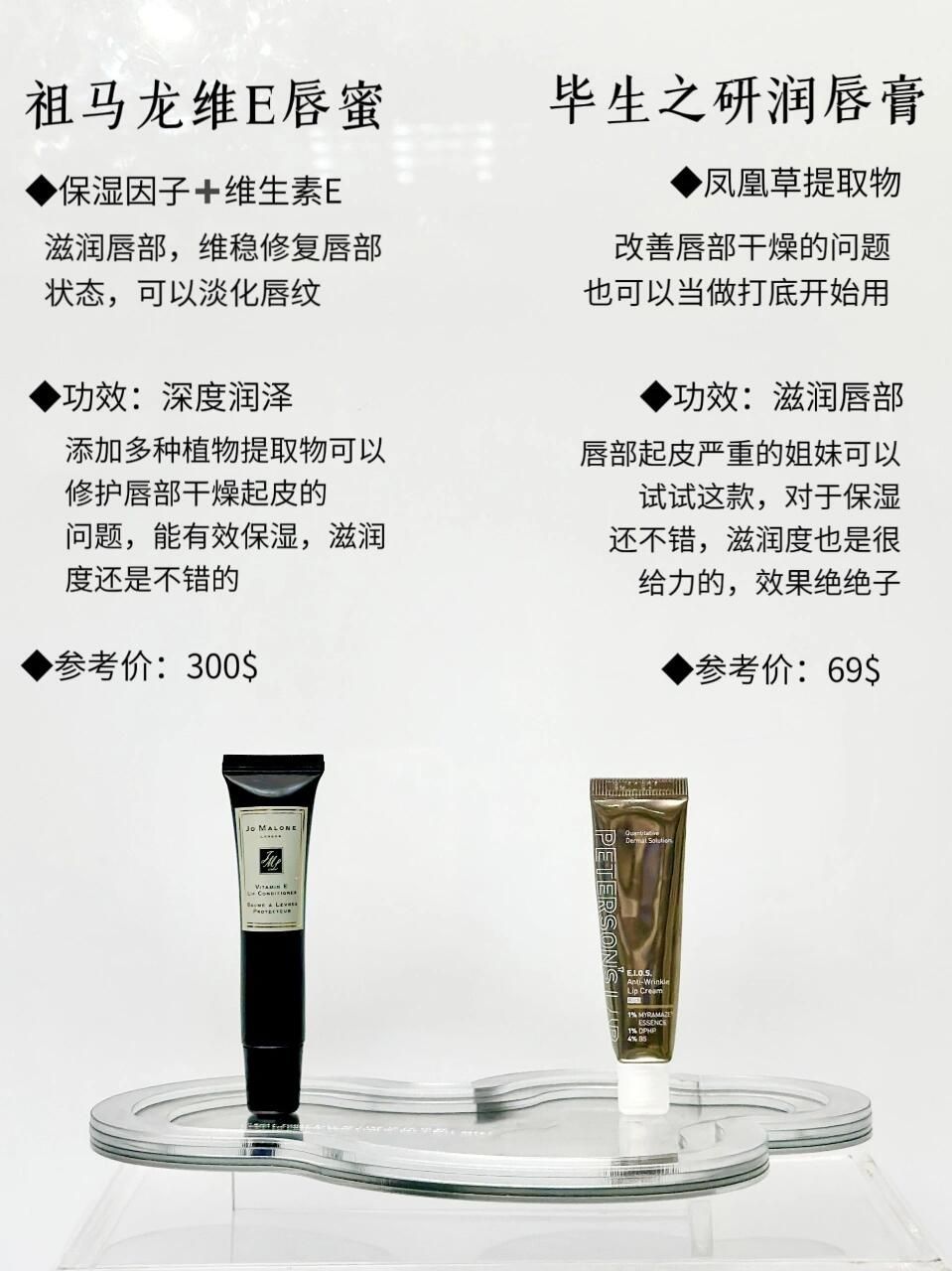 本篇笔记关联了JO MALONE/祖玛珑 维他命E唇蜜润唇膏 滋润保湿淡化唇纹 15ml、橘朵 保湿润唇膏 2.1g 锁水保湿、至本 丰润滋养润唇膏 清透保湿淡唇纹无色哑光打底 滋润等商品,为用户提供真实的使用体验和购买参考。