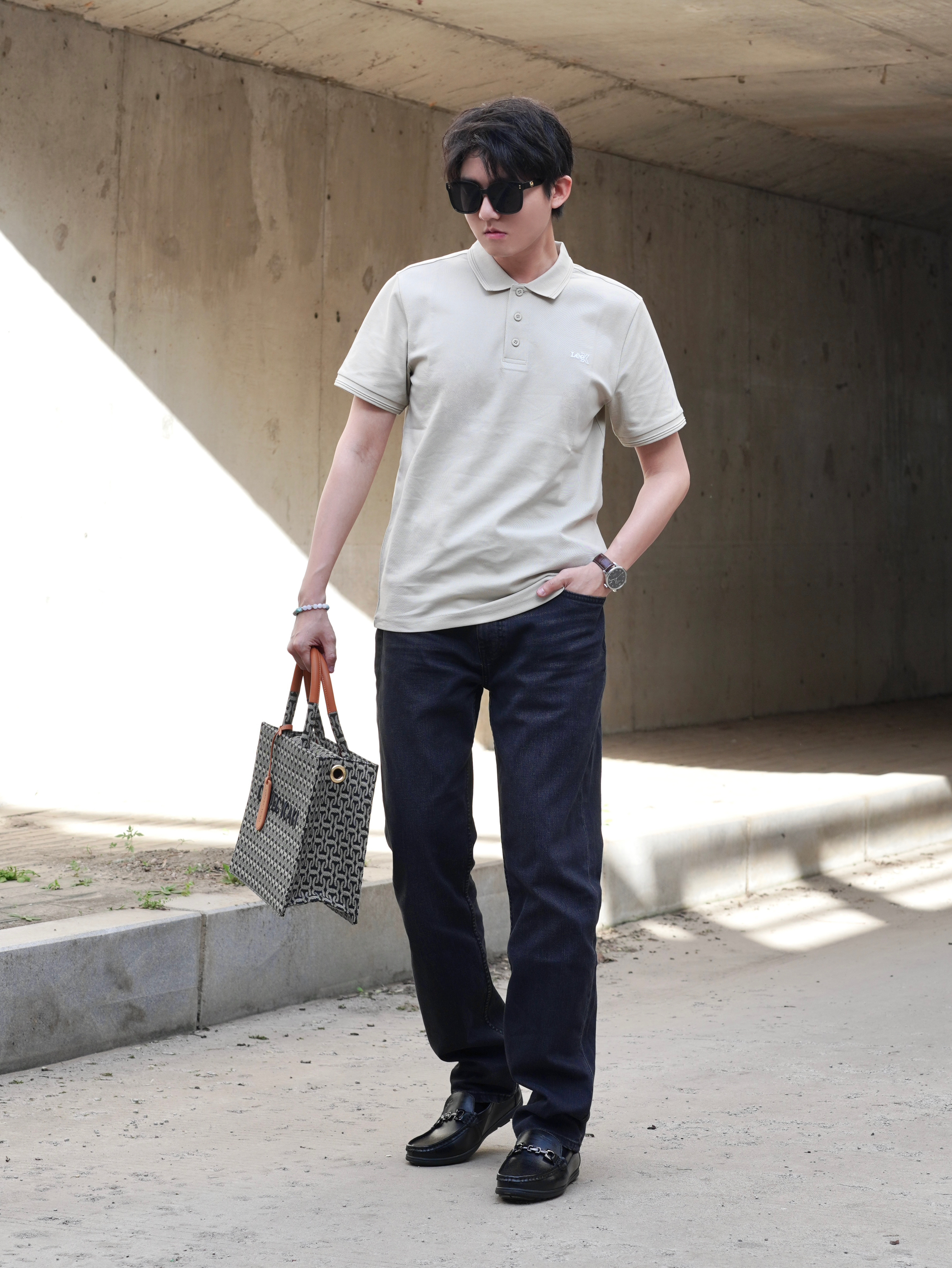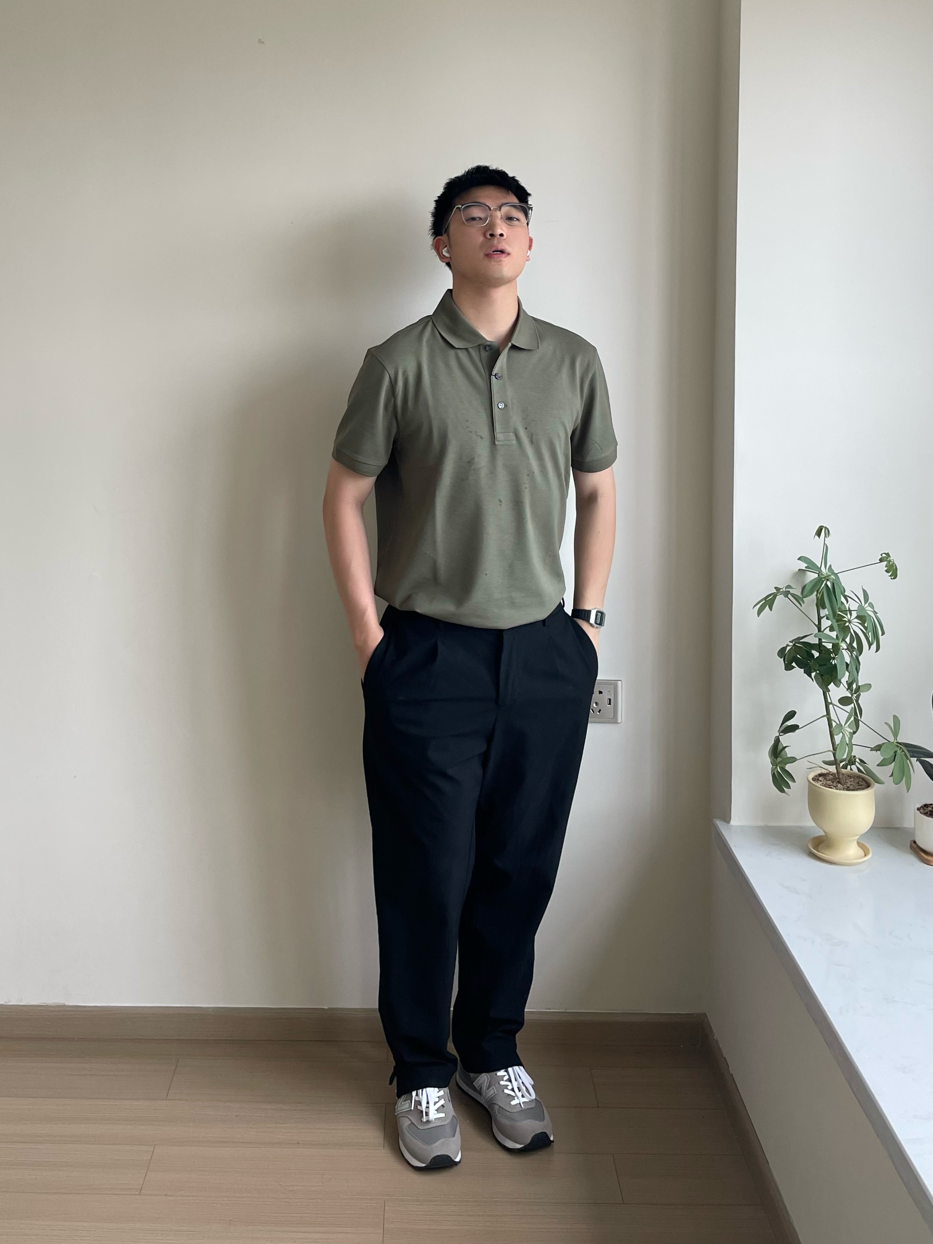 Hi 大家好~!这里是牧云 今天给大家分享一套日常穿搭 希望这一身搭配能对你有所帮助呀 衣服搭配一件米兰色的polo衫 速千面料透气吸汗,夏季穿很适合 搭配起来效果时尚感满满 不但显身材,而且彰显气质 - 下身穿一条黑色牛仔裤 面料柔软舒适,简约不简单 上身效果修身又有垂感,而且显腿长 无论商务还是休闲都很合适 - 再搭配一双经典黑色豆豆鞋 二层牛皮材质非常时尚,摸起来很有质感 鞋底脚感舒适,鞋垫...