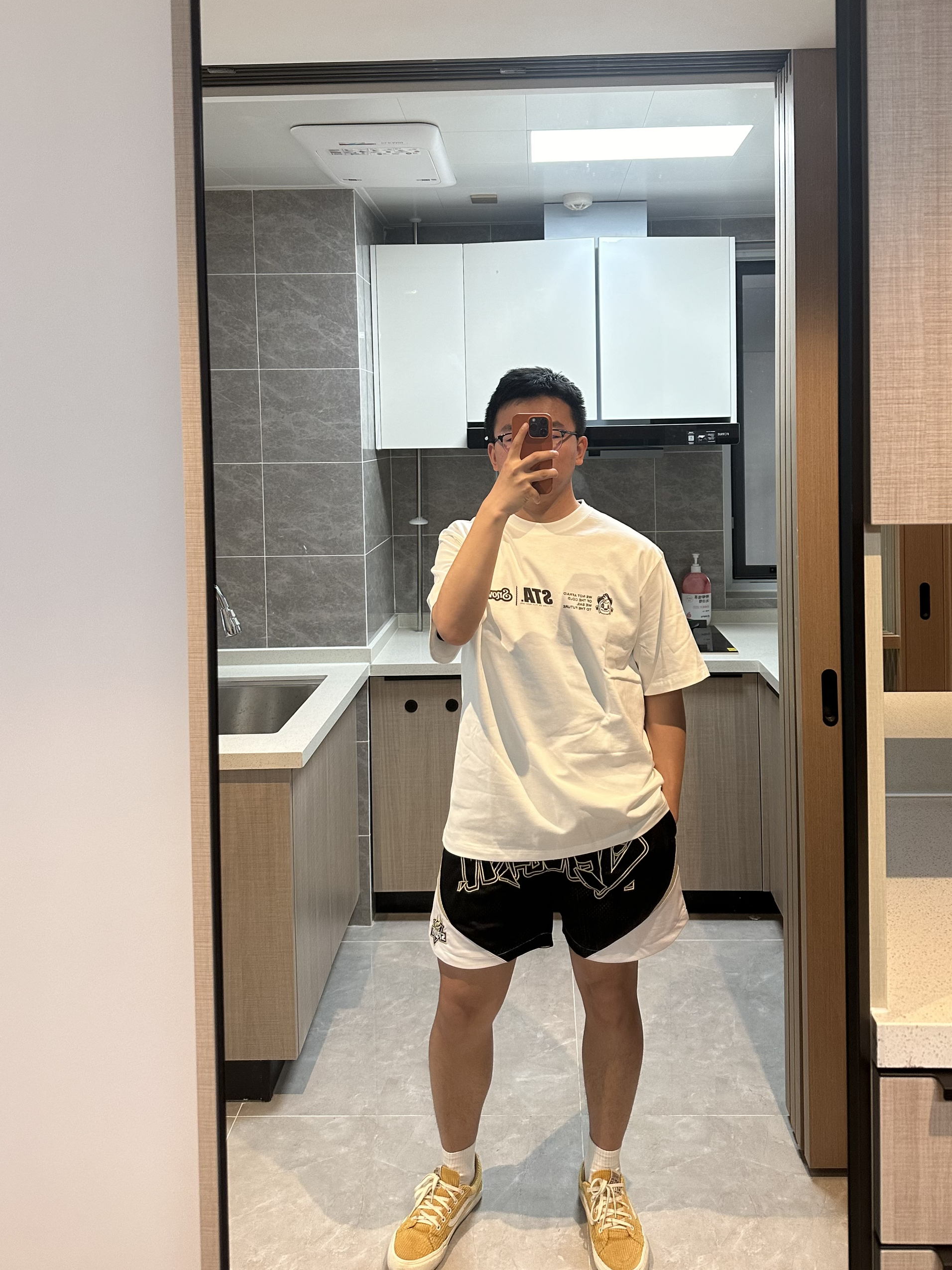 这款青色短裤和黄色板鞋的撞色搭配,真的狠狠爱了,非常适合夏天,也非常喜欢。