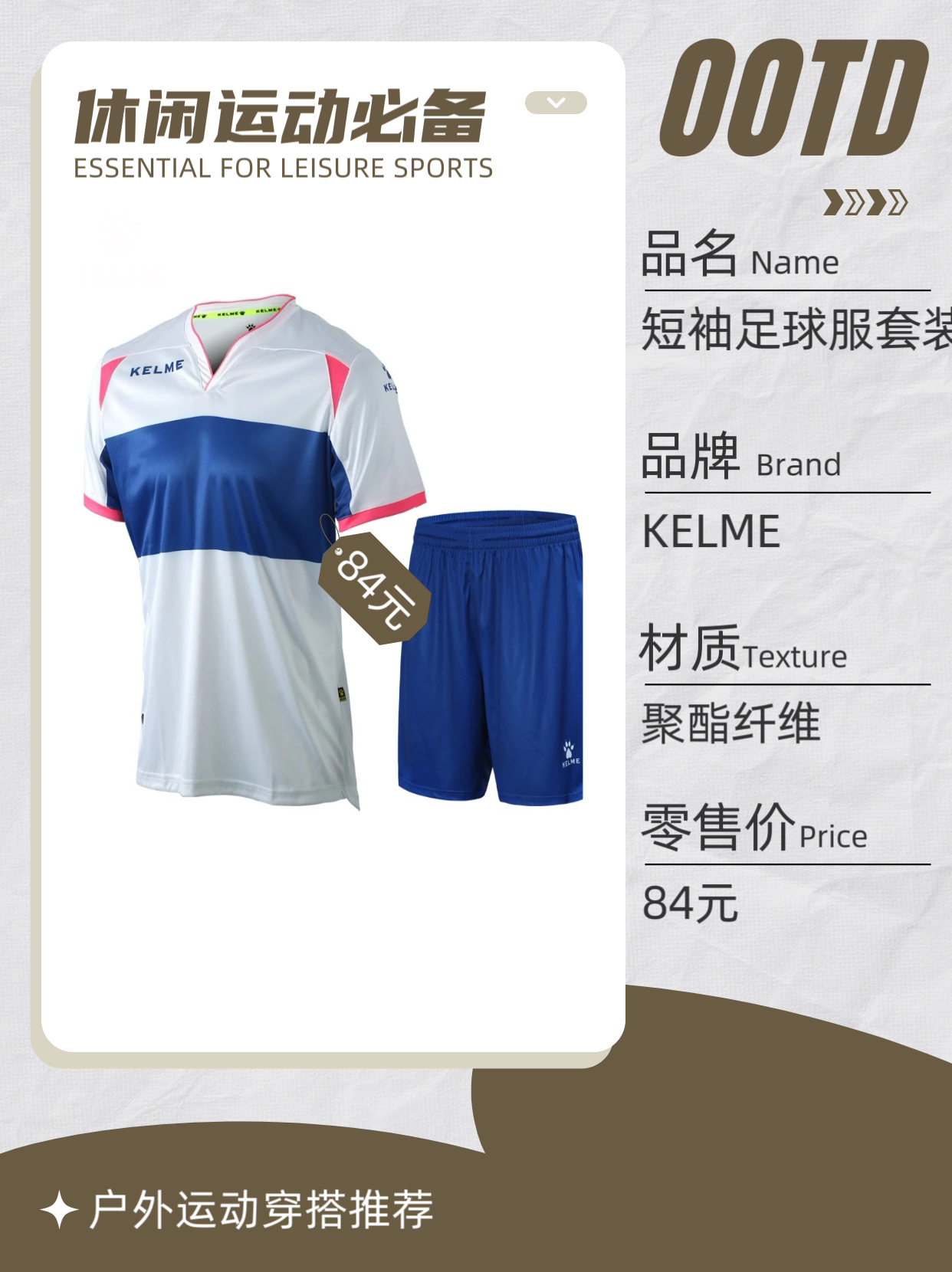 本篇笔记关联了Joma 足球运动 训练短袖短裤套装 3185F044 基础色、KELME 足球运动透气运动训练套装 3881020 白/红标、【埃尔切同款】KELME 足球运动 短袖训练套装 K159Z35 白/彩蓝等商品,为用户提供真实的使用体验和购买参考。