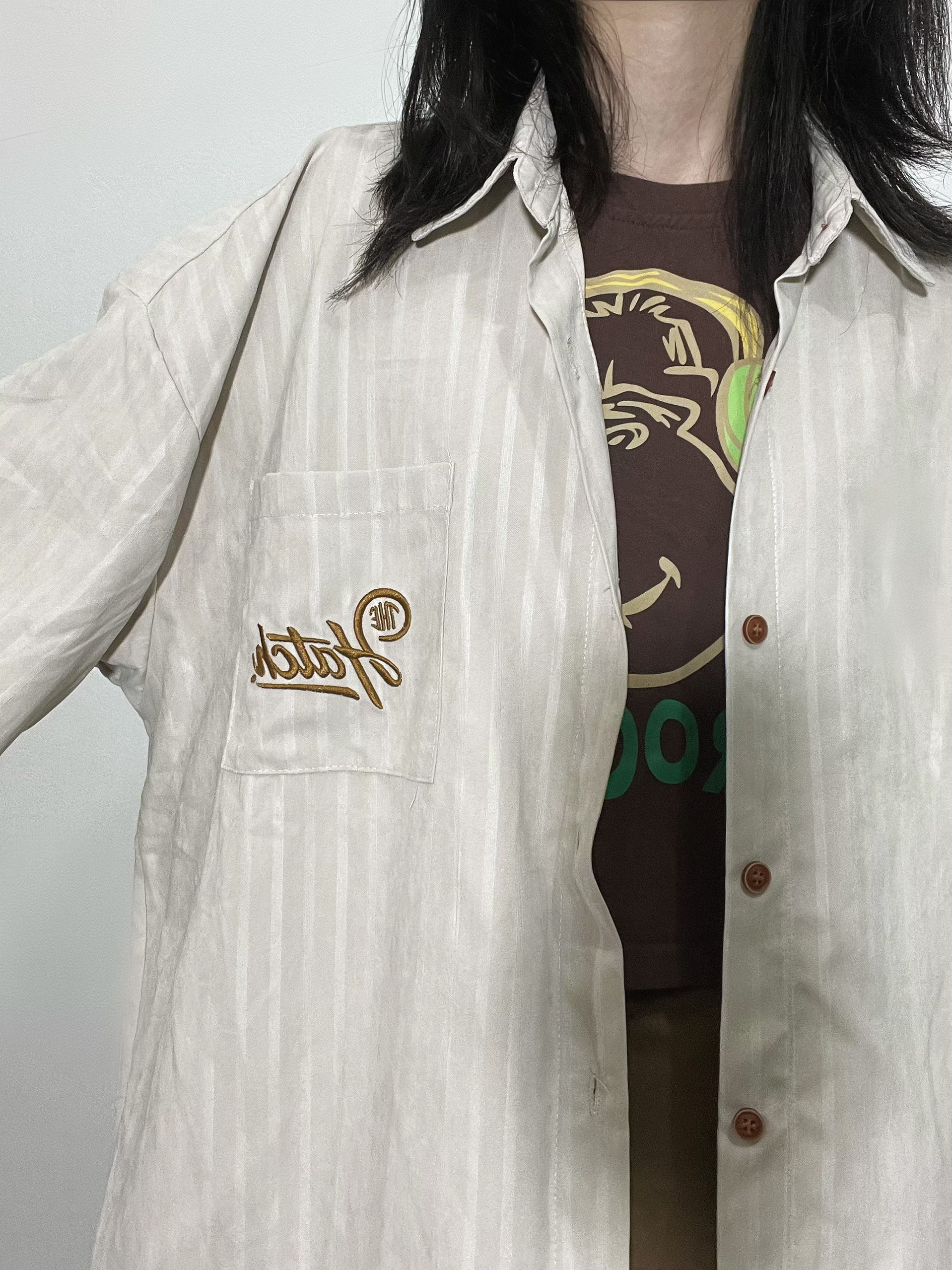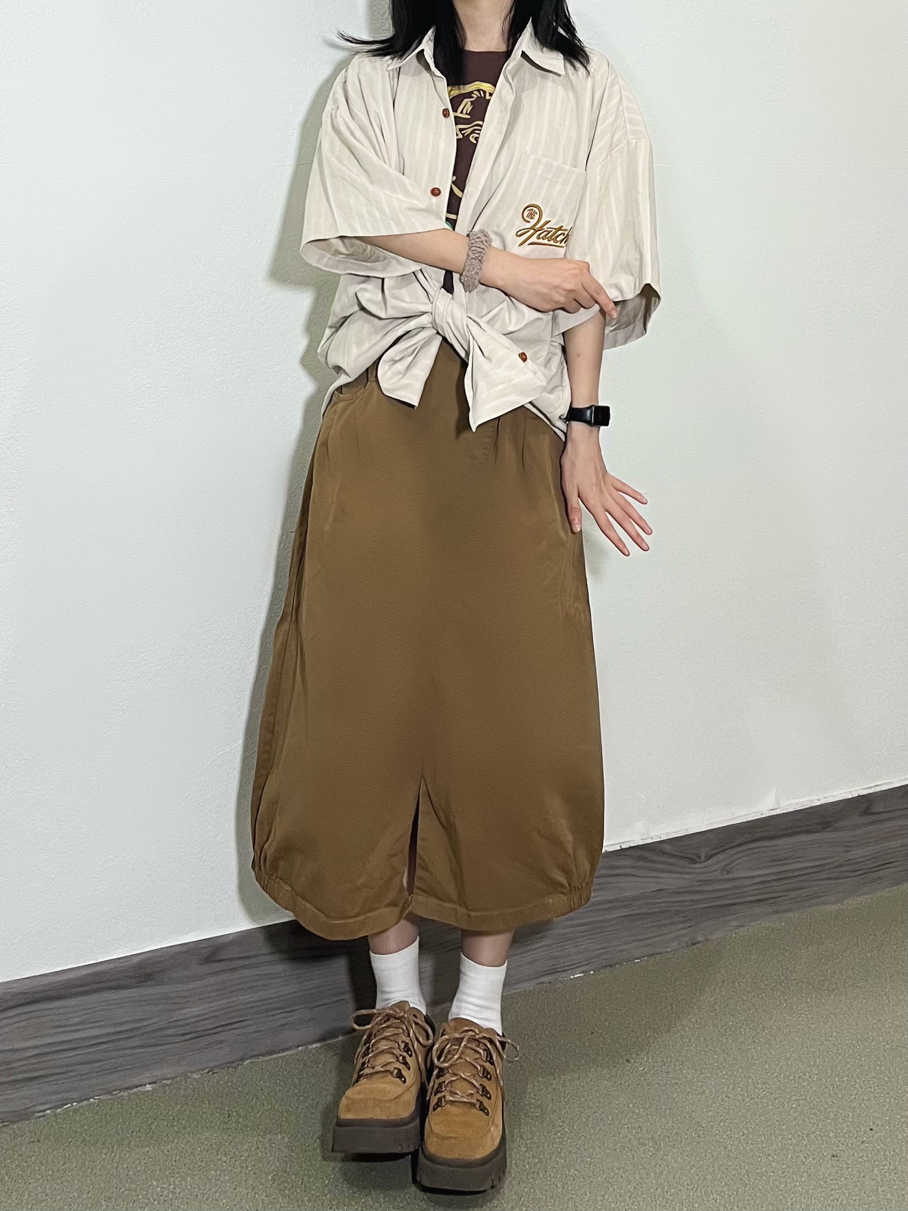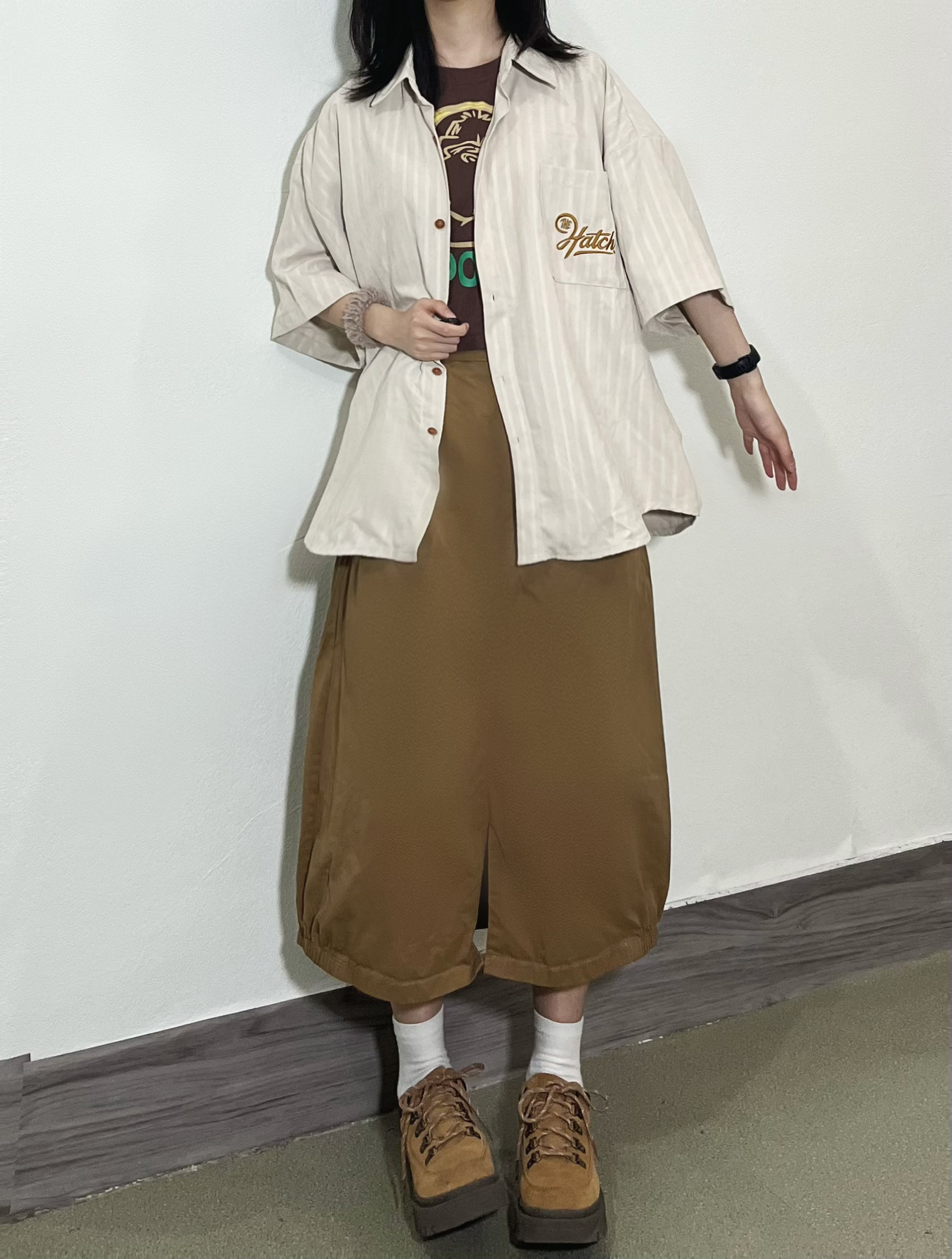 👧156/74 今天主打一个淡黄色系~ 好喜欢这件短袖衬衫,宽松休闲,比较日系的感觉~