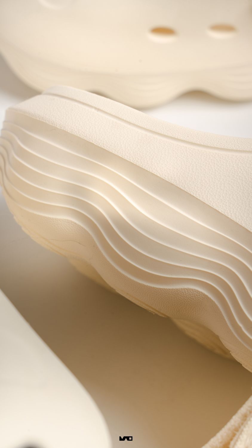 这个鞋我真是当硬通货来安利的, 一代的白噪音拖鞋我送了不少人, 有体育品牌的同行也有身边朋友, 能让友商肯定的,那一定是有点东西的。 拖鞋大家好像觉得没那么多讲究的点, 但实际上你穿的款式多了就会发现, 和运动鞋一样,楦头,软硬调校,支撑性, 都是从外观上看不到的。 这一代的白噪音做了经典的穆勒, 半包的结构虽然在透气性上有所牺牲, 但更利于穿搭,也更适合出街, 中底从可抽查的结构,做成了一体成型...