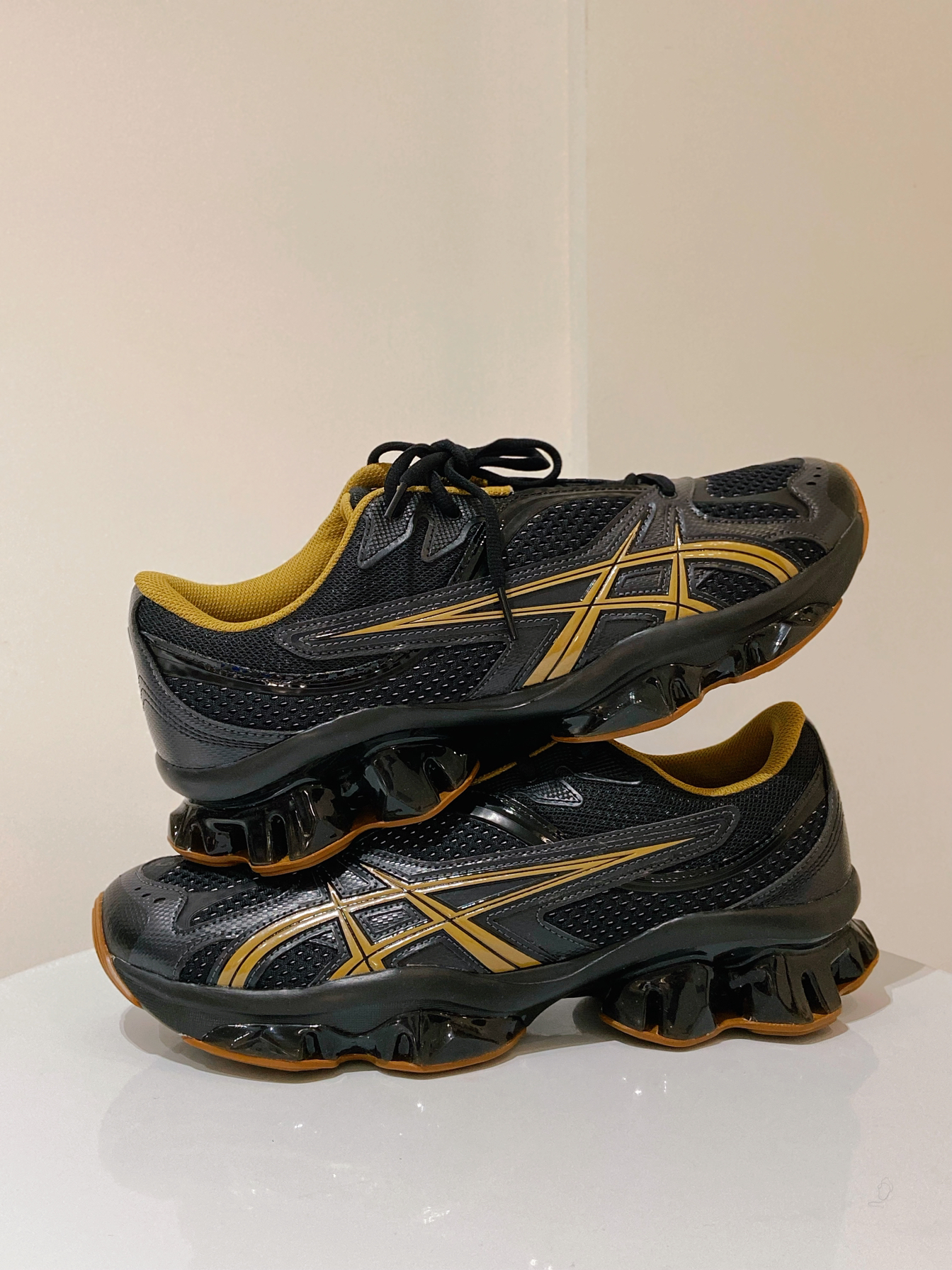 ASICS 和 Kiko Kostadinov 新联名 Kiko Kostadinov x ASICS GEL-QUANTUM ZIENTZIA 黑金也是五月白蓝橙后的第二个配色 鞋子整体以大面积的黑色为主 搭配金色内衬、侧边线条等细节 黑金组合给人的感觉就是高级 酷且有质感 ~ 网眼鞋面和 GEL 缓震系统 舒适和脚感都有保障 ! 尺码偏小,建议拿大半码或者一码 !