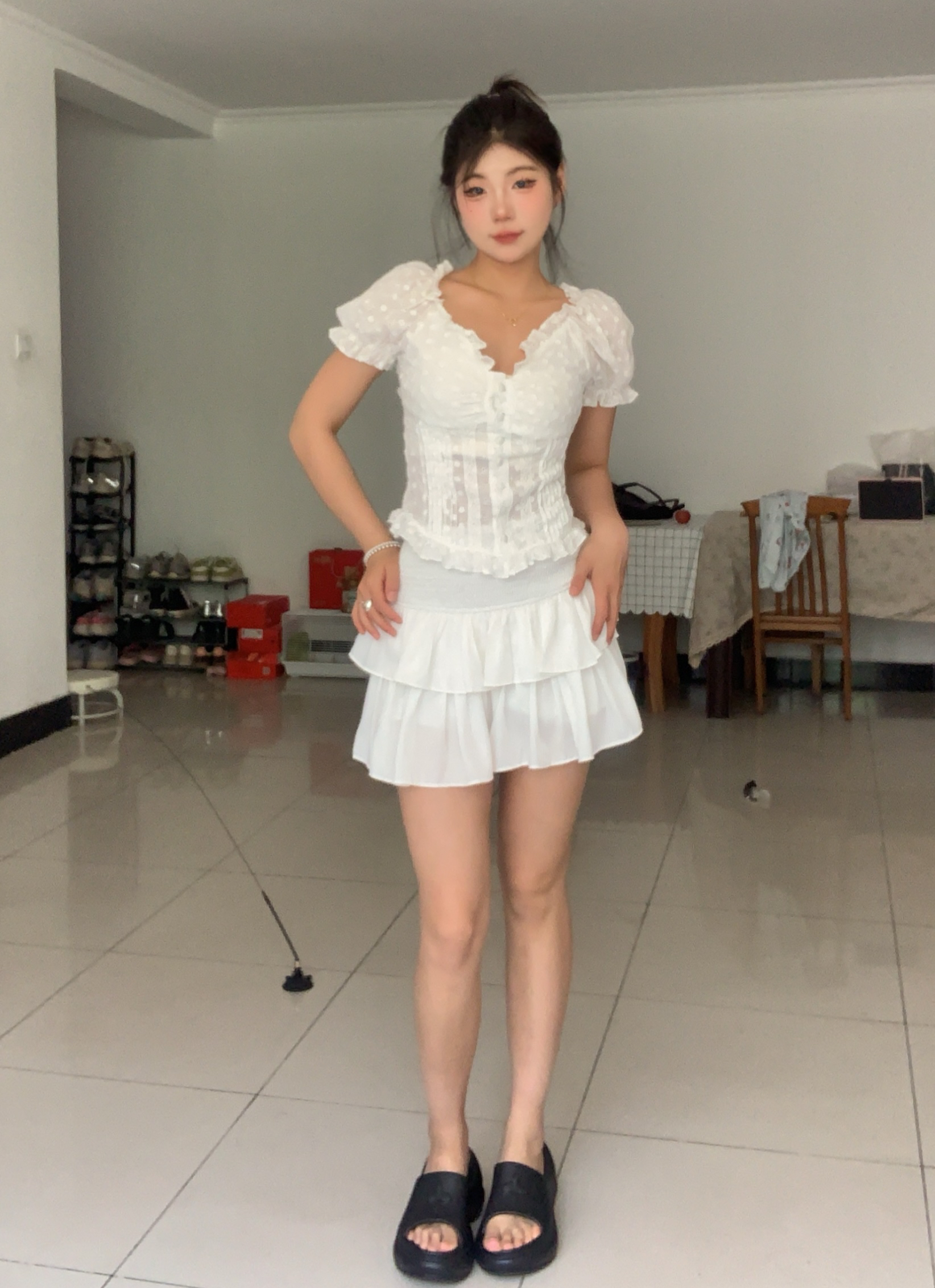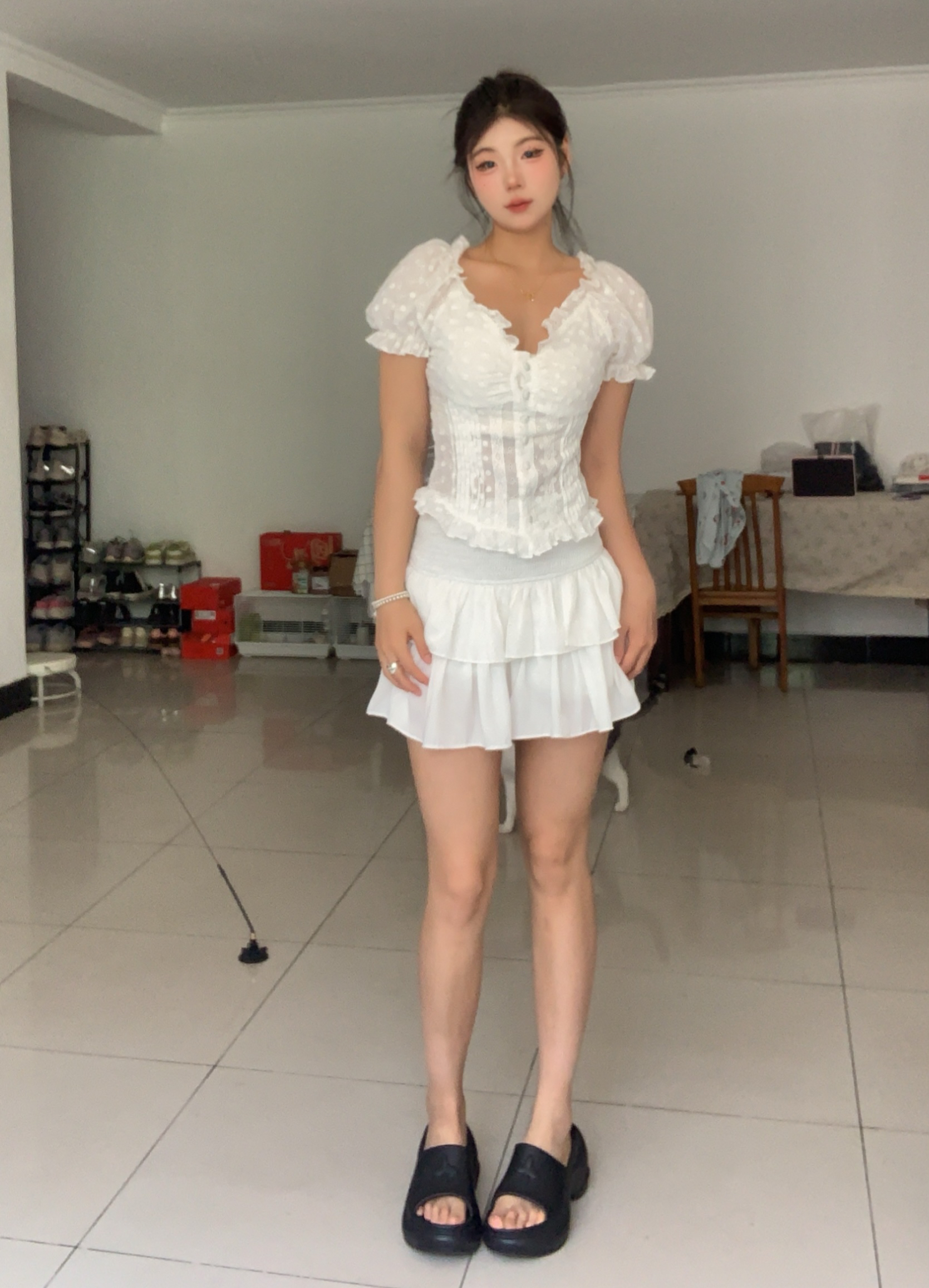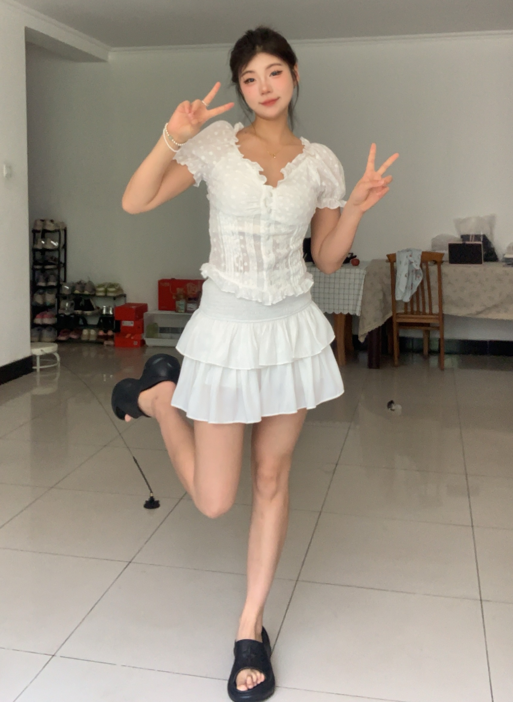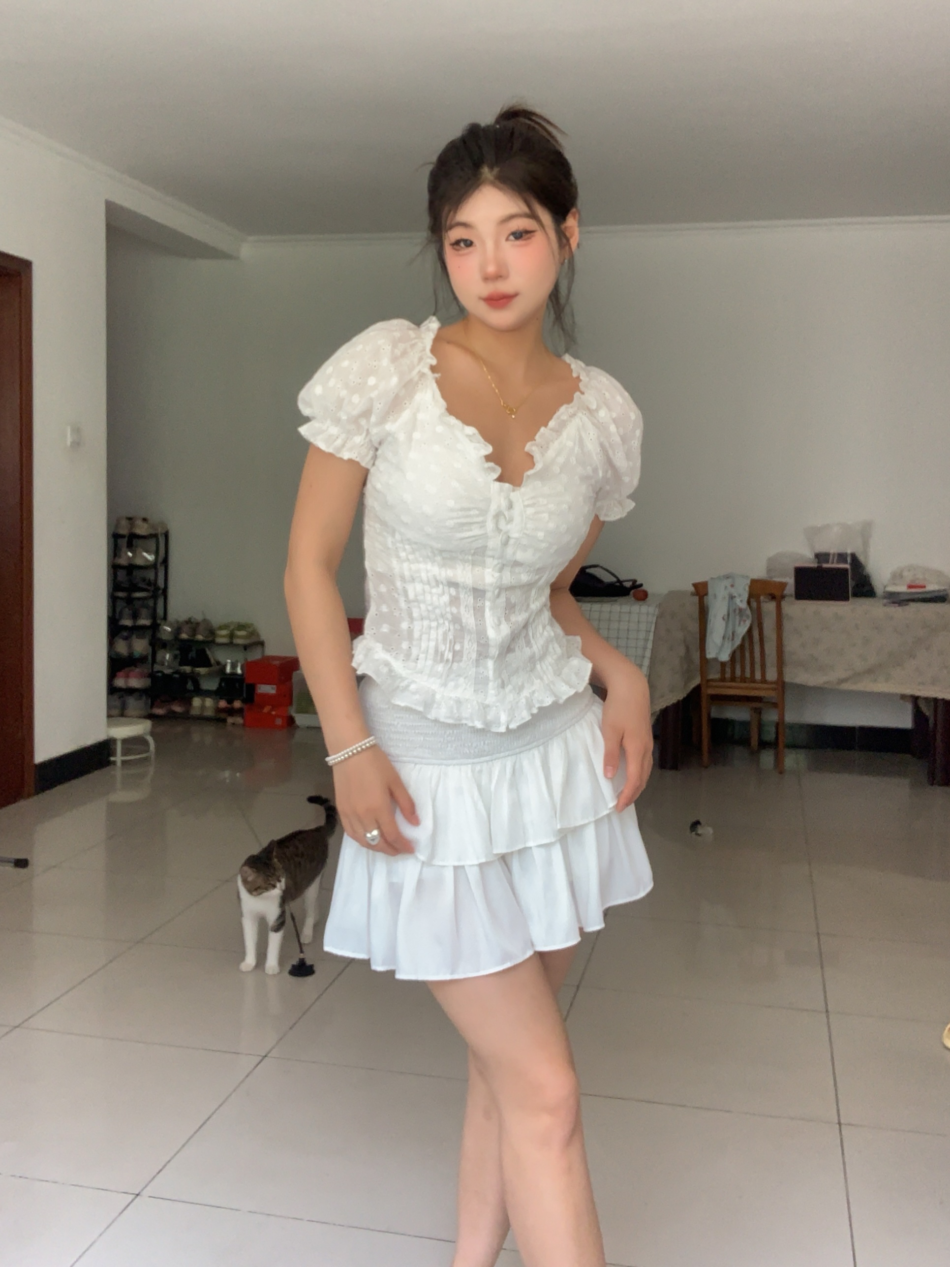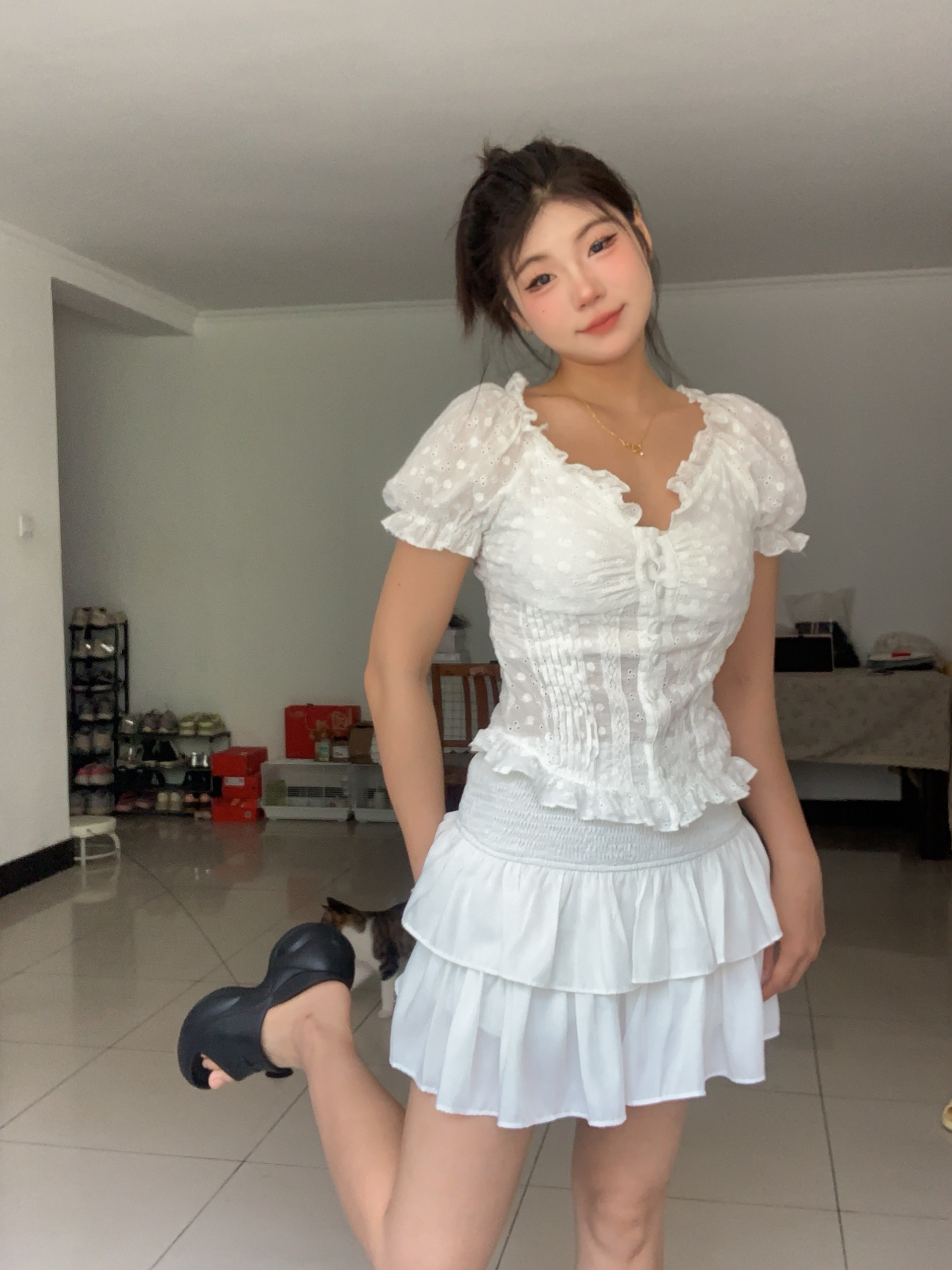 👋:亲爱的大家理性种草哟~ 简单又平价的穿搭来喽~白色碎花小上衣➕上漂亮裙裙真嘟太好穿啦~