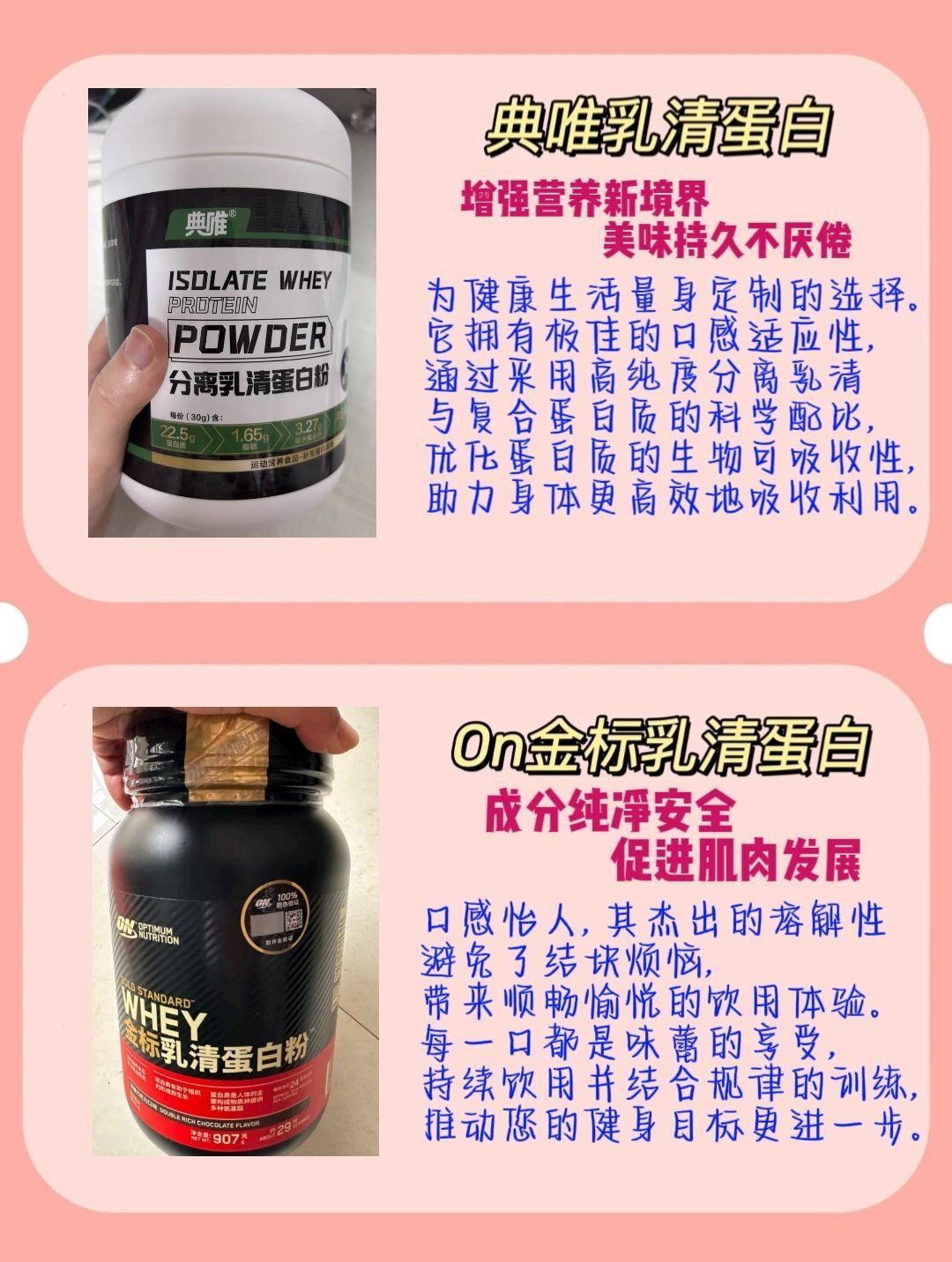 本篇笔记关联了ON/奥普帝蒙 进口版 乳清蛋白粉 罐装 健身增肌 香草冰激凌味、Muscletech/肌肉科技 六星益生菌复合乳清增肌粉 罐装 瘦人增重健身运动塑形健肌 白桃、Nutrend/诺特兰德 PRIMEWHEY 乳清蛋白粉 罐装 三重增肌增重好喝不腻 巧克力味等商品,为用户提供真实的使用体验和购买参考。