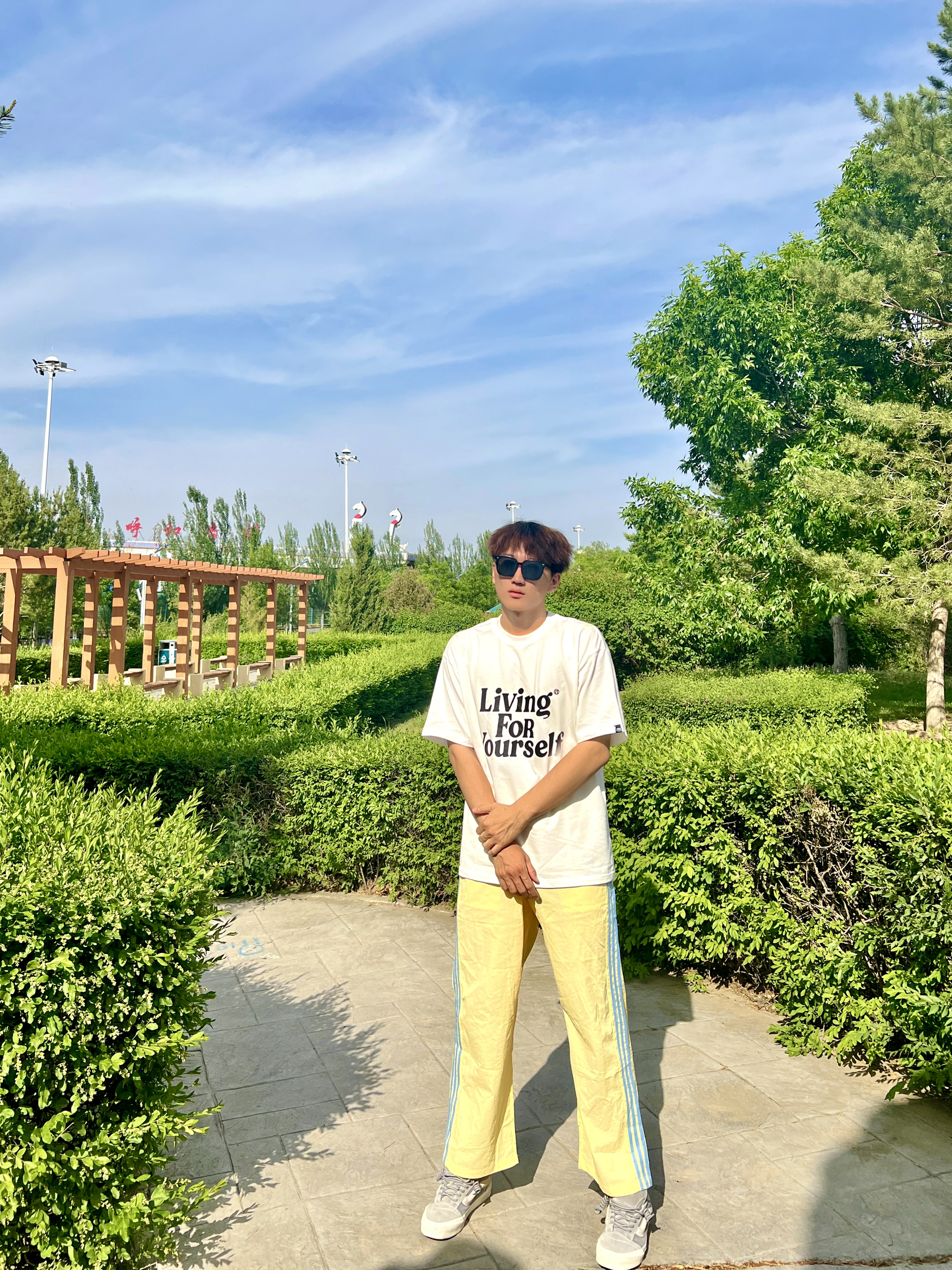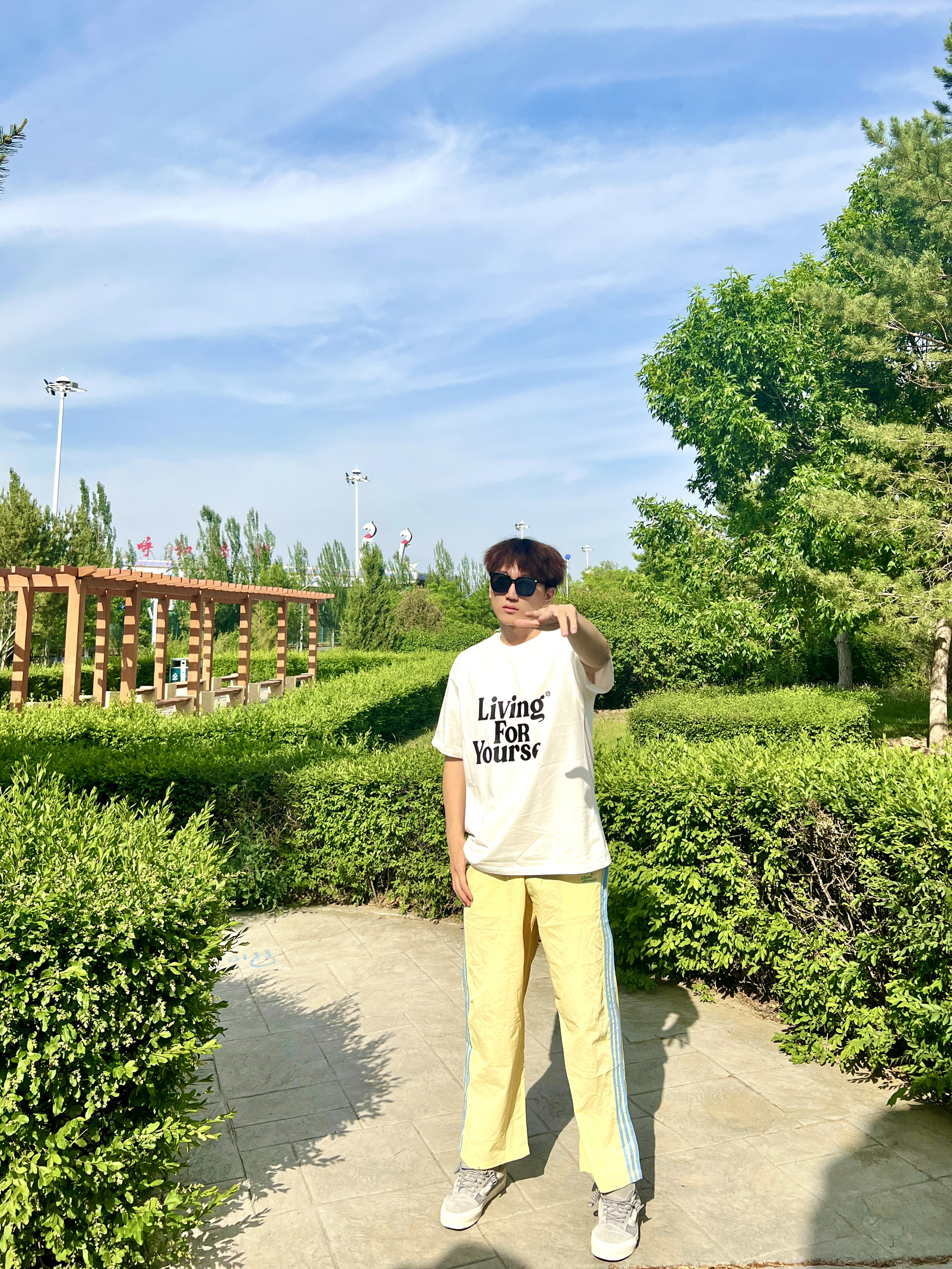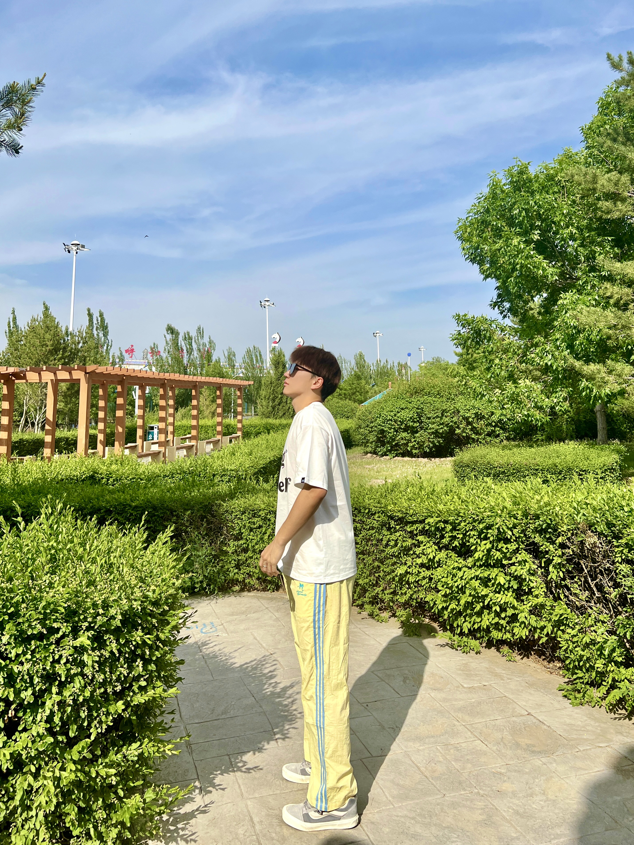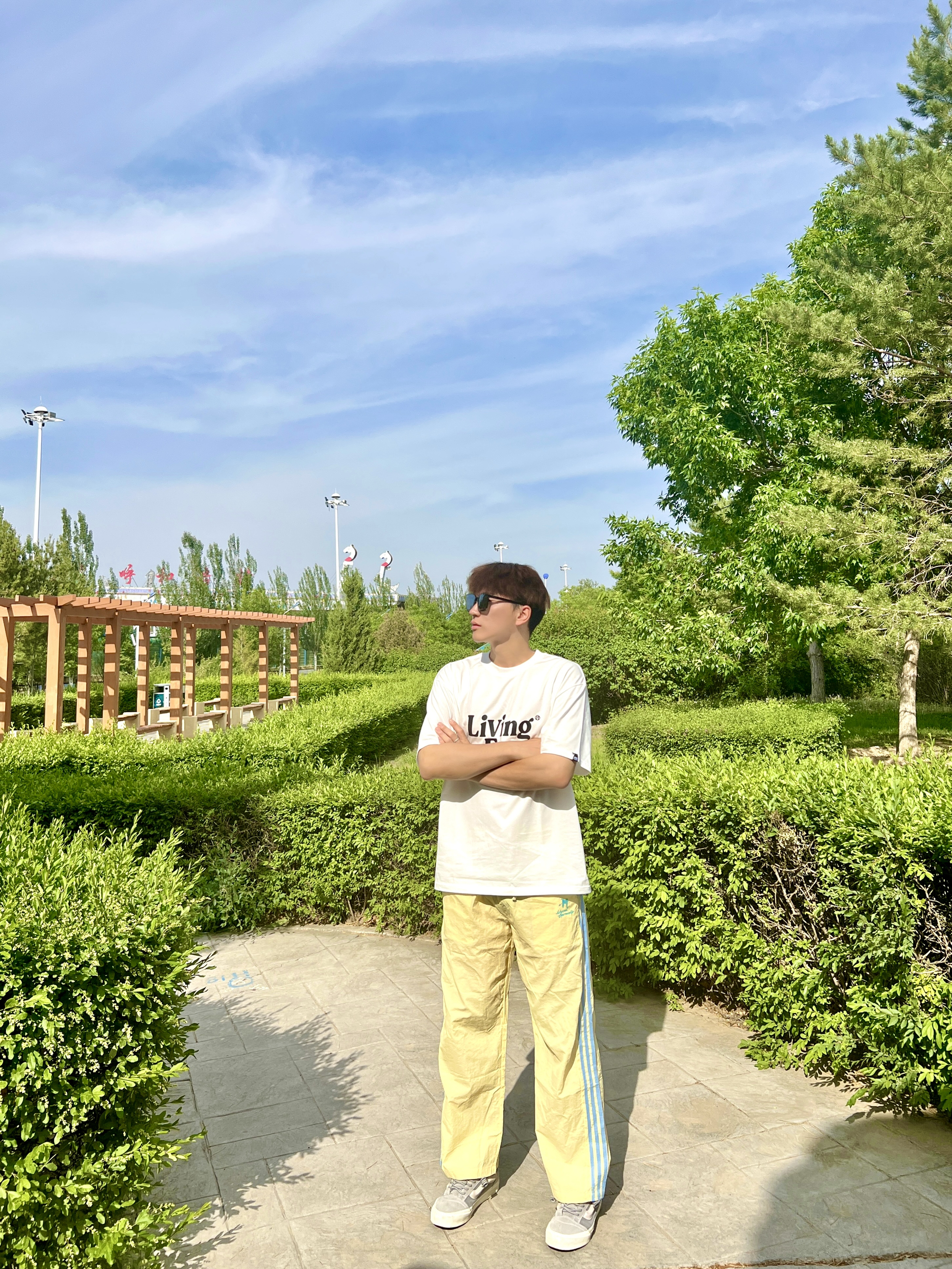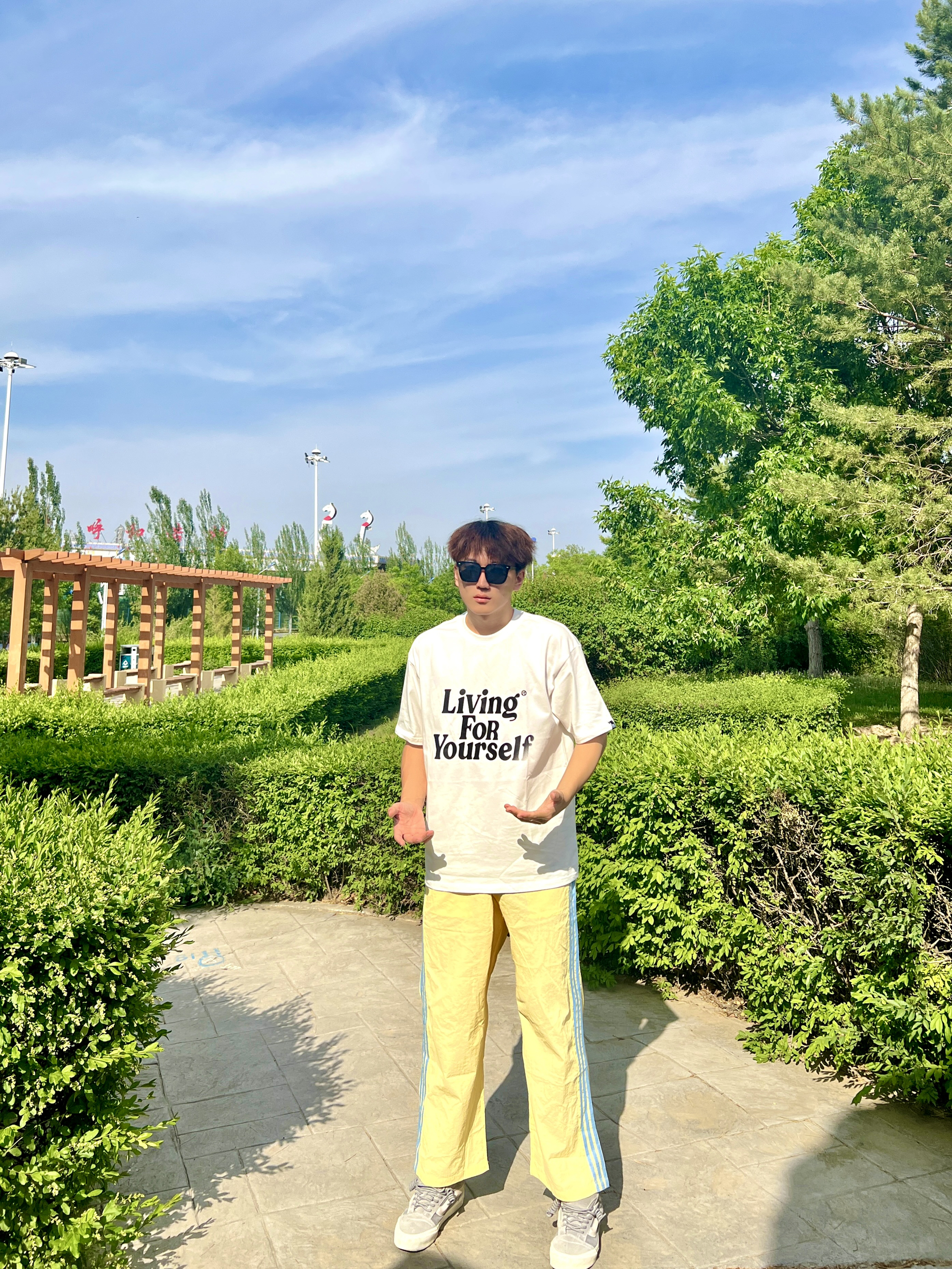今天一身休闲穿搭 上身丛林老虎家的短袖 搭配了一条黄色休闲裤 整体色调上是比较个性的 宽松的版型 看起来更加的休闲 上脚的是VANS新出的面包鞋 脚感还是不错的 颜值也过硬