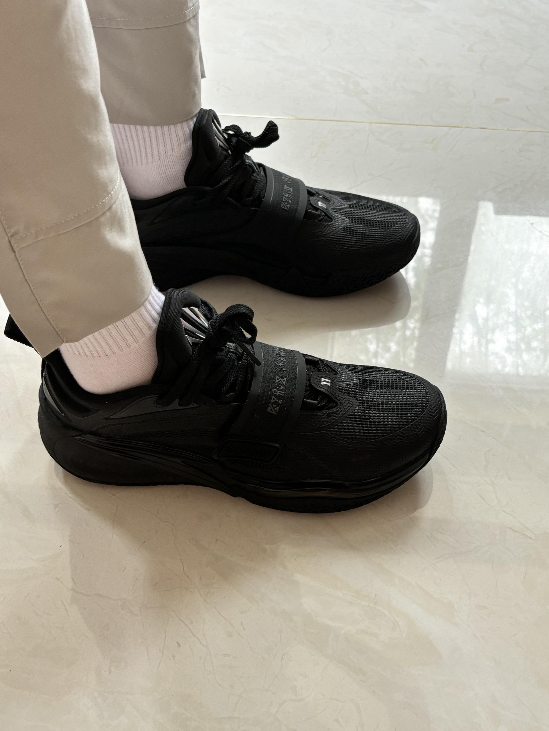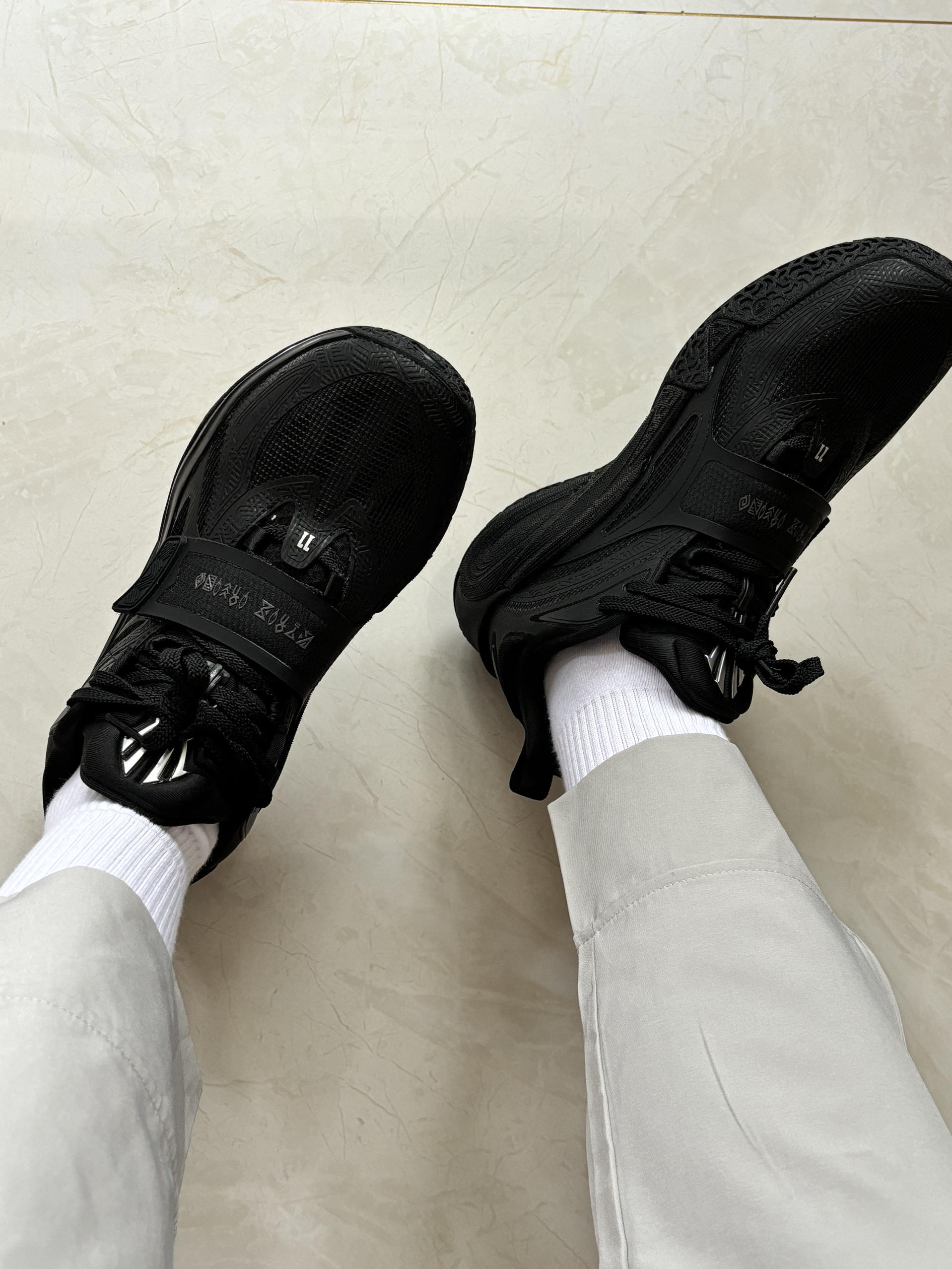 #来双酷黑实战鞋 #新鞋档案库 兄弟们酷黑色实战鞋KA1上脚 欧文最近的上脚欧文一代 正式发售我觉得是这一双黑武士 很实战很男生的一双球鞋 简单,利落正如欧文一样纯碎 对篮球专注,对自己内心的打磨愈发重要 尺码正码兄弟们你们心动了吗?