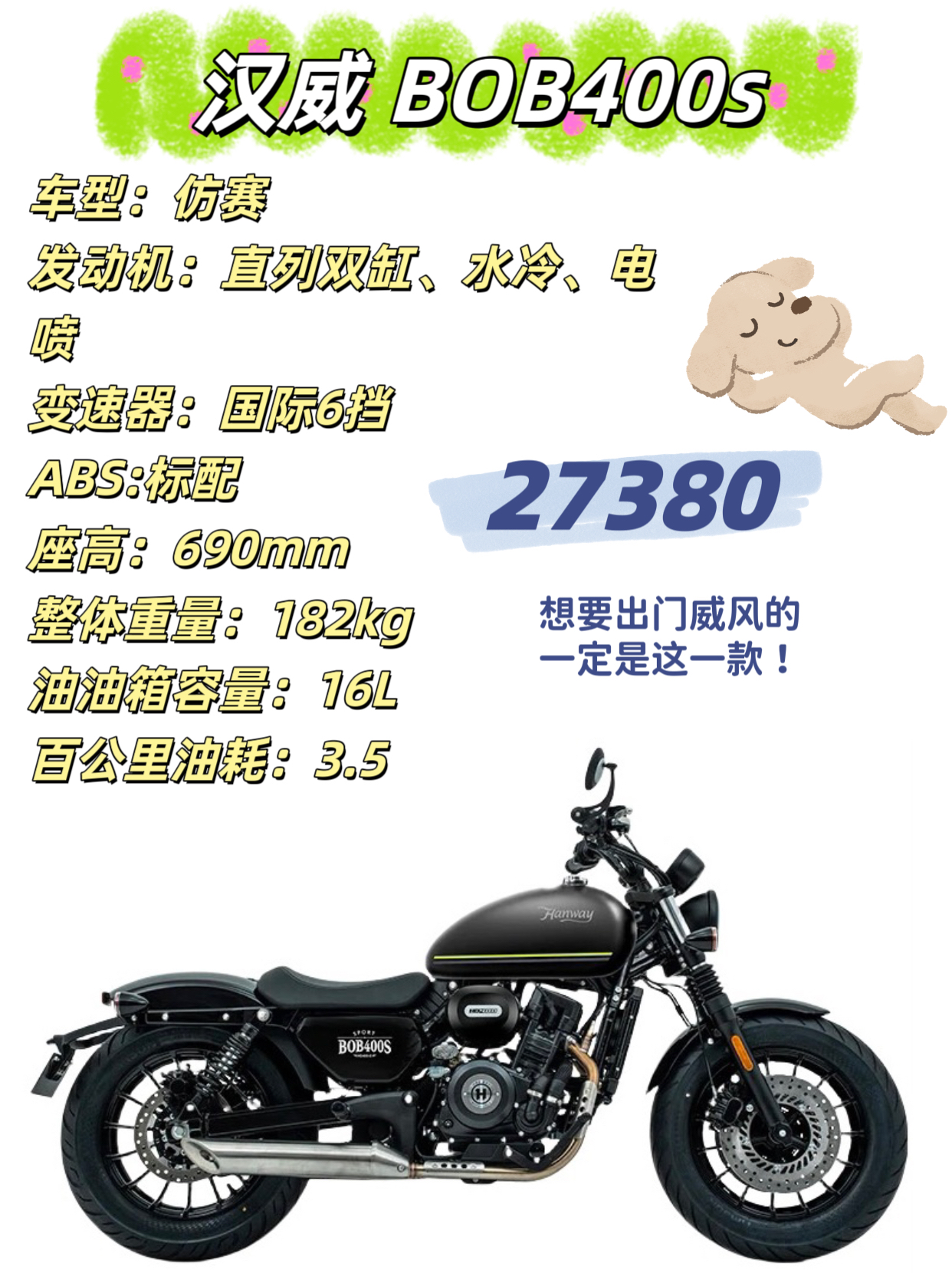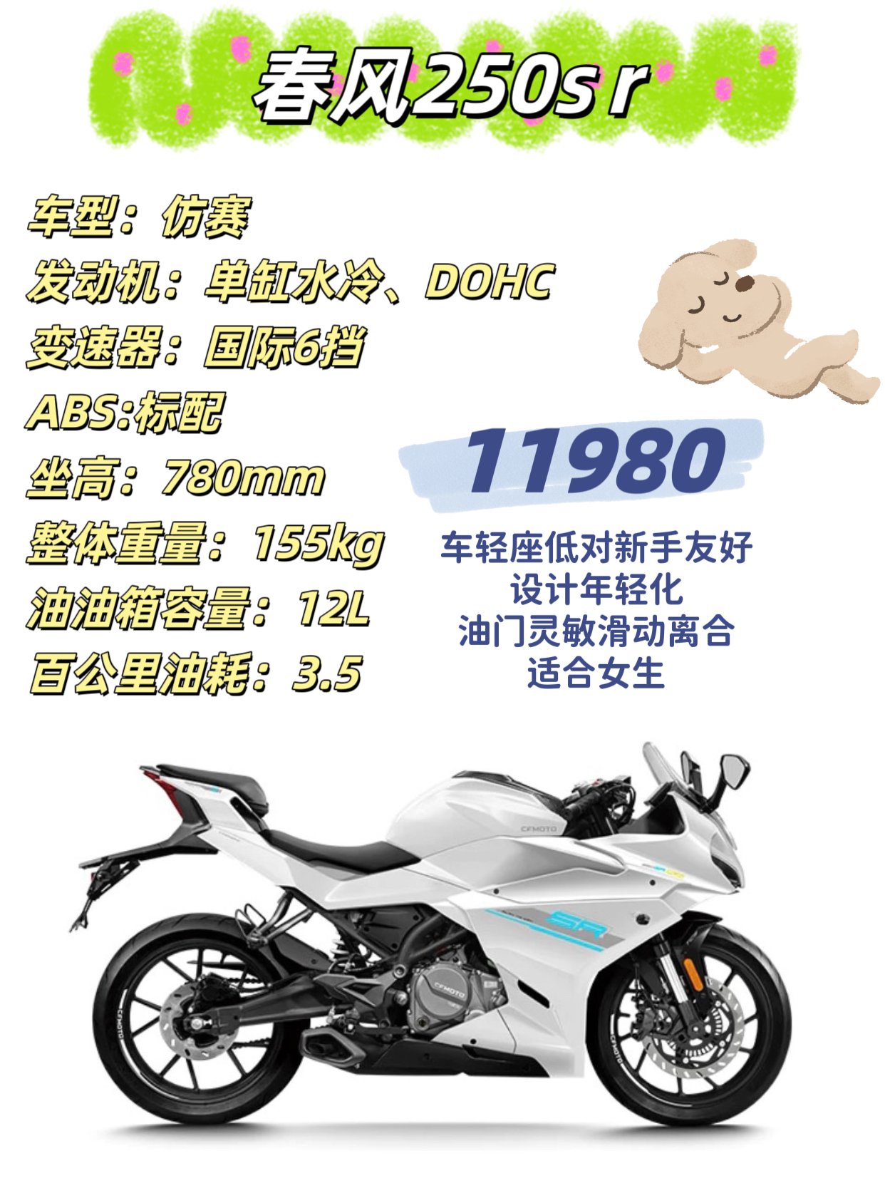 本篇笔记关联了【门店自提】CFMOTO/春风 250SR 智能 单摇臂 摩托车 FUN/星光白、【定金】QJMOTOR/钱江摩托 赛150 单杠 ABS制动 单缸水冷 摩托车 曜夜黑、Hanway 汉威 BOB400S 【定金】 醇正bobber 摩托车 哑光黑等商品,为用户提供真实的使用体验和购买参考。