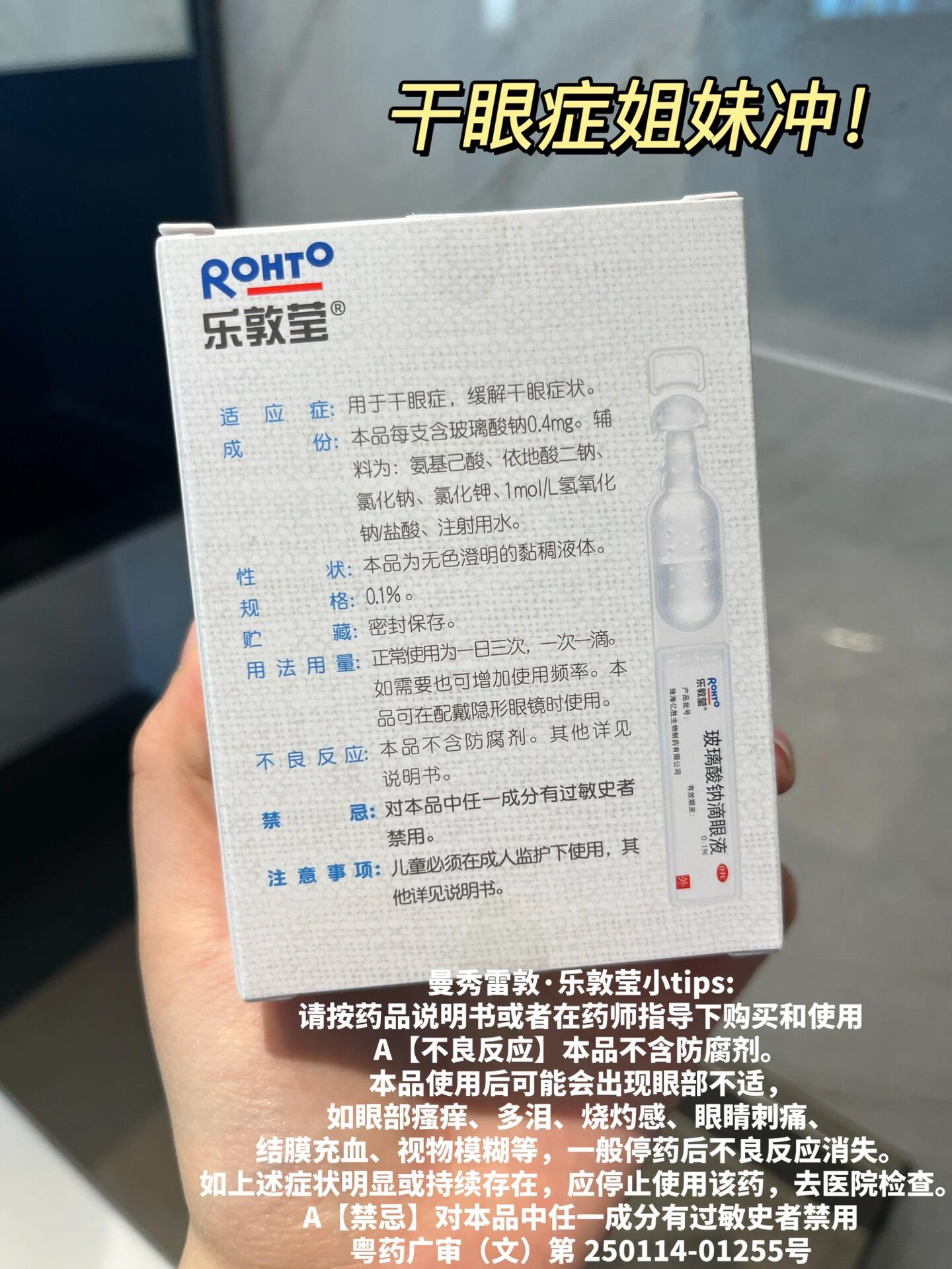 本打工人 高度近视700多度 工作需要一直盯着电脑 眼睛真的吃不消! 这不!“干眼症”循着味儿就来了 眼睛总容易发干发涩 坐车开个窗还容易迎风流泪,泛酸睁不开…😭 本身眼睛就敏感 刺激的滴眼液更是不敢用 所以用更温和的人工泪液就比较靠谱啦! - 🌟乐敦莹 玻璃酸钠滴眼液 真的是救星般的存在! 乐敦是百年品牌☑️ 是专门研究眼部护理的牌子 用着也更放心! 这款人工泪液的主要成分就是高分子玻璃酸钠✨ ...