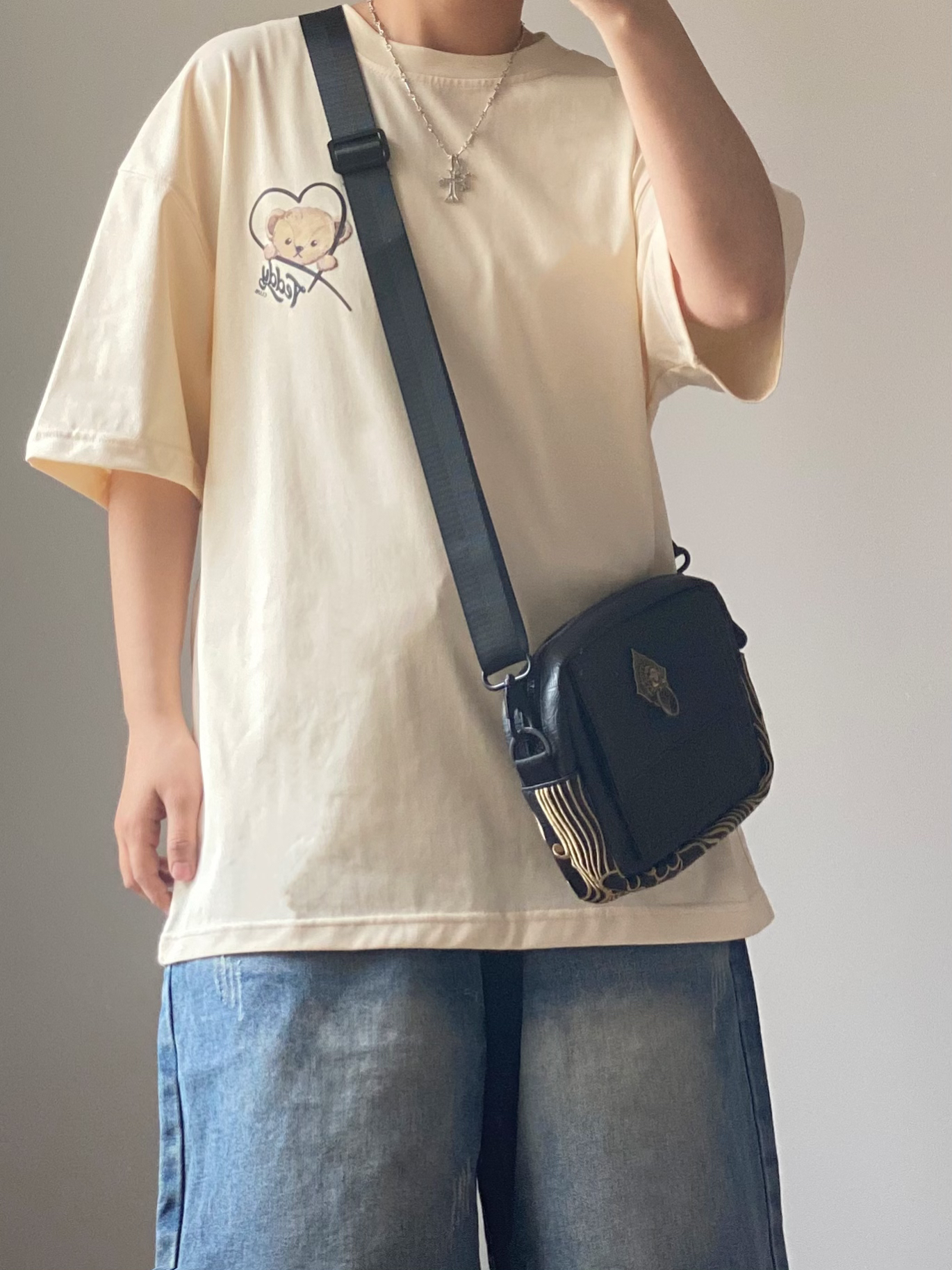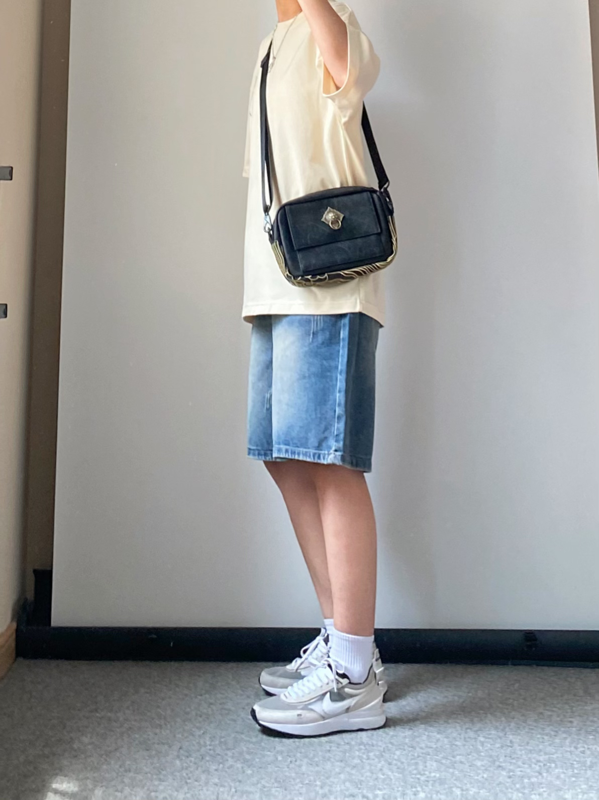 现在流行淡人每天穿什么⁉️ 那我就是淡人本人啦 偏爱简单干净的纯色系 一件杏色T恤➕牛仔蓝短裤 夏天出门的本命包👜就是这个咯 皮质的很有质感上面还有暗纹 满满的中国风 平时出门装点地铁卡充电宝很方便~