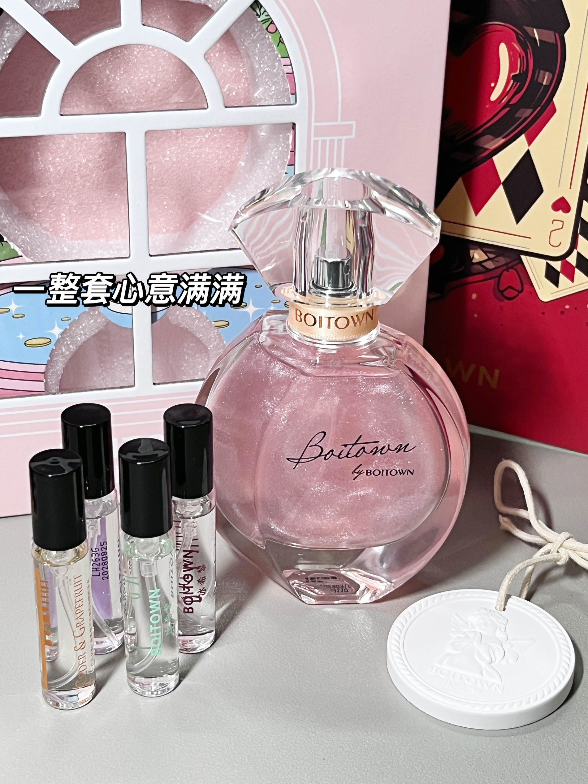 冰希黎你真的好懂小女孩的心思哦这个幻彩鎏金许愿礼盒真的深得我心 粉嘟嘟的好少女心 打开里面像拆盲盒一样每拆一个背面都会有一句话很细节 里面有一瓶正装香水还有四瓶小样和一个扩香石 扩香石喷上香可以放在车里或者衣柜里衣服都是香香的 送女孩这个礼物一定没有人会拒绝!
