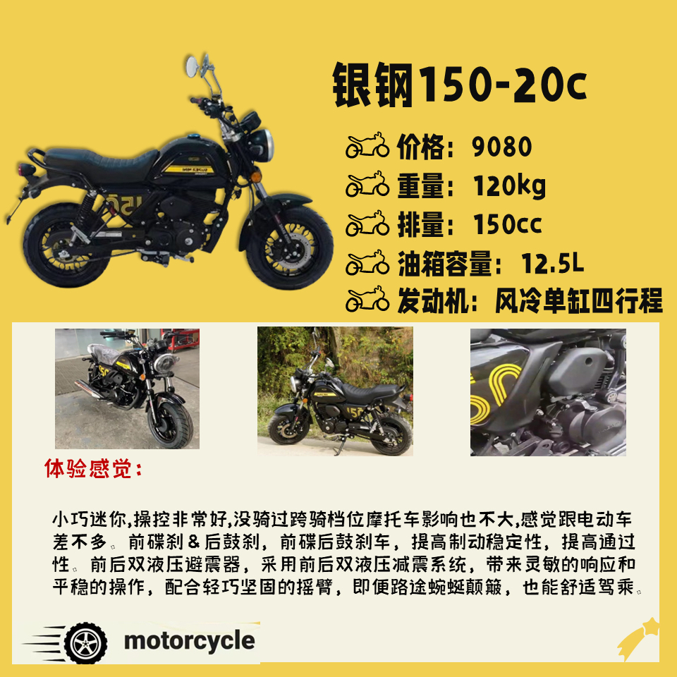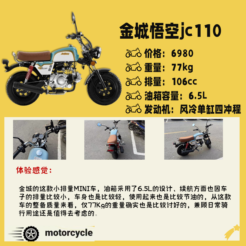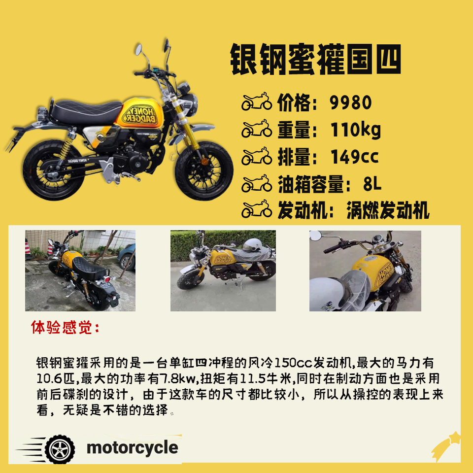 本篇笔记关联了银钢 蜜獾国四 单缸 迷你 摩托车 离宫月黄、银钢 YG150-22F 单缸 迷你 摩托车 墨黪黑、金城 悟空 JC110-Q mini 迷你 摩托车 蓝色等商品,为用户提供真实的使用体验和购买参考。