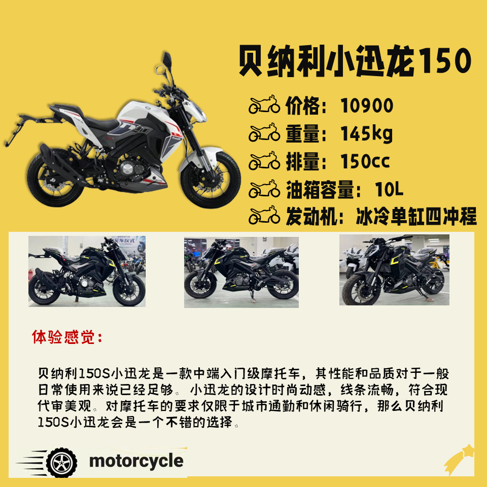 MINI摩托车是很适合小个子的摩托车推荐,建议收藏! 🉑️ 🌟贝纳利小迅龙150 贝纳利150S小迅龙是一款中端入门级摩托车,其性能和品质对于一般日常使用来说已经足够。 小迅龙的设计时尚动感,线条流畅,符合现代审美观。对摩托车的要求仅限于城市通勤和休闲骑行,那么贝纳利150S小迅龙会是一个不错的选择。 🌟银钢150-22c 此款摩托车采用CG发动机,新升级更稳定,动力大,爆发力强,易维护,经久耐用...