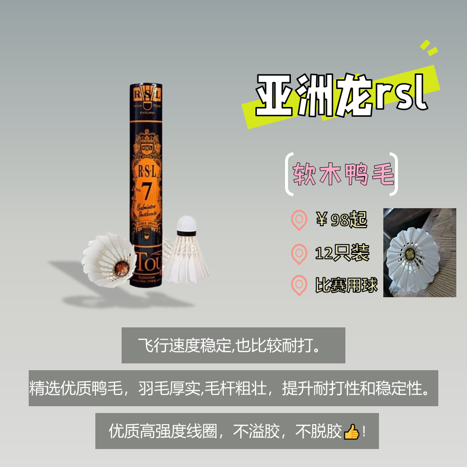 本篇笔记关联了RSL/亚狮龙 7号 耐打 飞行稳定 落点精准 训练用球 鸪鸭毛 羽毛球 YSL1271 7号、VICTOR/威克多 金黄系列 1号 耐打 碳音 全圆 飞行稳定 训练比赛 水鸭毛 毛羽毛球 金黄1号 金黄1号、KAWASAKI/川崎 训练系列 9号 落点精准 飞行稳定 耐打 不易烂 训练级 鸭毛 羽毛球 训练9号等商品,为用户提供真实的使用体验和购买参考。
