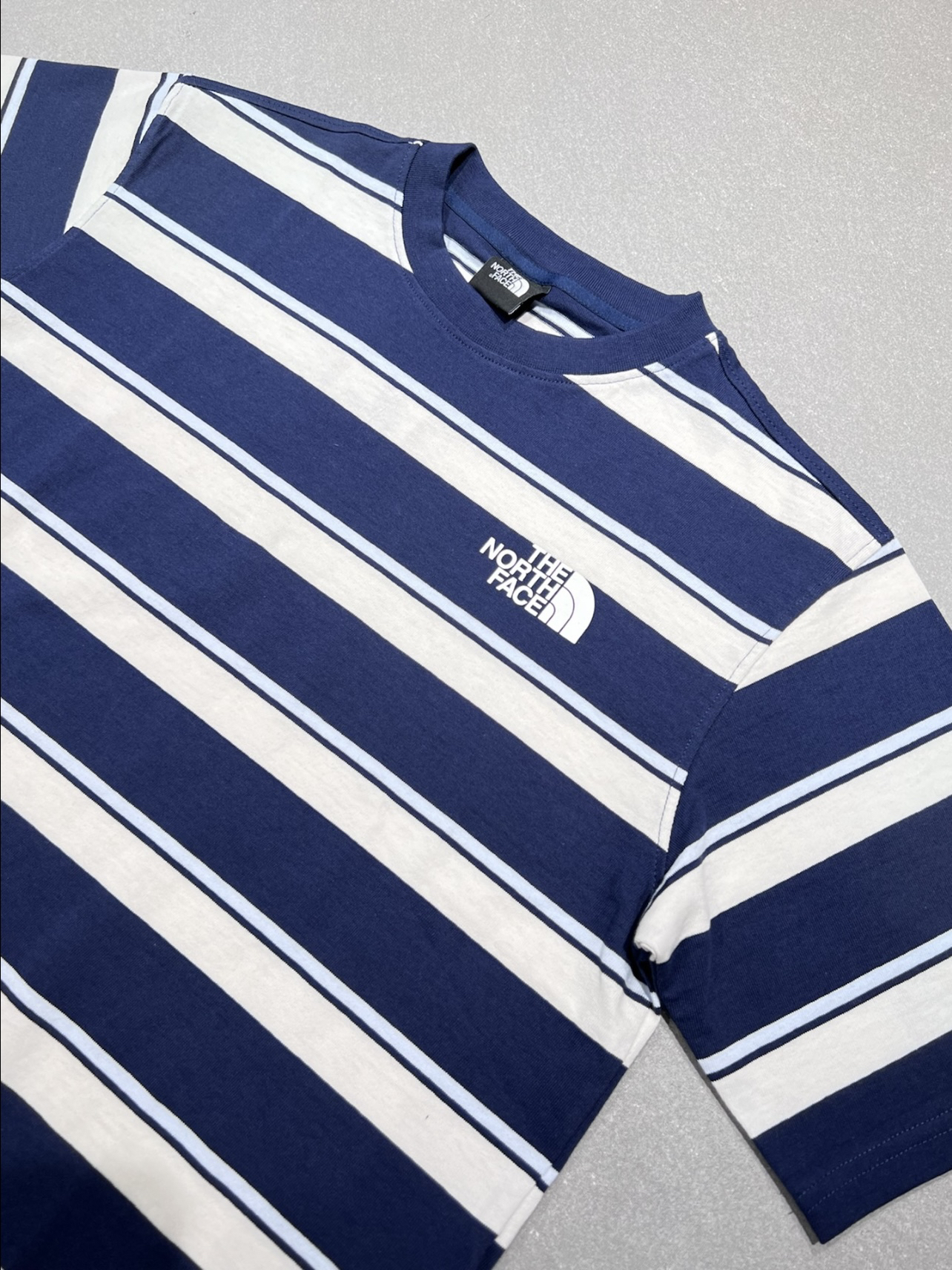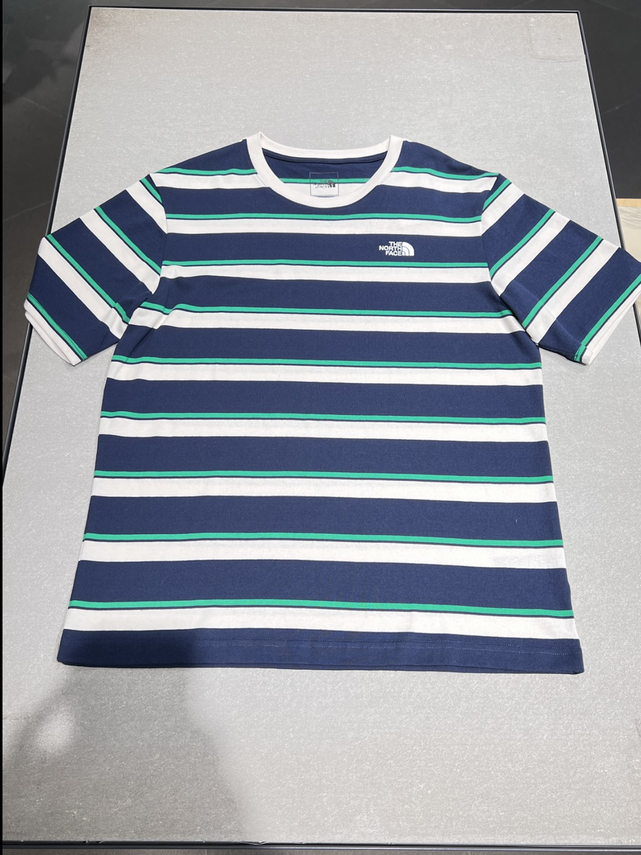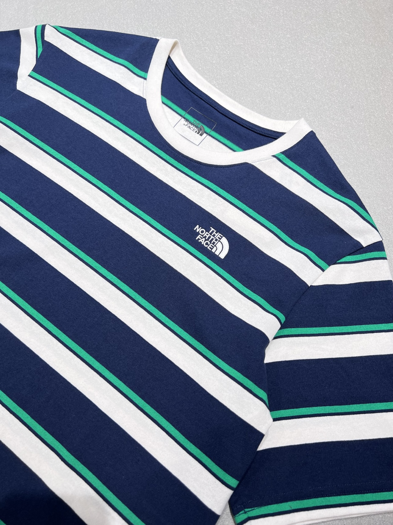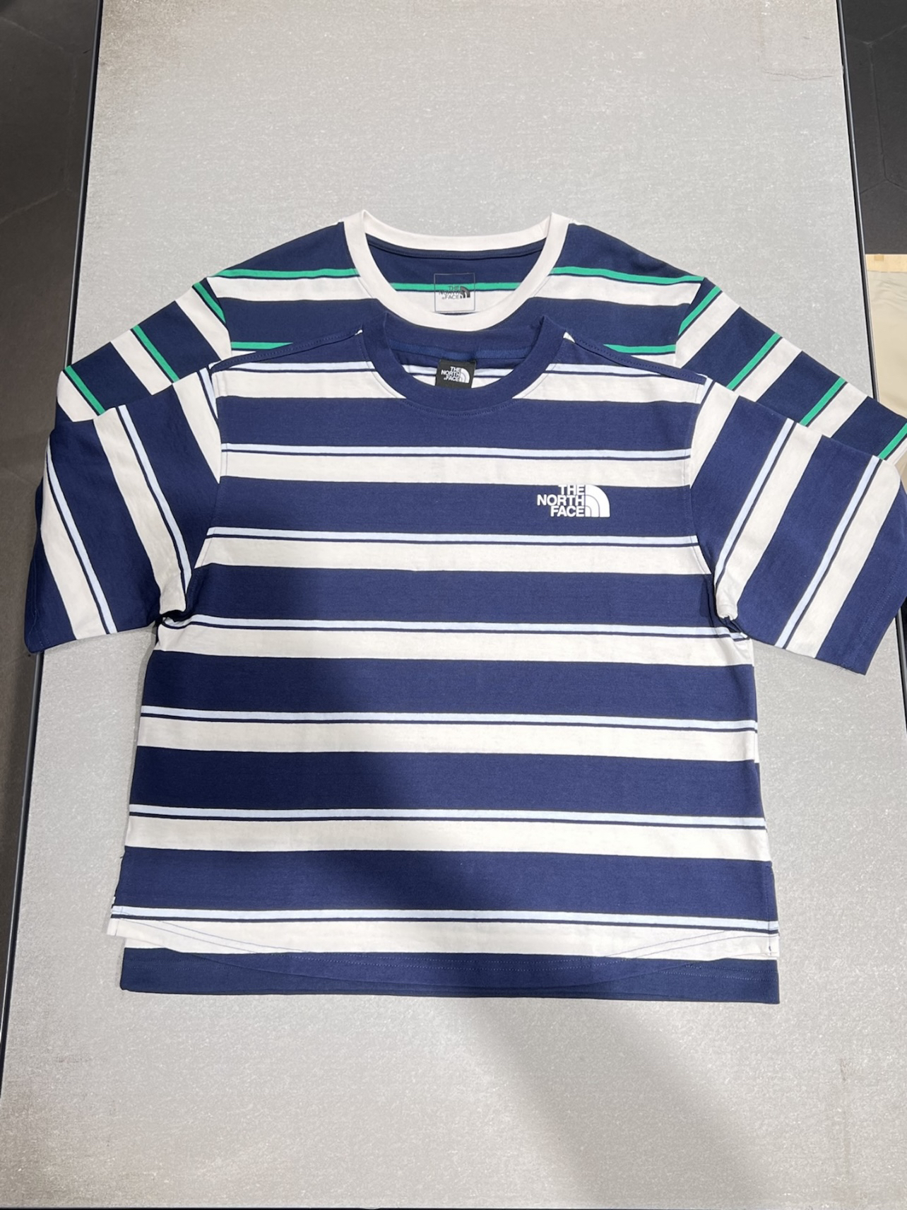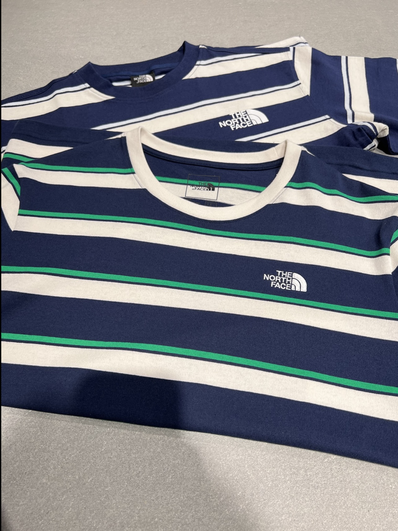 今日份宝藏短袖分享🎉 THE NORTH FACE北面条纹短袖 女款为白蓝条纹下摆有一定的弧度 整体的版型很宽松有点短宽效果显瘦🉑️ 胸口的是大logo胶印标 男款的是白蓝条纹➕绿条纹的三色条纹 版型也是宽松效果我正常穿L这款穿M就OK 领口会有点大购买可供参考❗️ 胸口的是小logo刺绣标 这两款的话女孩子都可以穿,也🉑️做情侣款 这里是伤心黑灯的宝藏短袖分享 喜欢的可以关注点赞哦