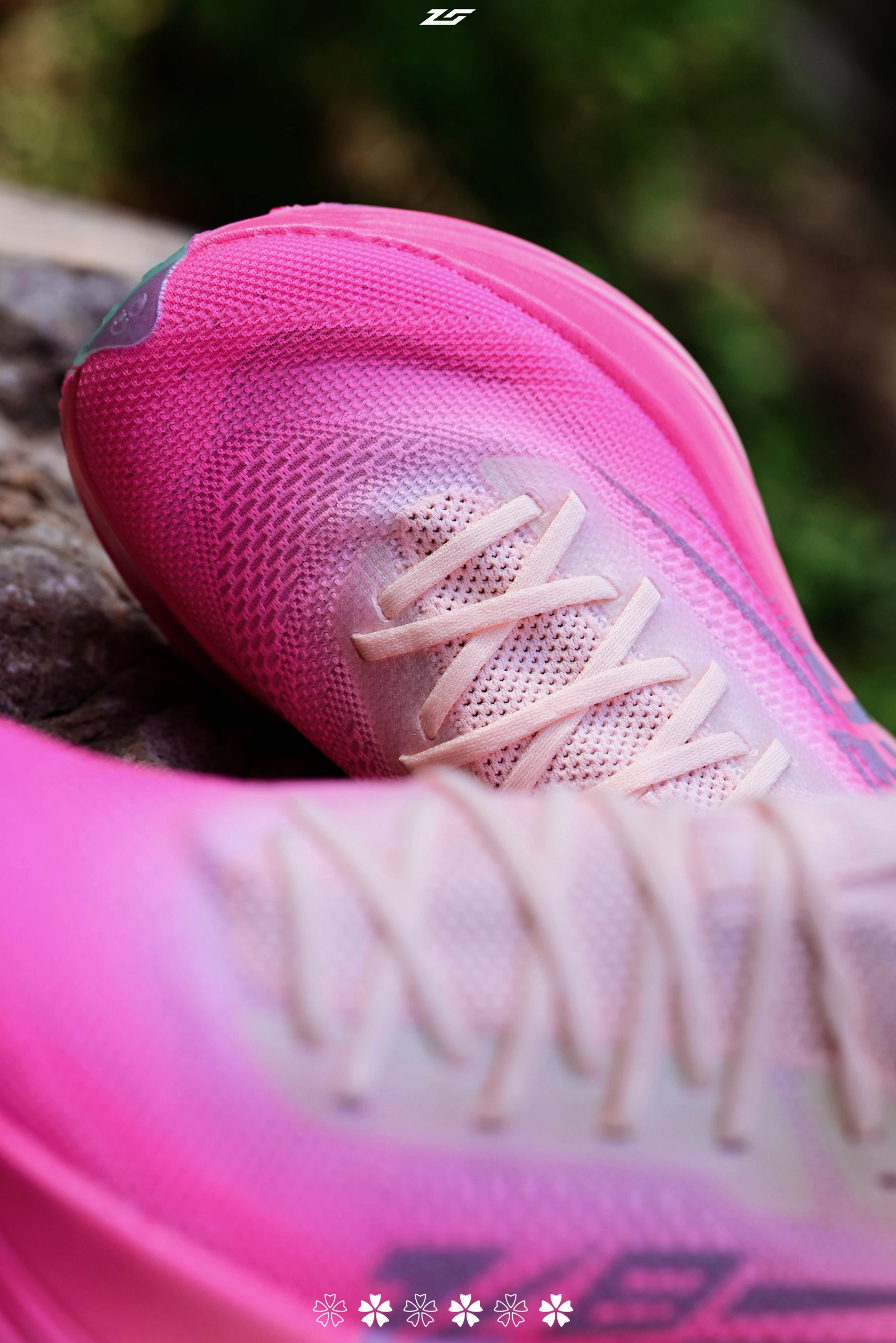 中乔飞影Plaid1.5超常发挥配色,樱花,一直心心念念,入手果然不负期待,小粉鞋+1。 因为是1.5,所以相较于1只是换药不换汤,乍一看还是一模一样的。 鞋面贾卡网布升级成针织面料、分段式鞋带、增加一组鞋带孔。 至于前掌宽度缩小,不比较区别不大,虽然改动小,但是还是买新不买旧的,何况1.5配色我觉得要比1更好看了。