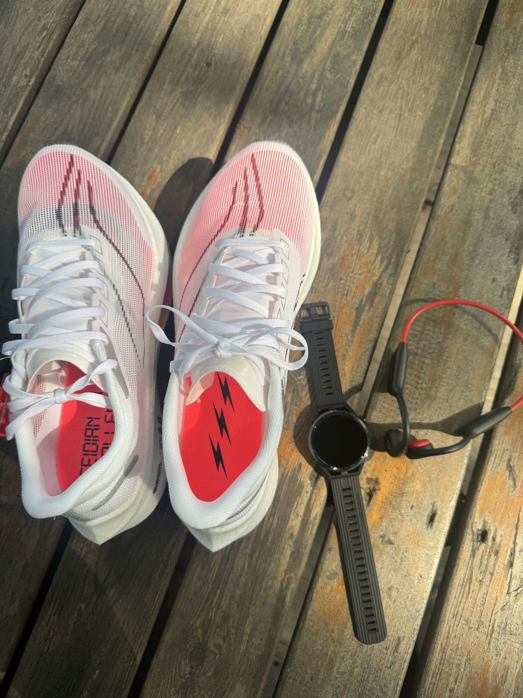 鞋子:飞电4C 手表:华为GTRunner 耳机:奢音X7 虽然是“穷鬼三件套”,但是脚上有鞋,手上有物,耳边有声,仍然可以万里追风!