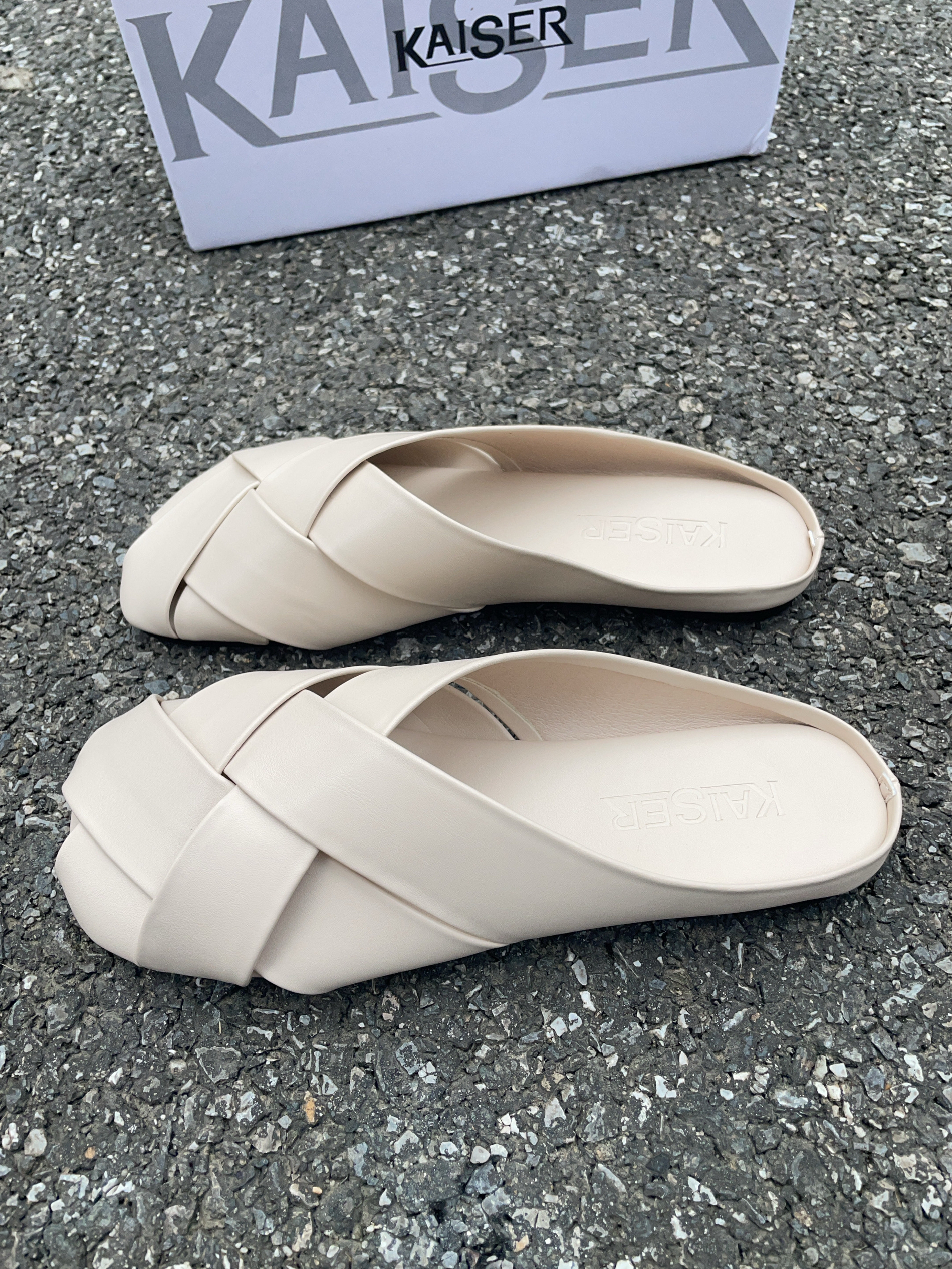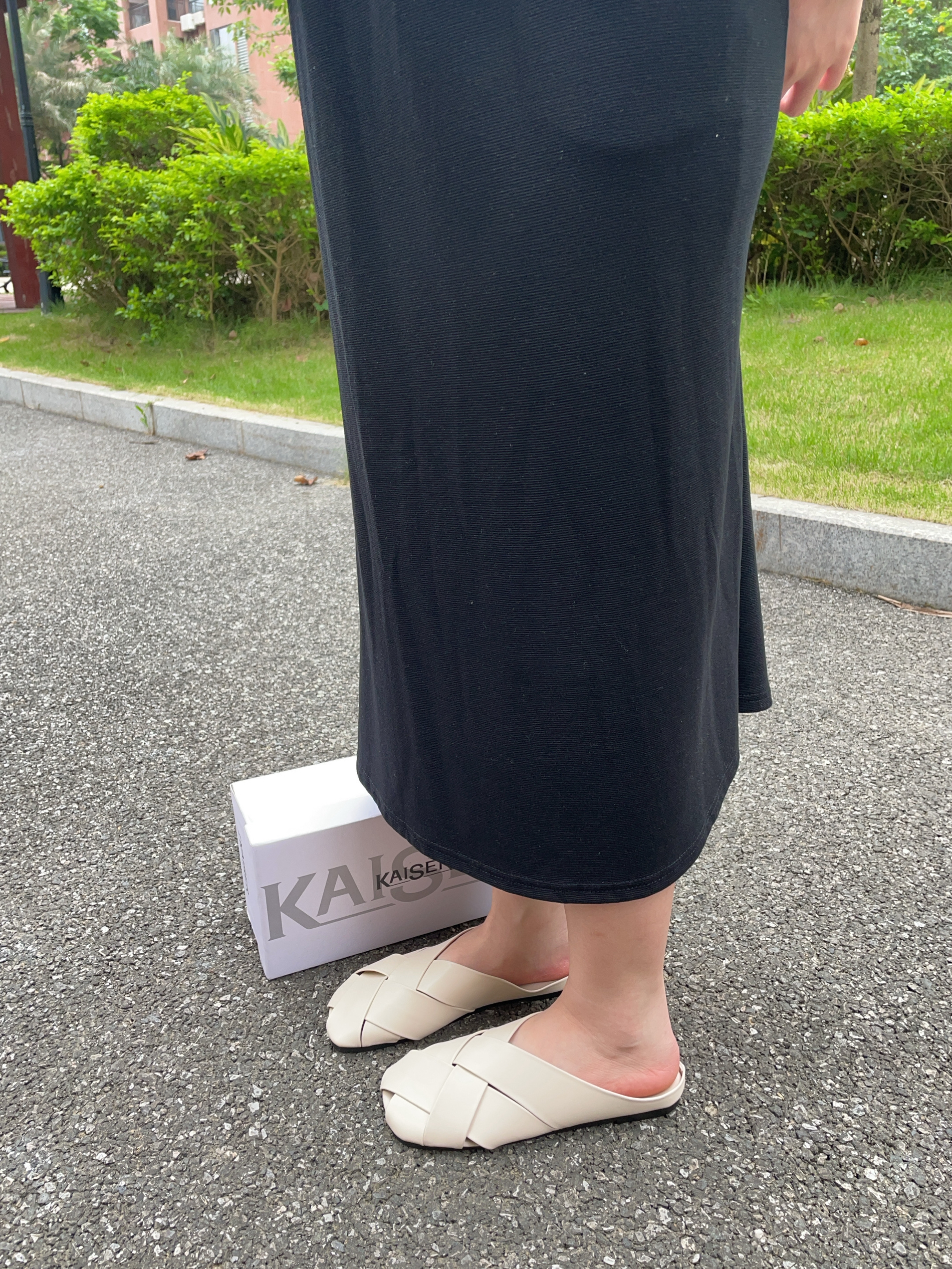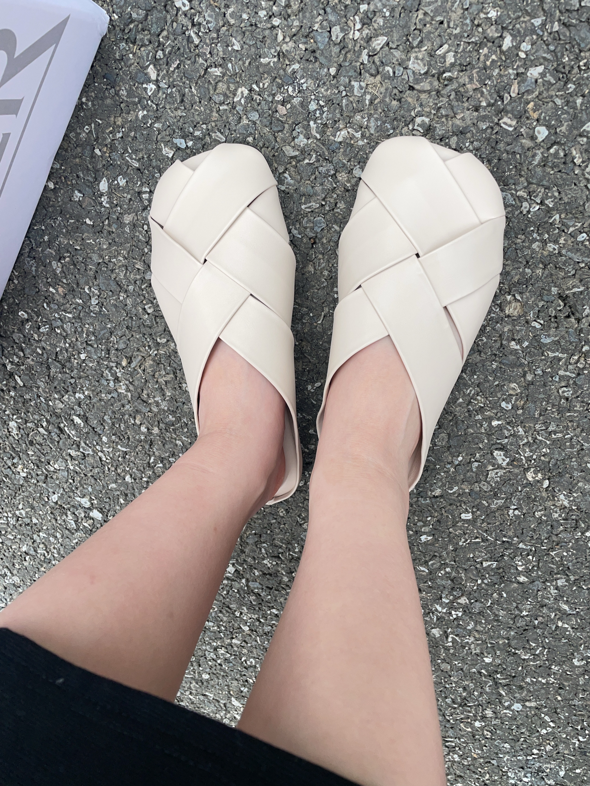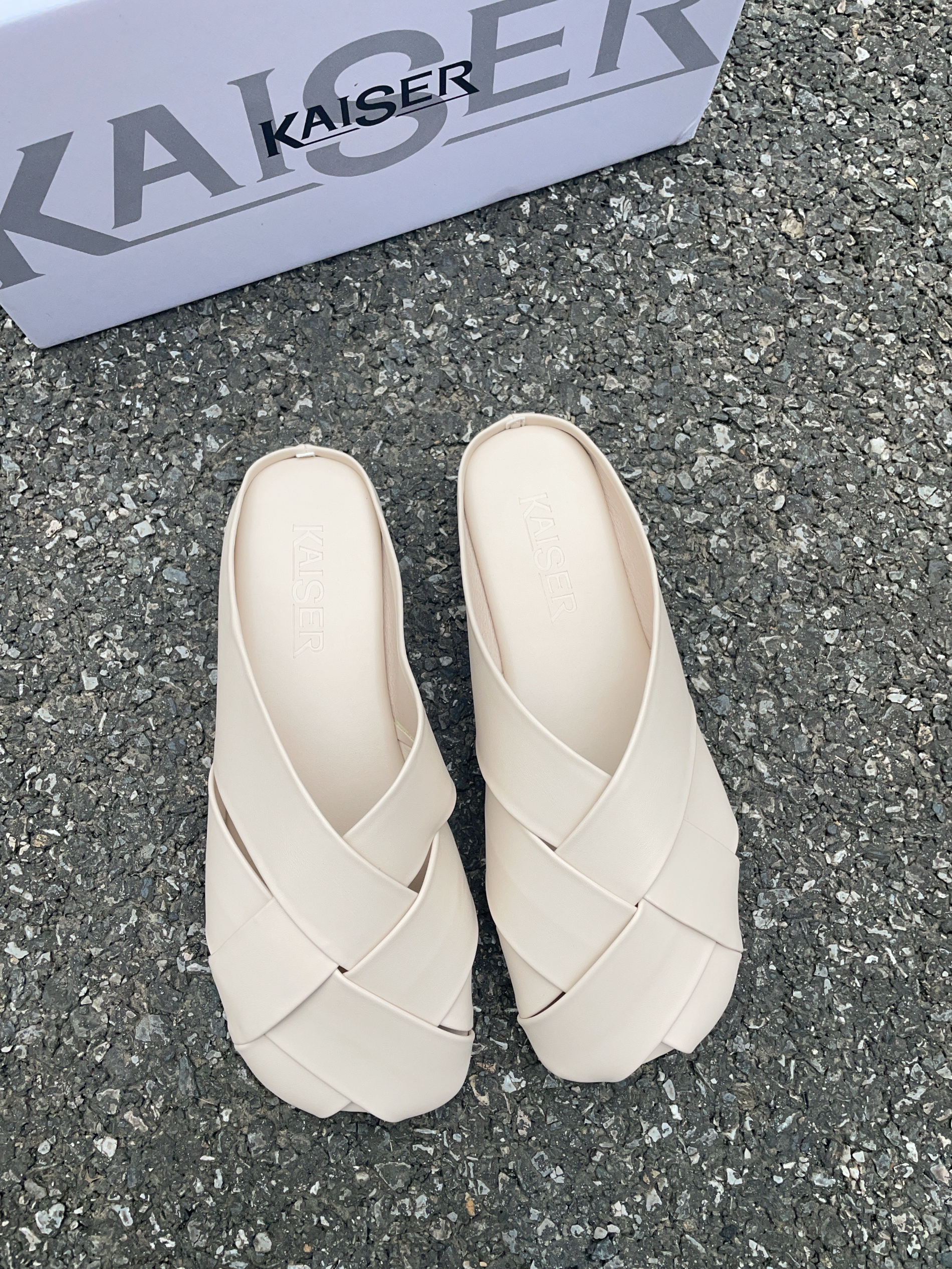 现在天气比较热了 夏天来了 脚心容易冒汗 凯撒KAISER这双包头半拖 颜色奶fufu的好好看 编织设计 上脚穿舒适轻便 包头不露趾 噂嘟hin奈斯 日常随便搭衣服嘟可