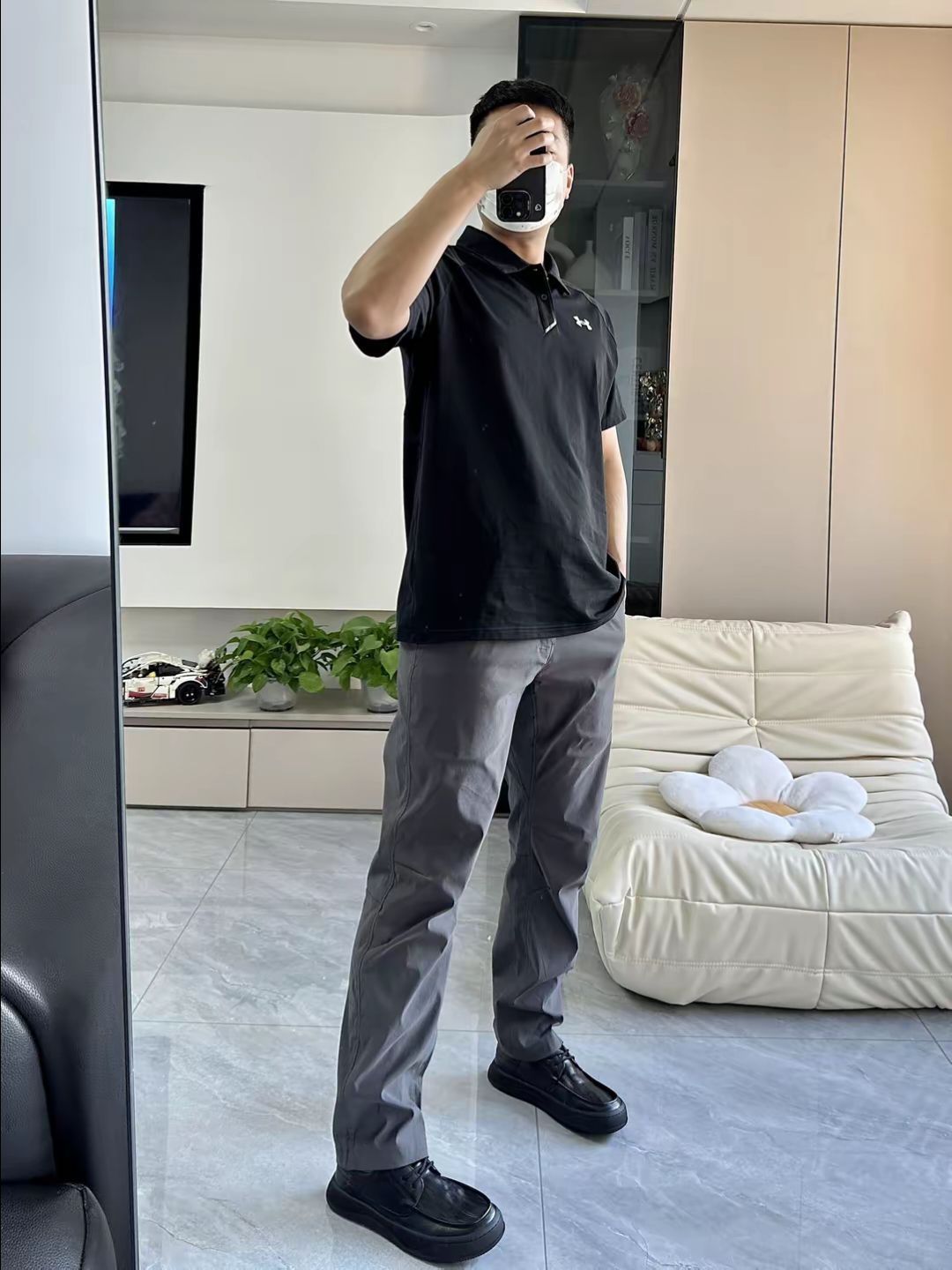 👾穿搭公式: Under Armour短袖polo衫 Arcteryx始祖鸟Levon系列 七匹狼牛皮鞋 ✨✨✨很适合商务通勤的一身搭配 ✨✨经典黑色Polo衫、上身很板正 ✨这身商务休闲满满~适合开会上班通勤哦 图源大阿碩侵删