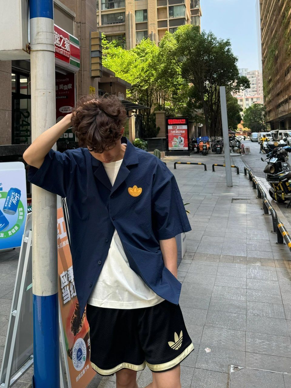🌋夏季短袖衬衫可不能少~可以当外套穿里面搭个T恤很有层次感~ ✨下半身搭配短裤or长裤都可以~无论是款式还是版型都超赞~ ✨宽松廓形超级显瘦~内搭一件白T,轻松穿出高级感~日系男孩必备款!胸前的刺绣logo让这款衬衫恰到好处,不花里胡哨,轻盈透气~很适合夏天! (图片来自博主:奥龙世博FDD)