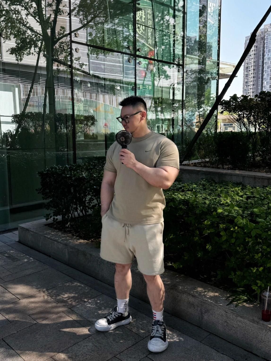 ✨短袖➕短裤解锁夏日穿搭☑️ ✨夏日的第一件短袖方向🧭,橄榄绿色短袖真的太好看了!有点美式复古穿搭的感觉✨宽松的版型穿着非常舒服 加上胸前简约的logo设计层次感拉🈵️ ✨男生运动五分裤可以说是夏日的必备单品!宽松的版型上身休闲舒适 裤子面料轻薄以及透气性超强🤟裤子长度也是刚好漏点膝盖非常喜欢💕 ✨男生夏日穿搭简单干净就行啦,不用花里胡哨哒🖤 (图片来自博主:耀叔叔)
