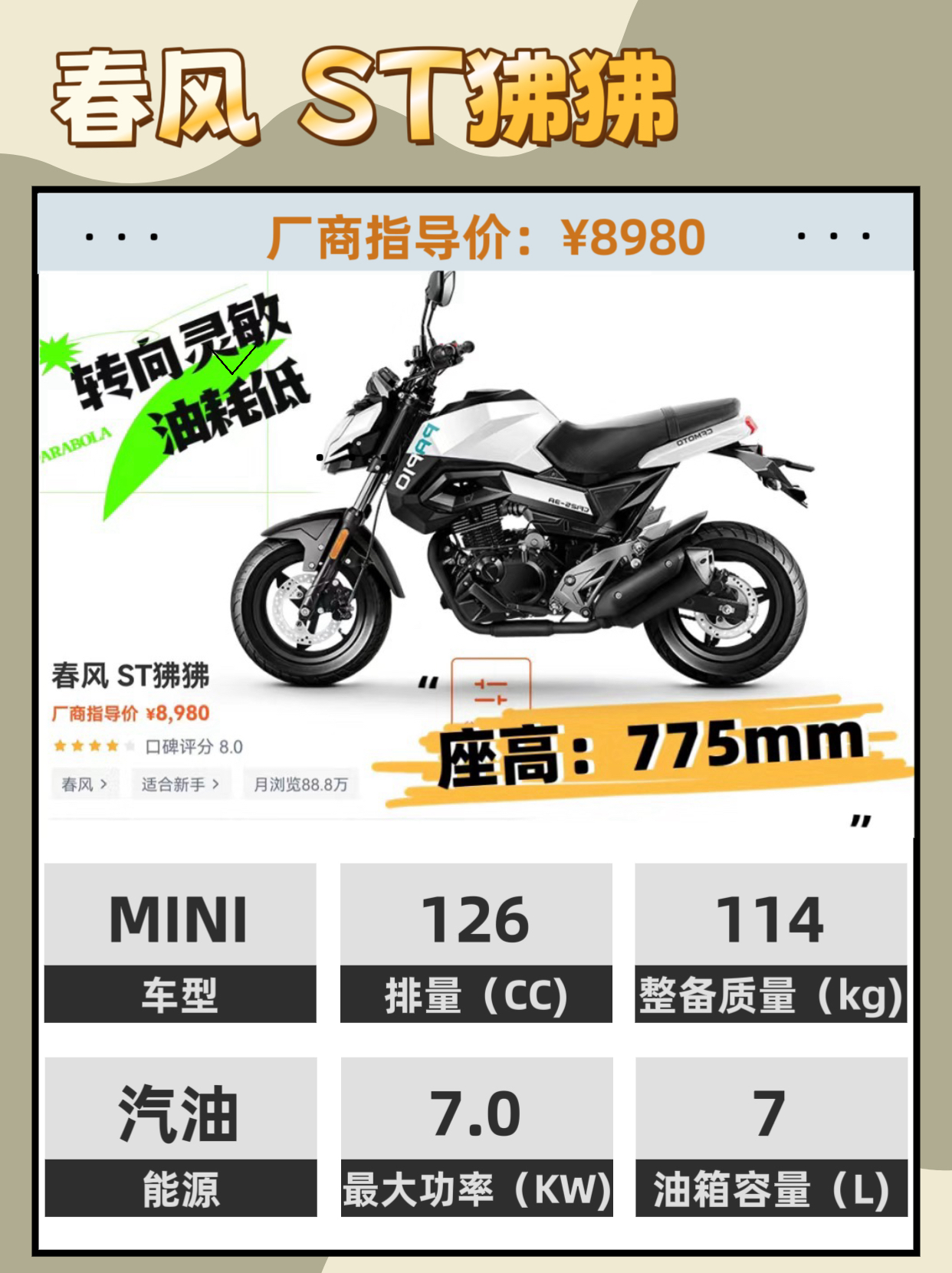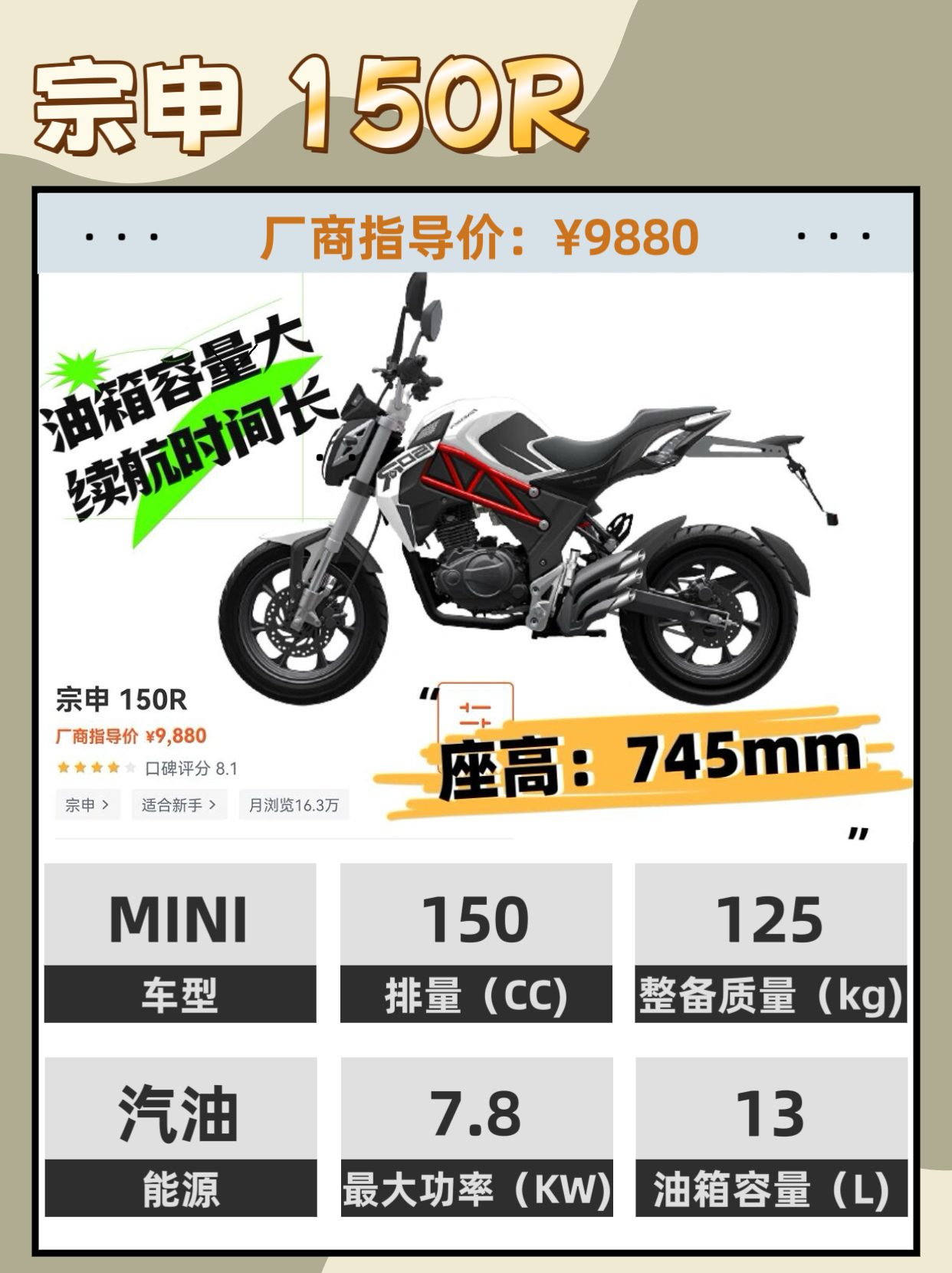 本篇笔记关联了ZONSEN 宗申 150R 【定金】 MINI街车 摩托车 夜幕黑、ZONSEN 宗申 150R 【定金】 MINI街车 摩托车 草莓红等商品,为用户提供真实的使用体验和购买参考。