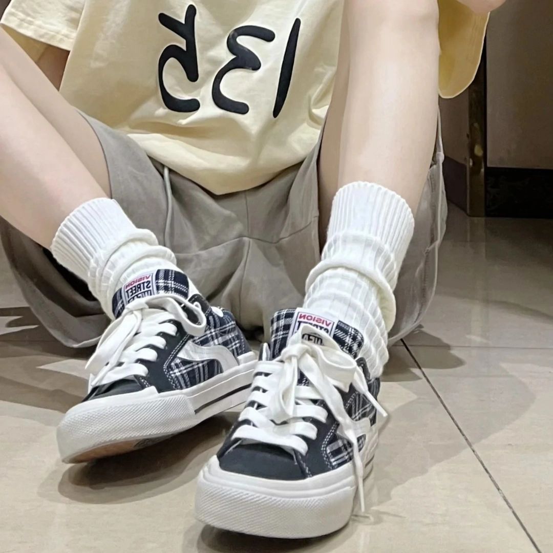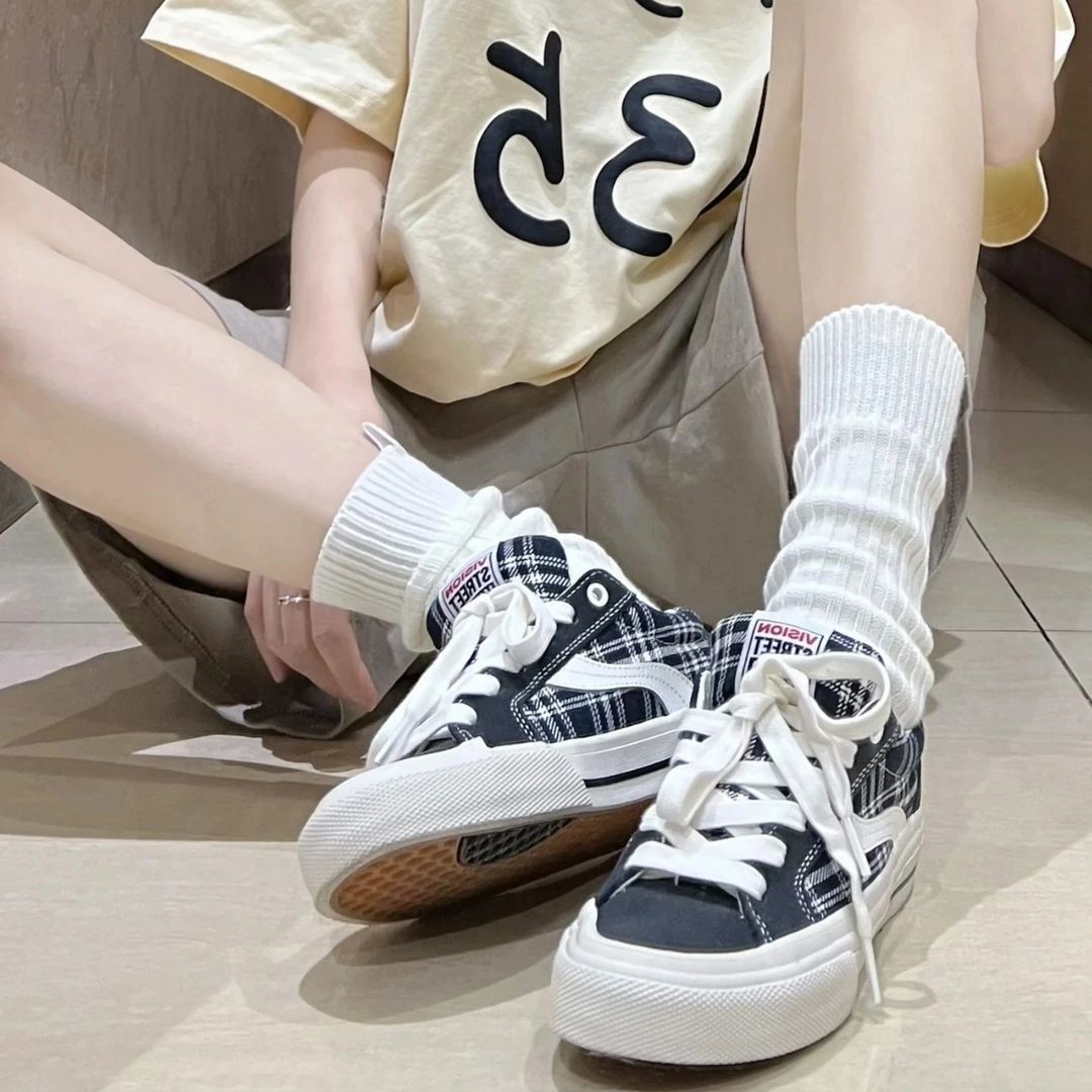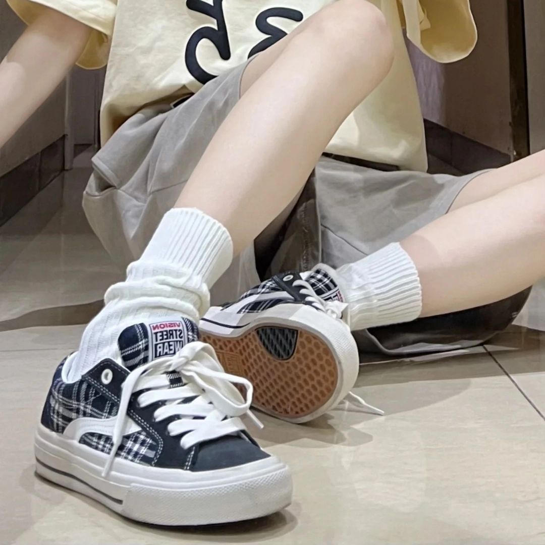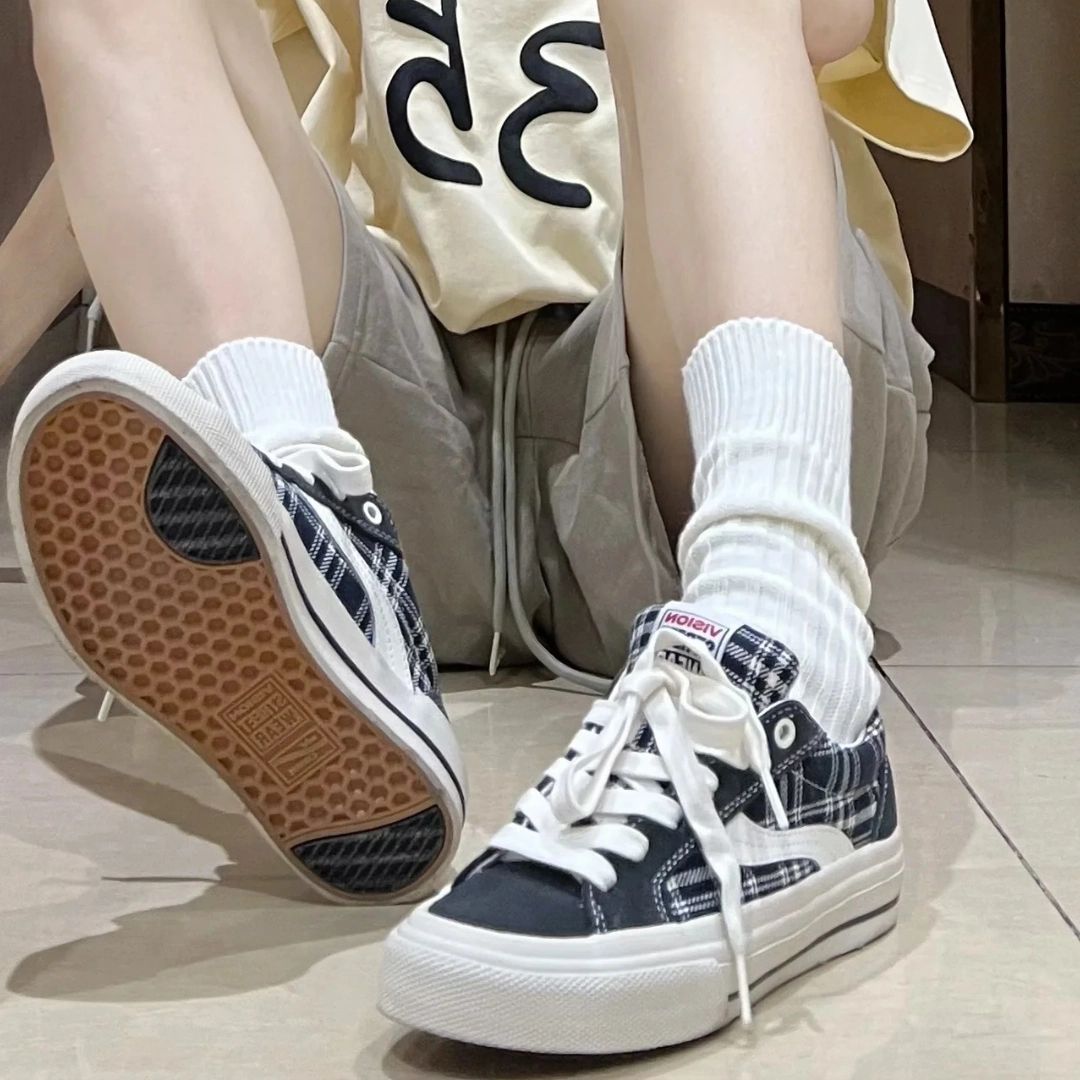 原来滑板鞋真的一双比一双好看, 帆布的拼接材质黑白配色搭配格纹, 百搭又耐脏,经典款鞋型也不会过时!