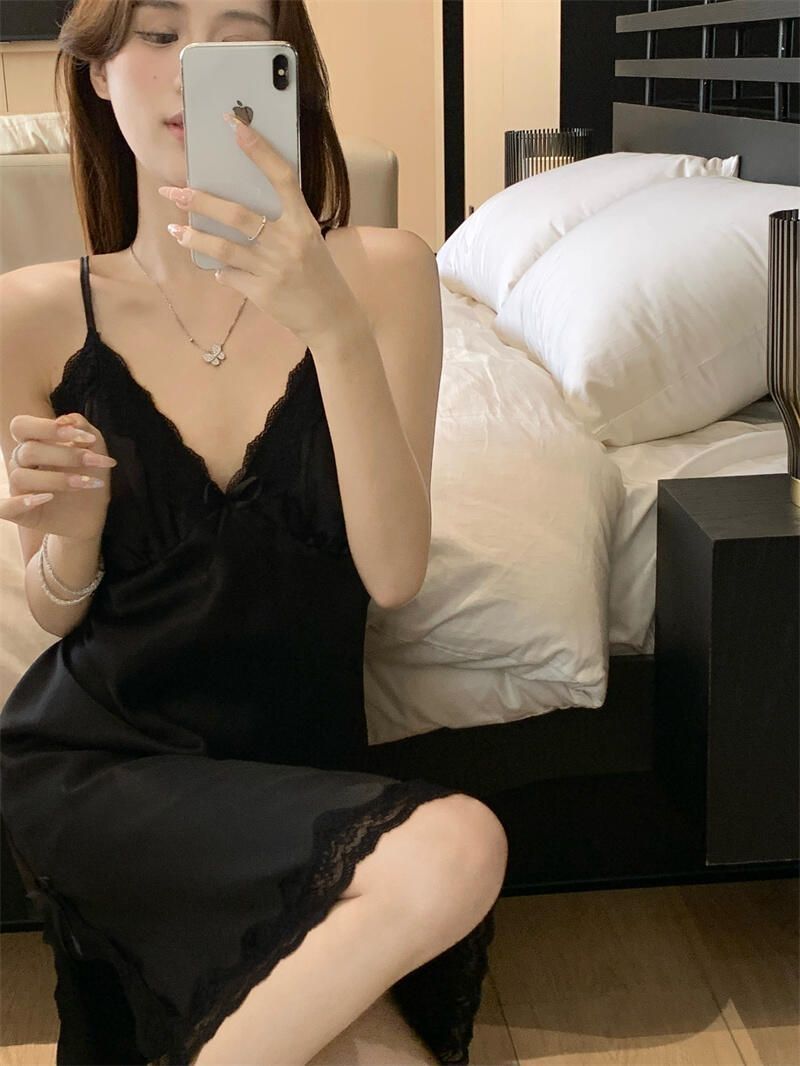 穿搭公式:吊带睡裙+拖鞋 这款吊带睡裙采用的是丝绸的面料,舒展嫩滑,而且肤感比较凉爽,夏天穿很舒服 采用的吊带和蕾丝的设计,优雅中透露着性感,很适合约会的时候穿搭 图片素材来源于网络侵删