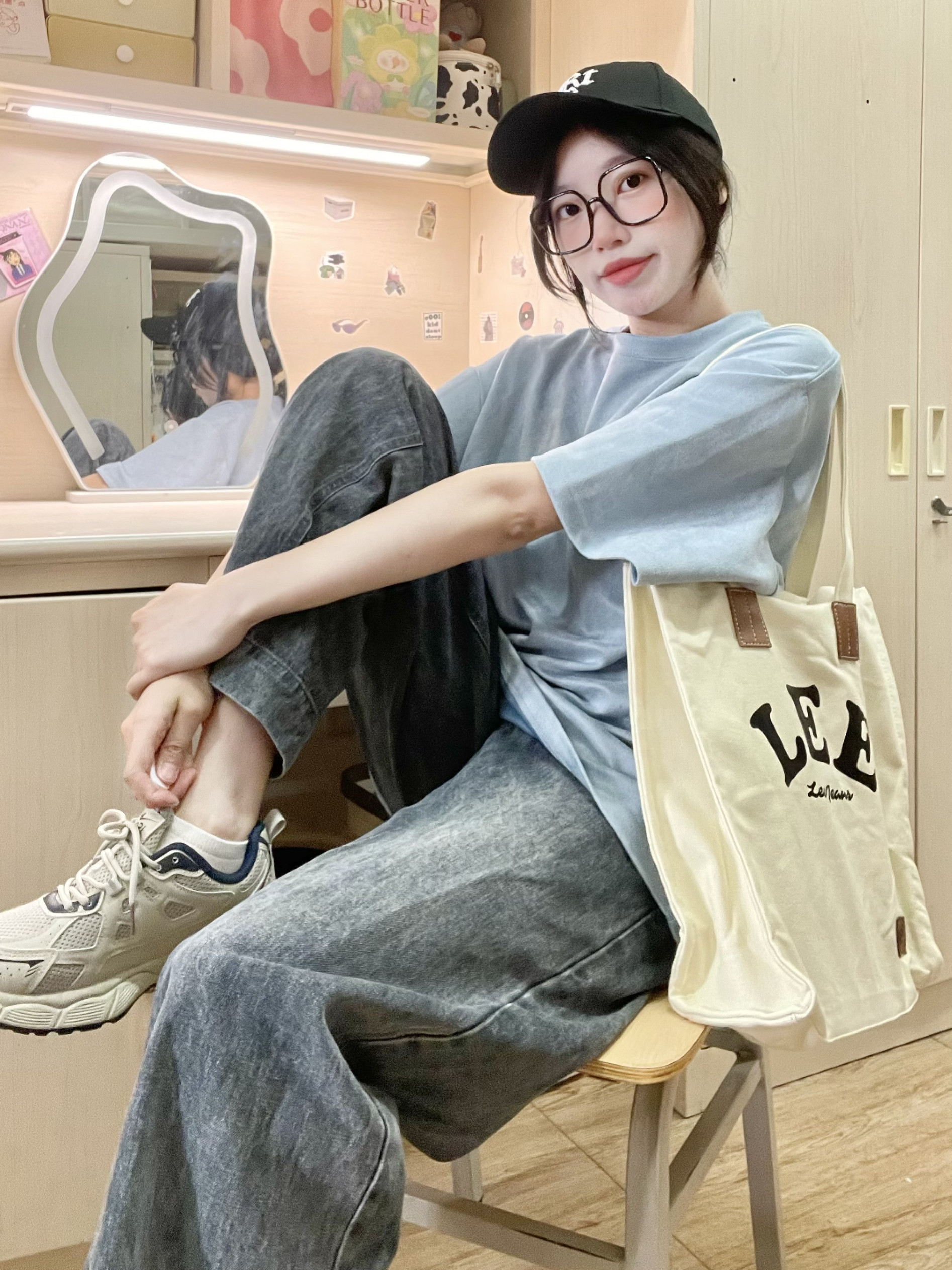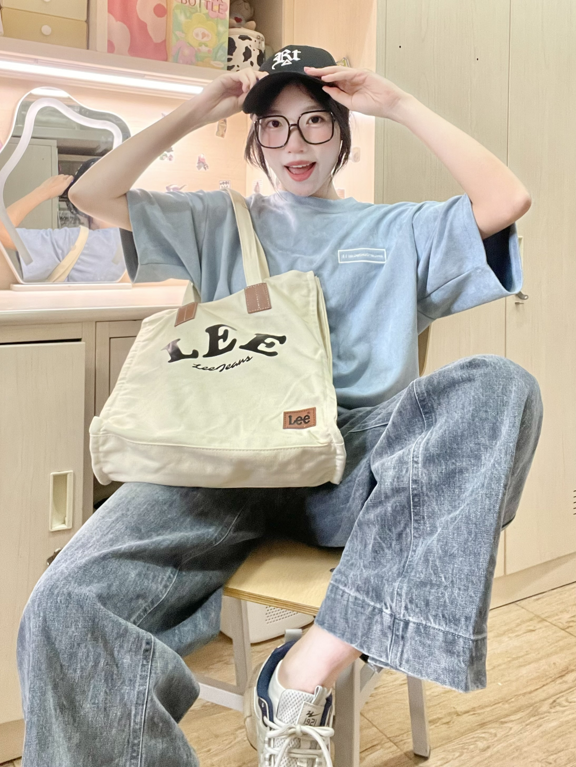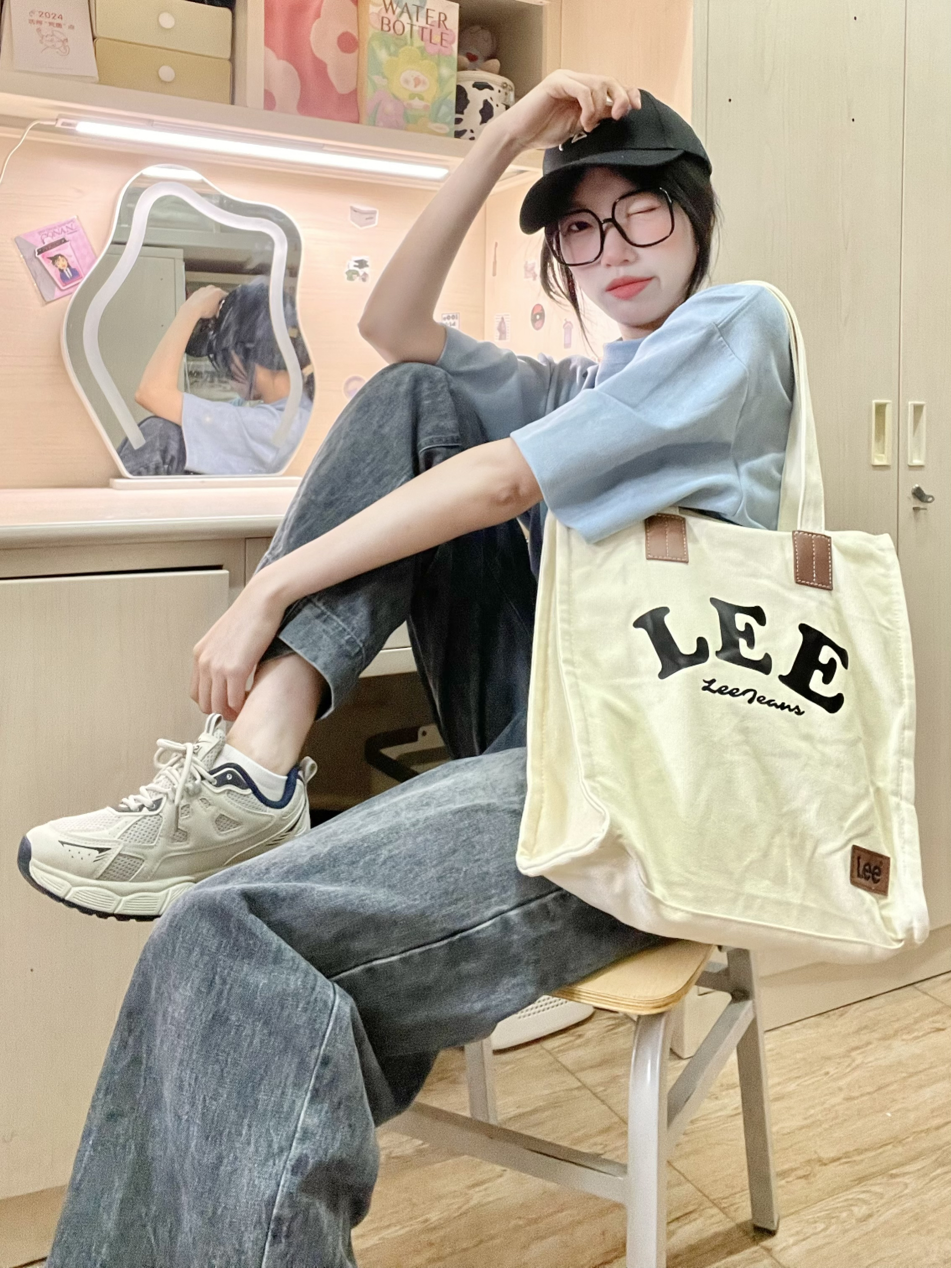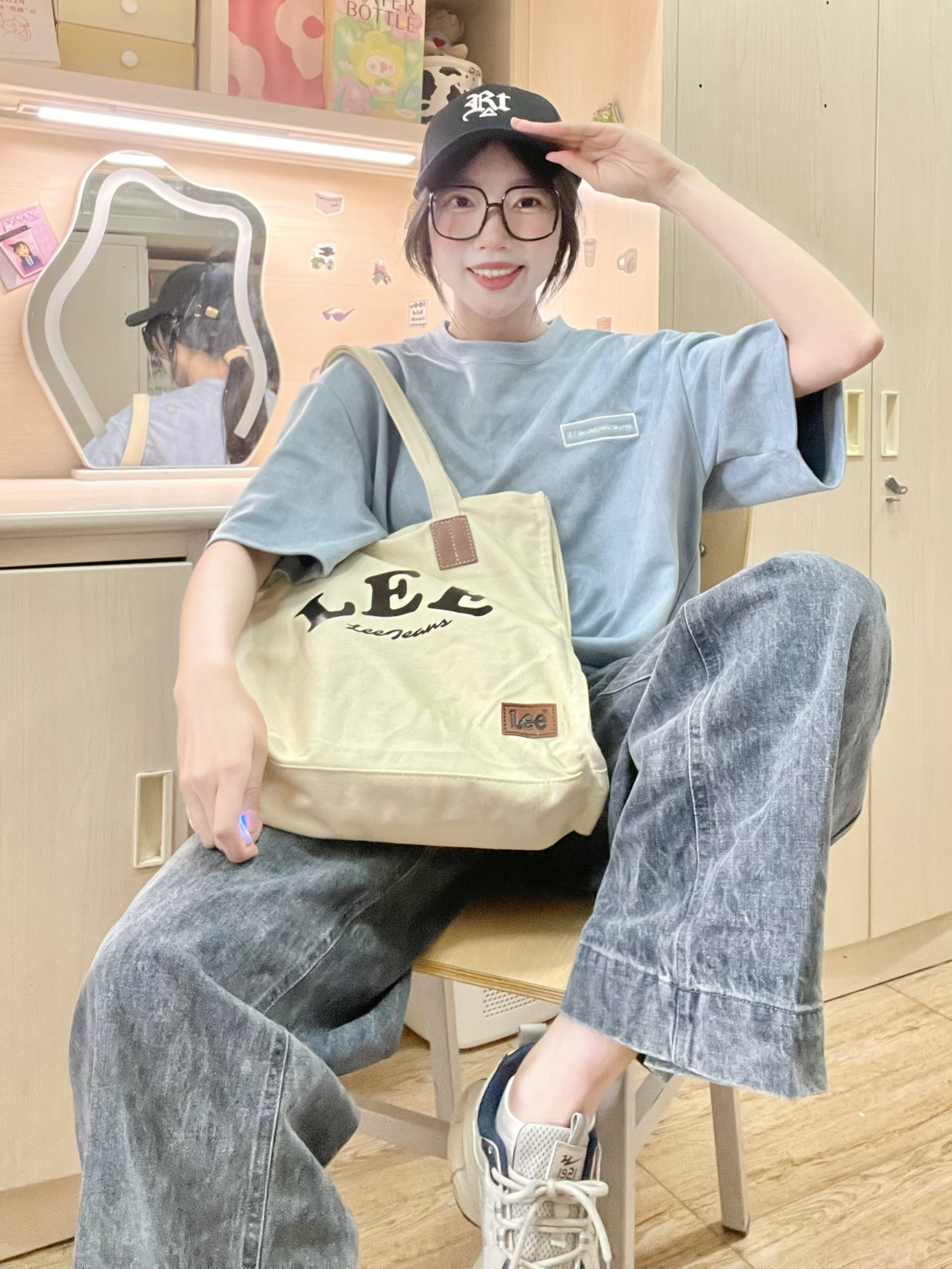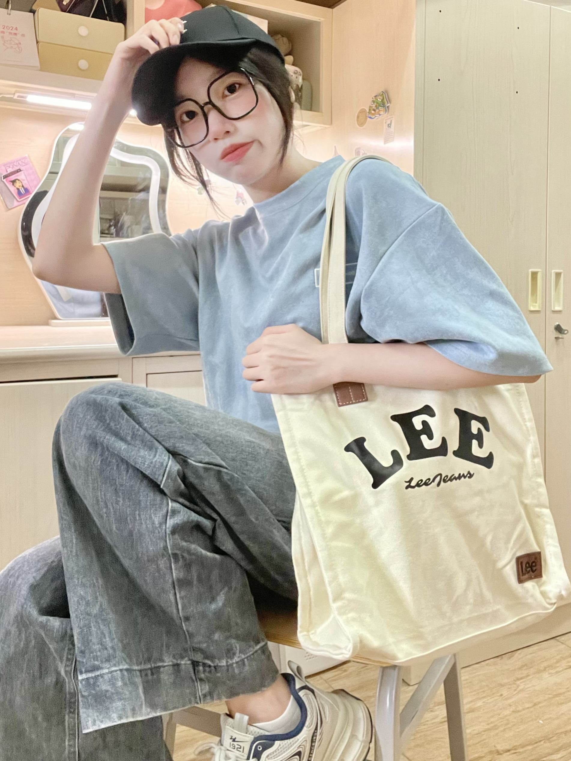 大家好吖૮ •𖥦• აᐝ我是可颂 欢迎点击今日份穿搭日记♡ᵕ̈ 今天给整体穿搭搭配了帆布包 发现帆布包真的好有夏天的感觉✧₊🥥 - 整体风格是偏休闲的学院风 灰蓝色短袖➕复古水洗牛仔裤 纯色系清清爽爽超适合大学生🫐 Lee 家的这个帆布包是我近期上课最爱 米杏色几乎和什么颜色的衣服都能搭 装书和ipad完全足够我真的大爱🐋꒱° - 身高|体重:168cm 50kg 🧍♂️ 穿搭风...