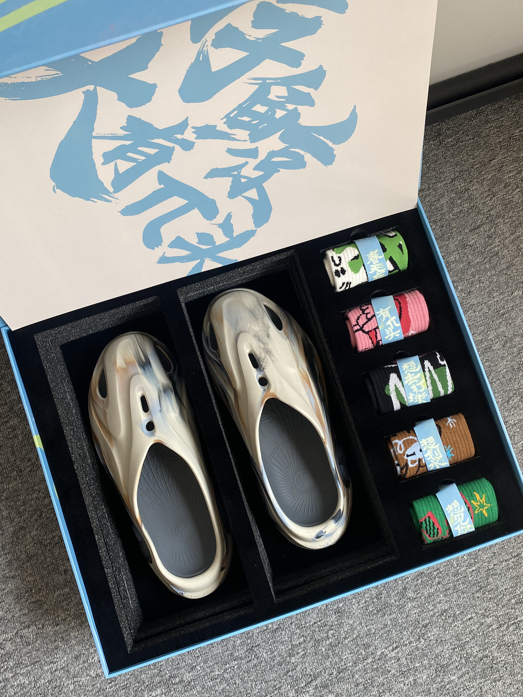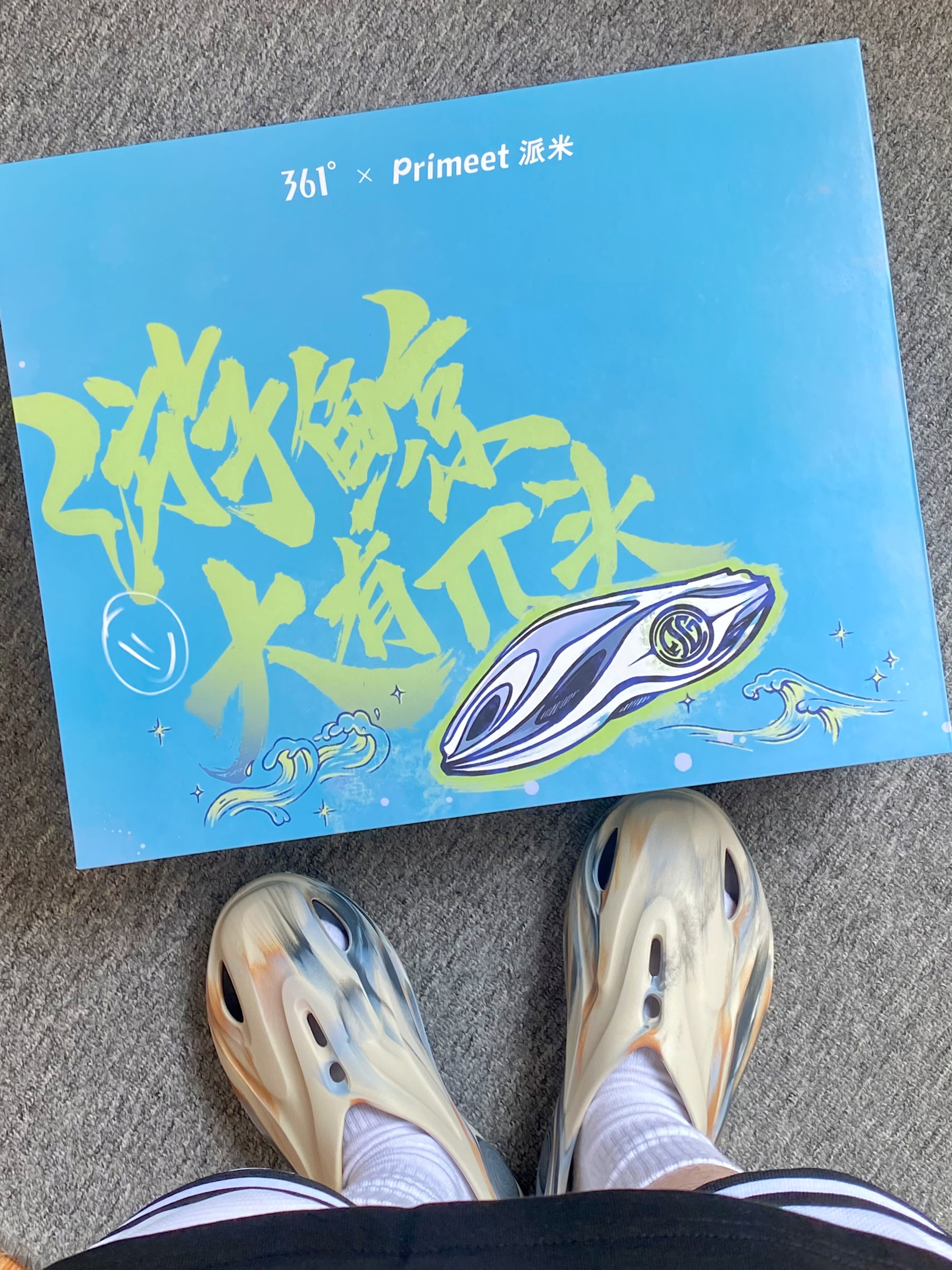 有没有兄弟们和我一样 夏天最爱穿的就是运动拖鞋啦 真的很凉快 游鲸🐳这个配色真的很好搭 平时篮球短裤都可以搭配👌 礼盒是361游鲸2和潮流袜子品牌派米的联名礼盒 真的超有份量有没有 里面有五双长袜可以换着穿啦!
