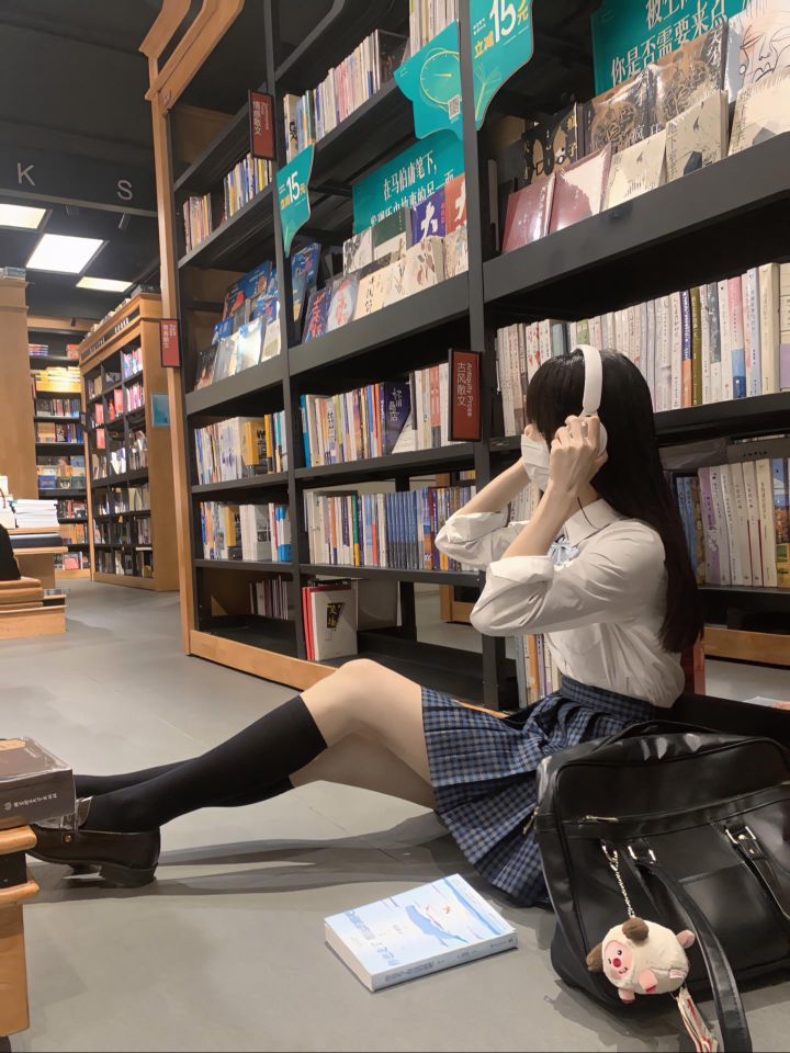 在图书馆拍照太有感觉啦!