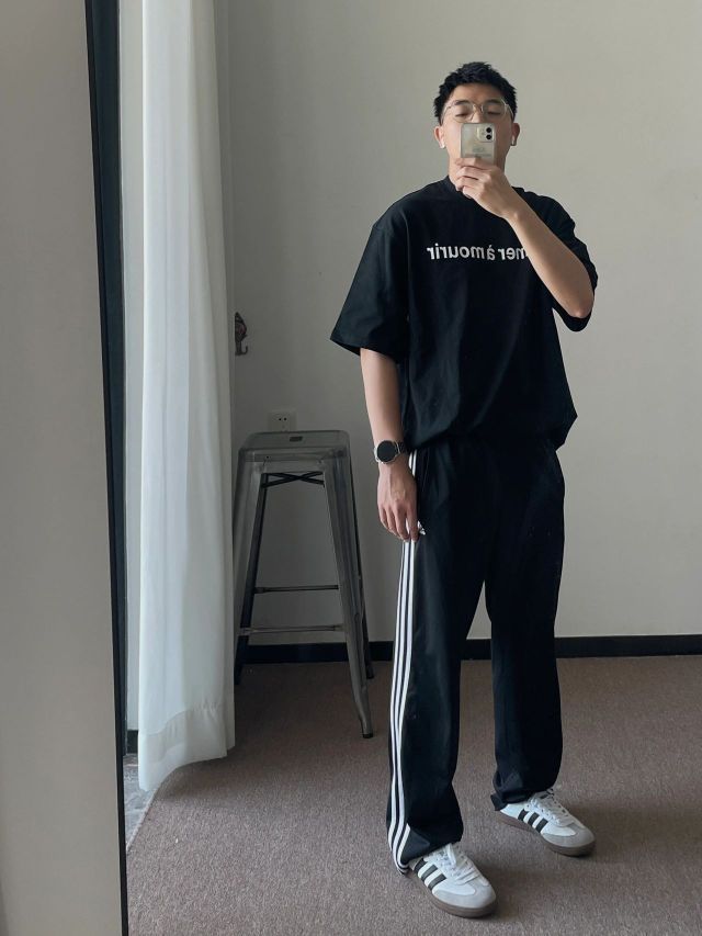 身高|体重:190/83kg 🧍♂️ 穿搭风格:美式穿搭 👔 上衣:候浪 👖 下装:网眼透气T 👟 鞋子:samba 🎒配饰: