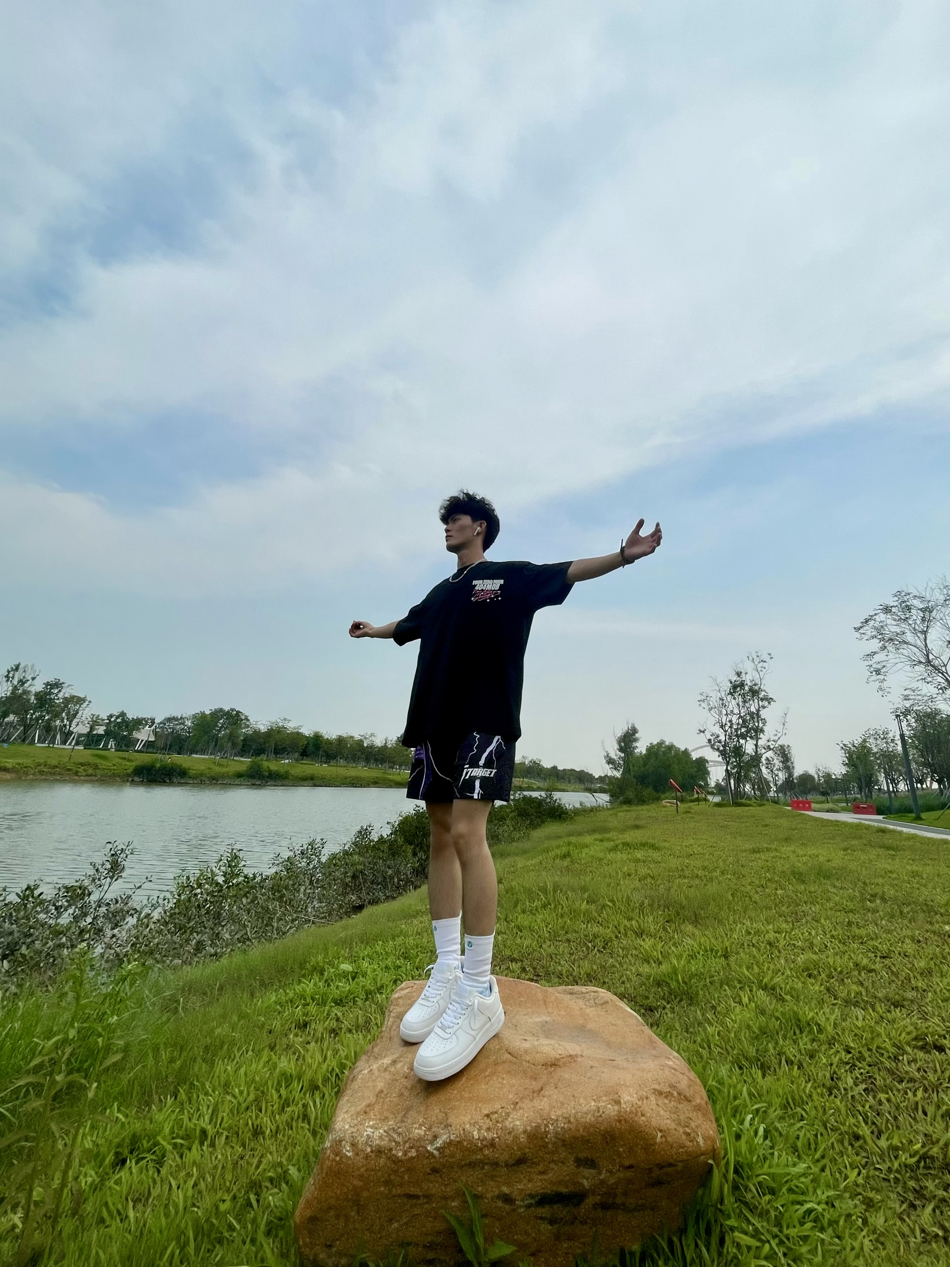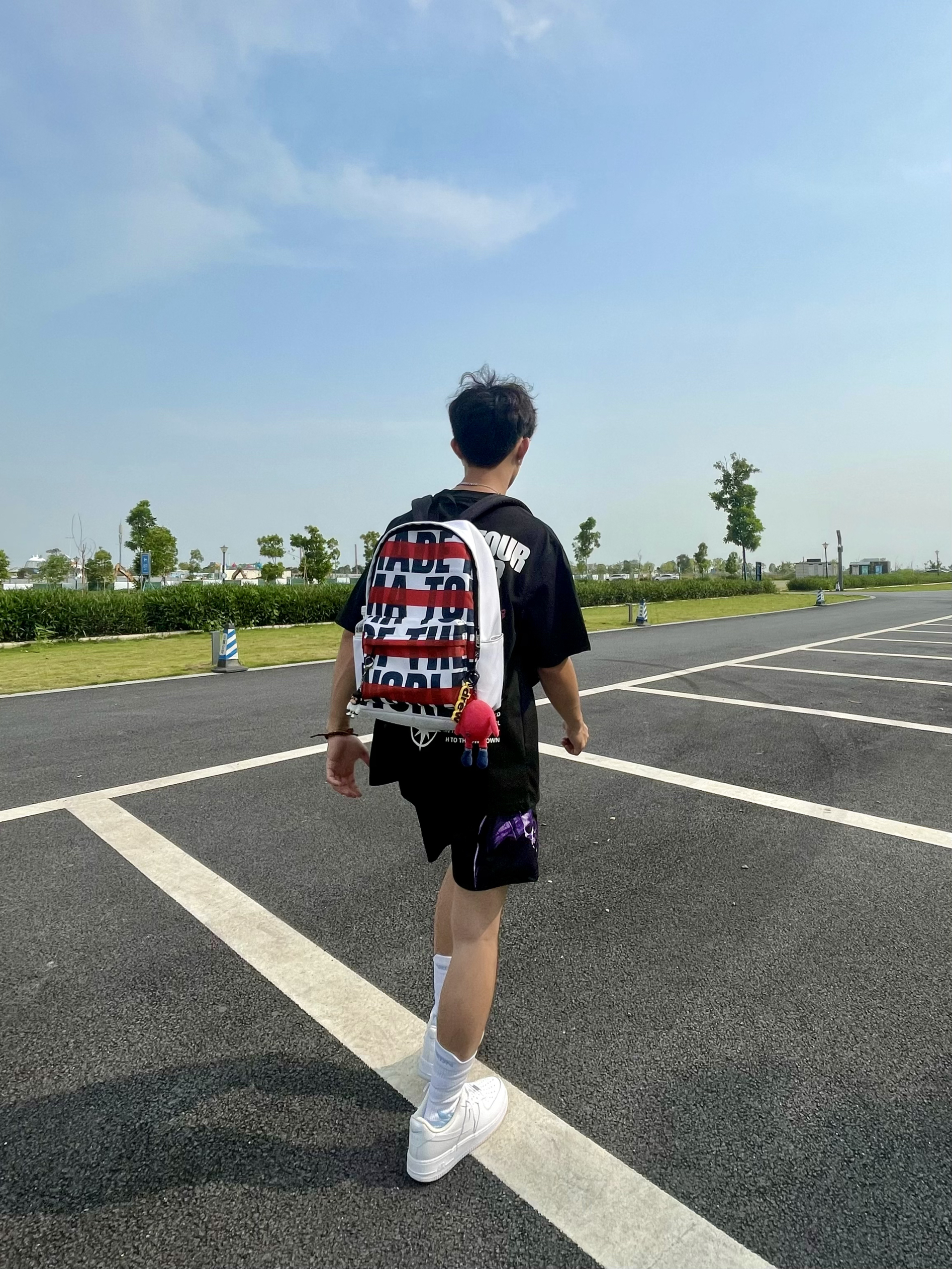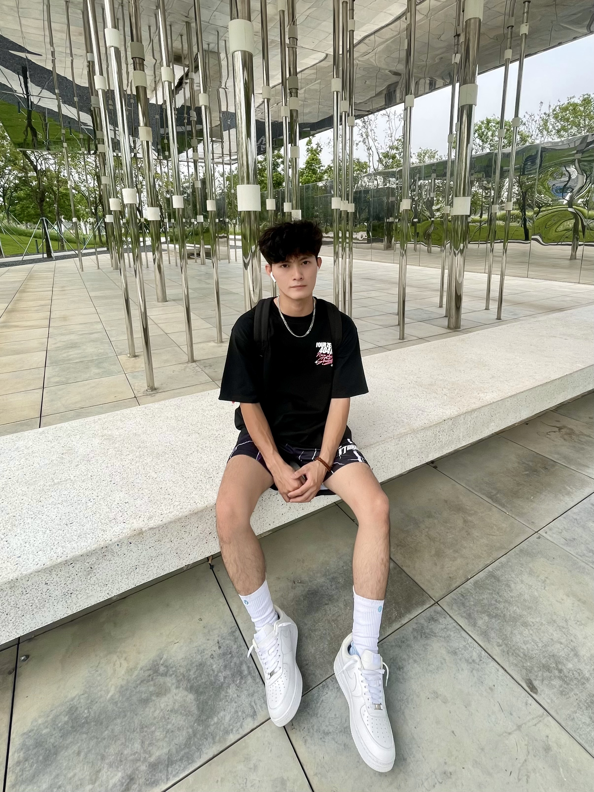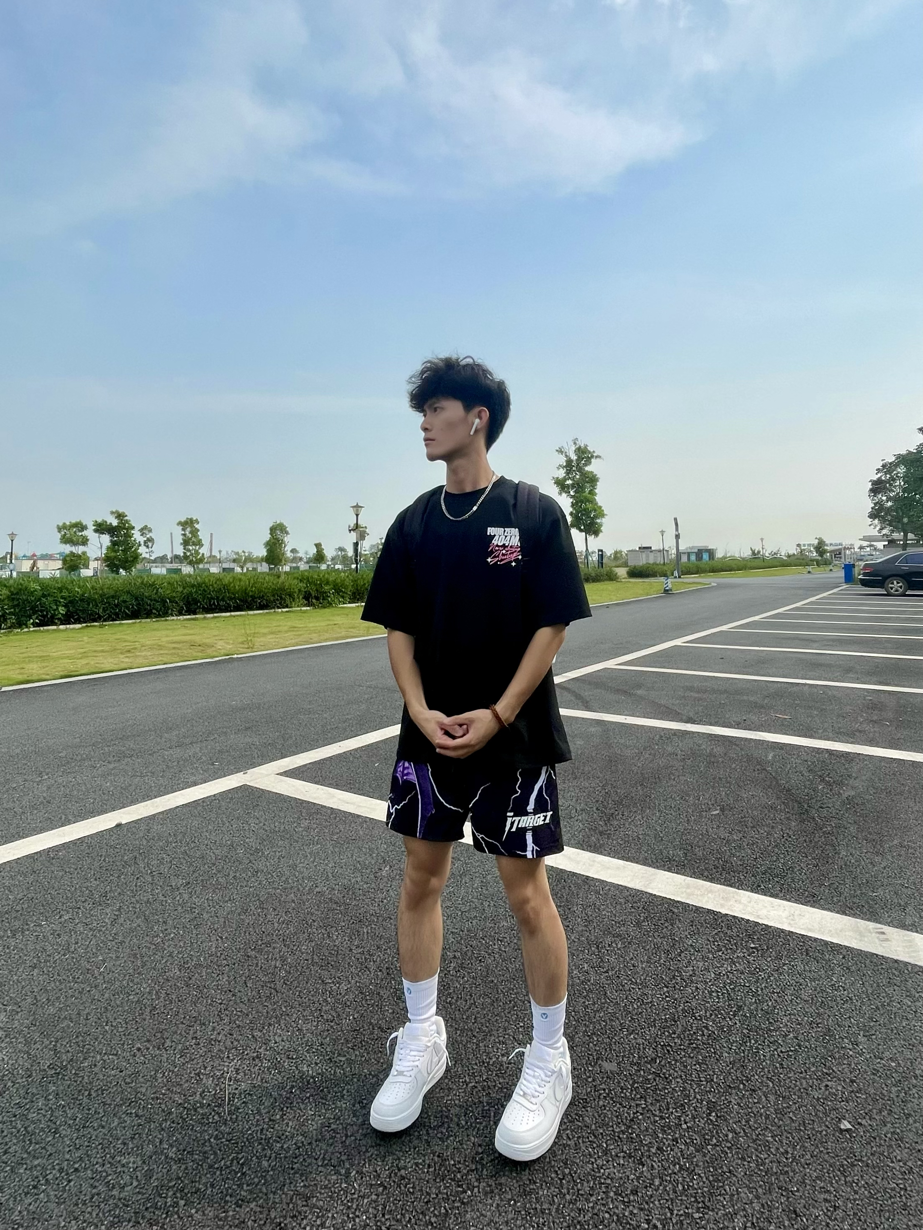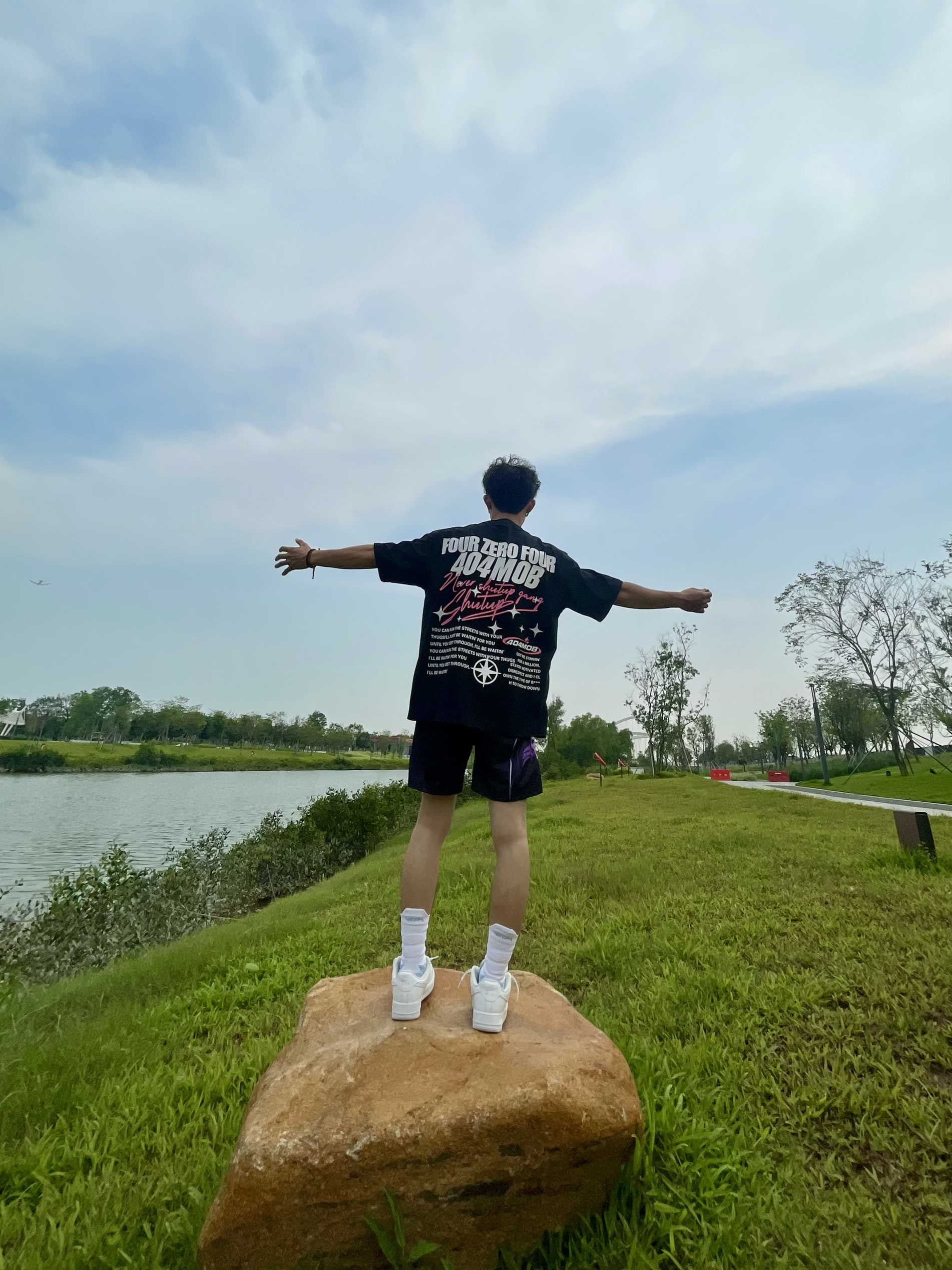 分享一下今天的夏季穿搭吧 男生要想穿的帅就得颜色呼应起来[机智_blue] 上身一件黑色偏宽松的T恤,发泡的印花图案非常绚丽,面料闷热透气性强,非常适合夏天穿,少年感十足[暗中观察_blue] — 今天分享也可以很少年感啦 👕 404MOB GANG