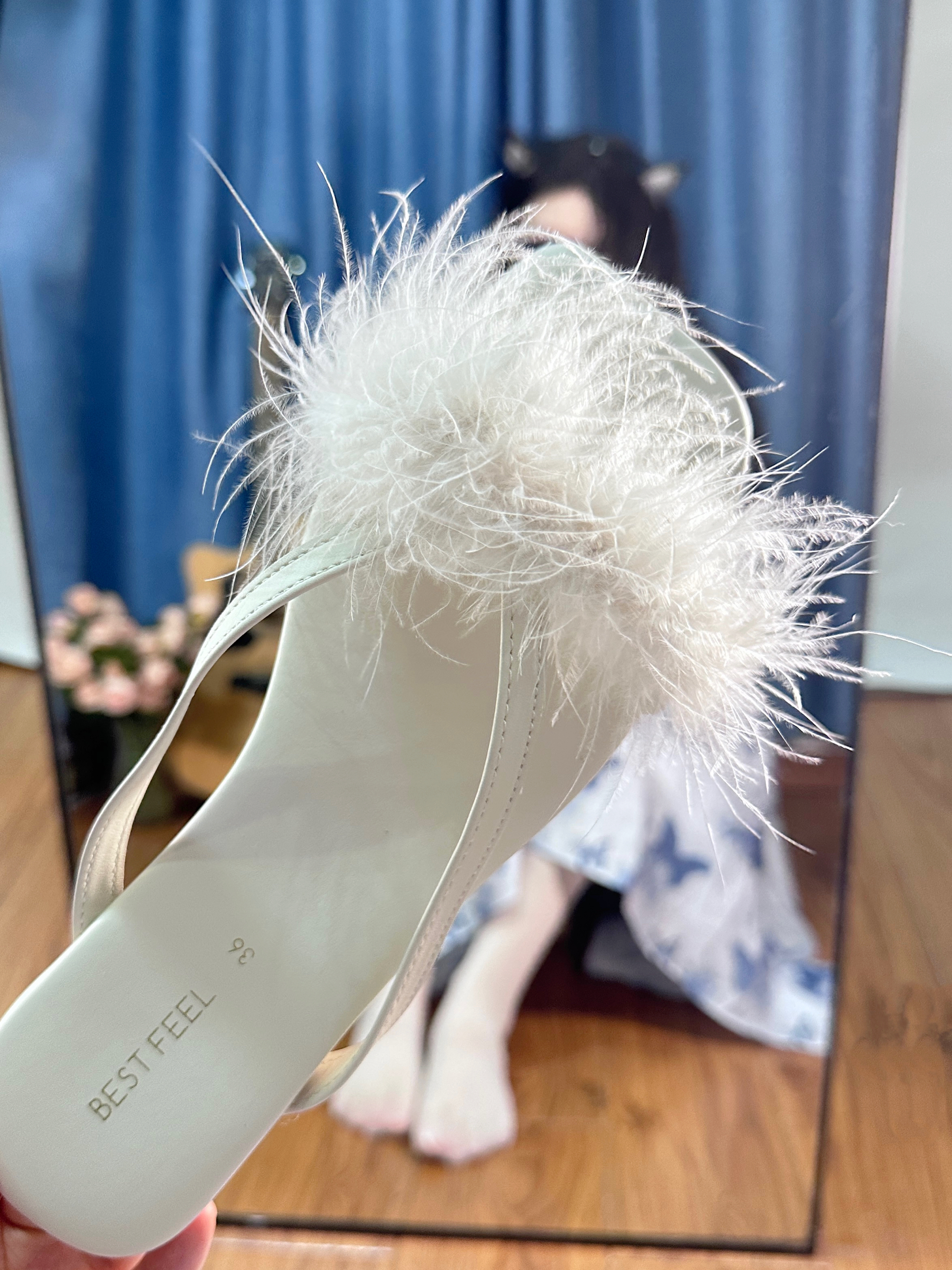 闺蜜说这才是我该穿的拖鞋嘿嘿 这双灰白色的毛毛拖鞋上脚就感觉自己变温柔精致咯 穿这种小裙子来搭配这双仙气飘飘的凉拖鞋再合适不过了。 款式简约大气 日常穿它也可以 室内室外都适合。 尺码标准 不会偏大不小 穿上走路不易掉