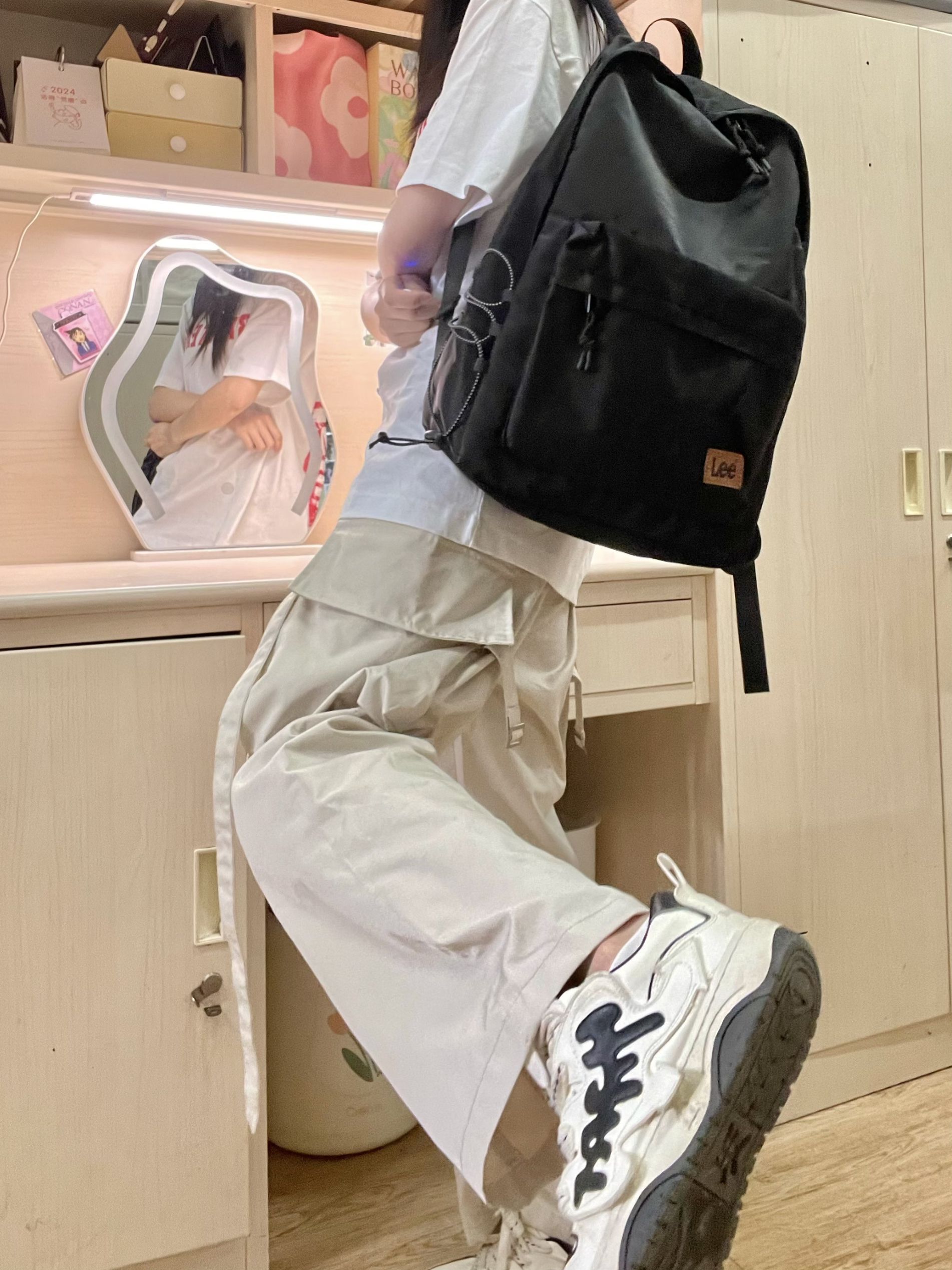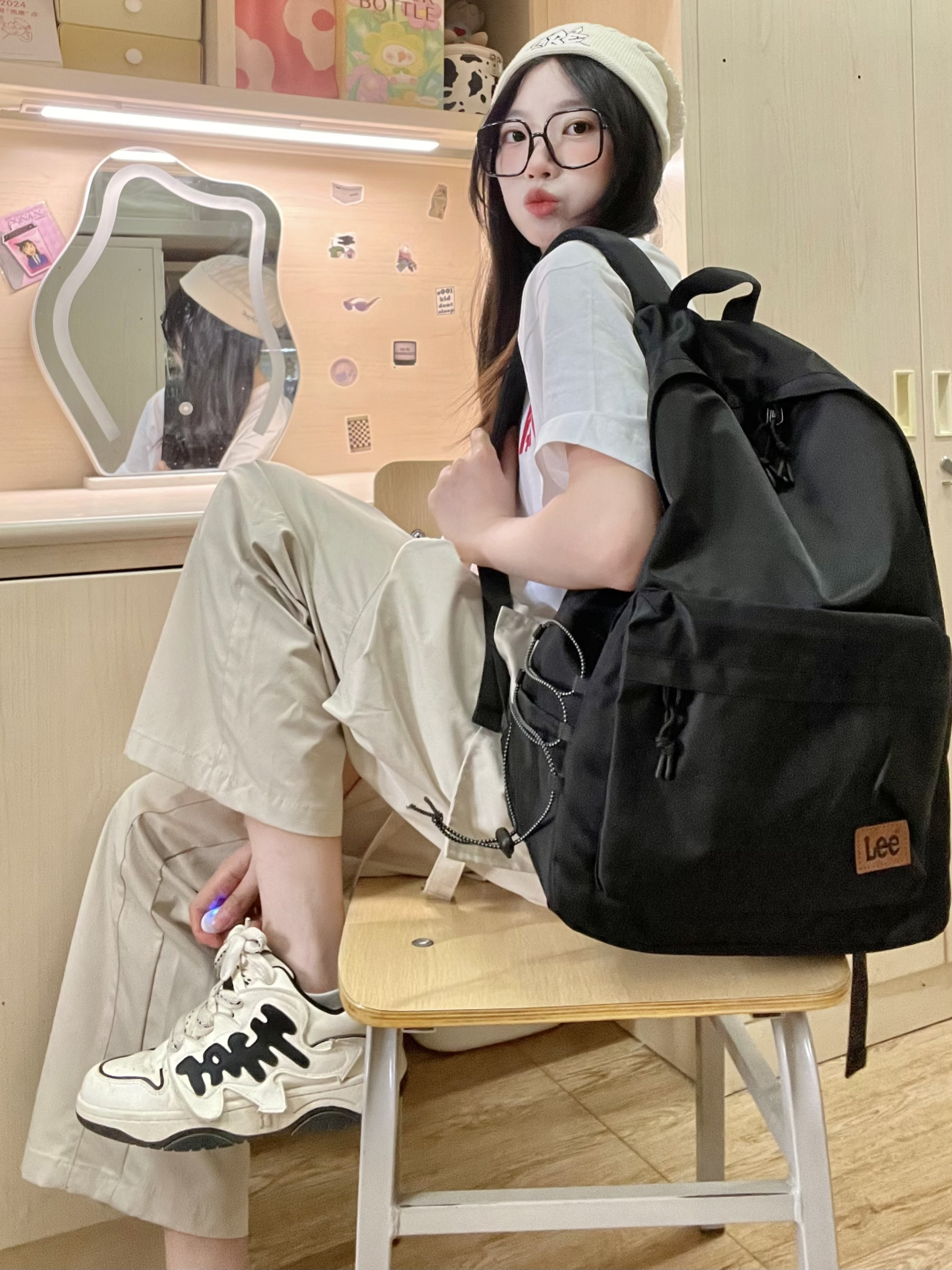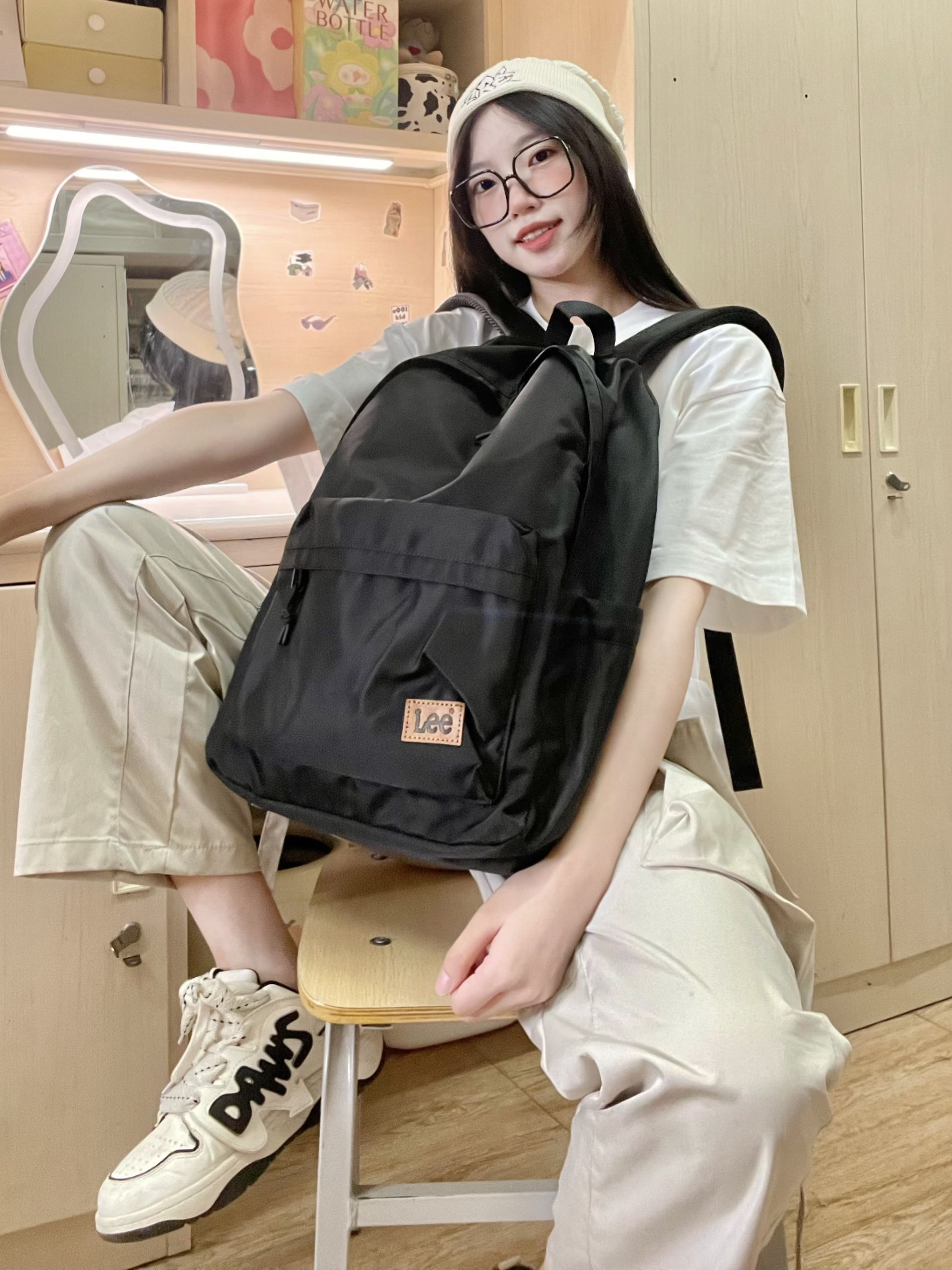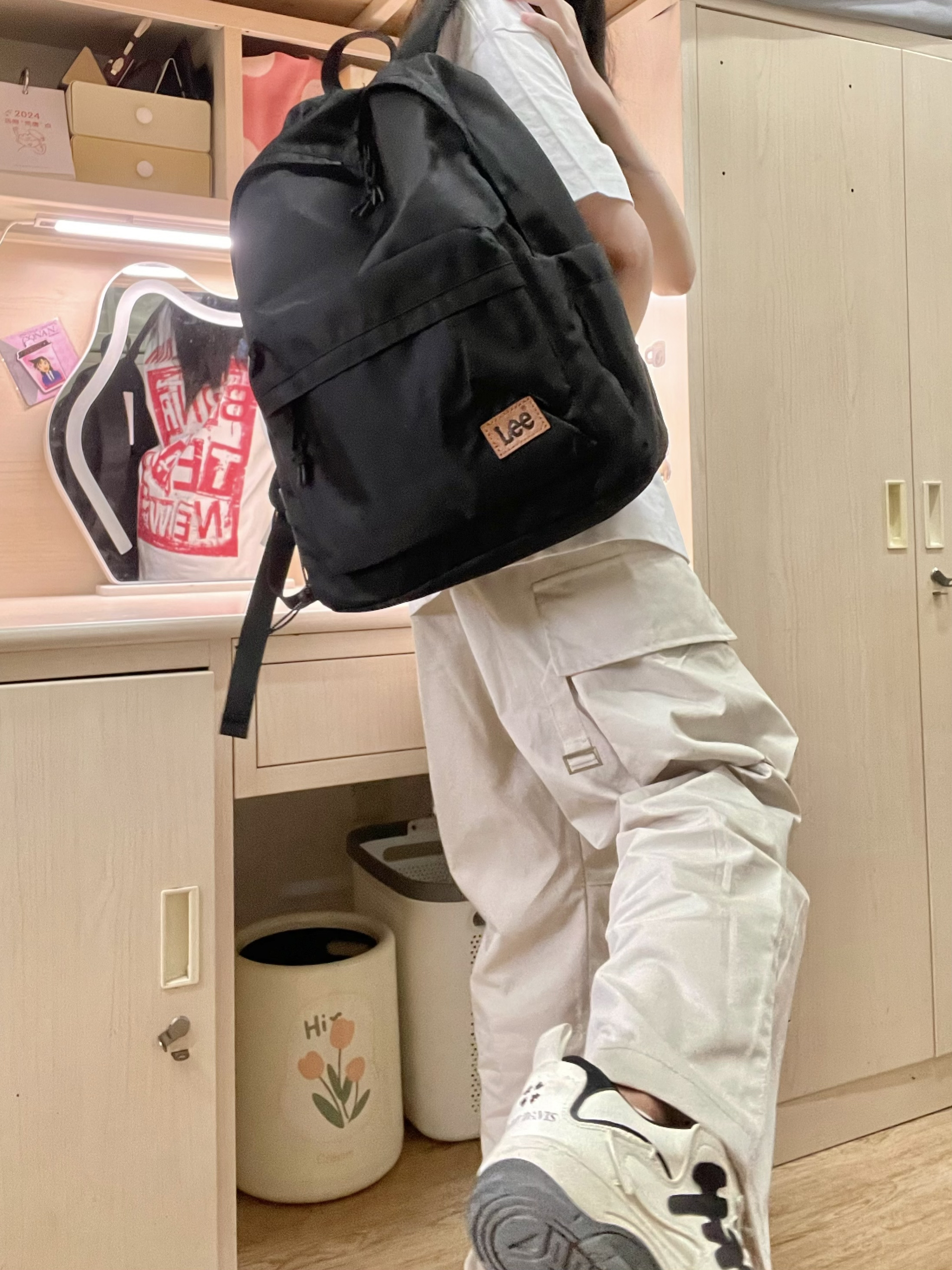 大家好吖૮ •𖥦• აᐝ我是可颂 欢迎点击今日份穿搭日记♡ᵕ̈ 大学生早八人早八魂👓 今天是一身早八女大ootd - 日常上课经典款书包必不可少 黑色是永远的经典耐脏又百搭 Lee 家的这一款📔⋆˚ 整体是黑色加经典logo 材质很结实耐磨✰•. 容量装电脑和书非常足够 双肩带设计不累肩膀 是自用款里最实用的啦✅ - 身高|体重:168cm 50kg 🧍♂️ 穿搭风格:休闲风 👔 上衣:B...