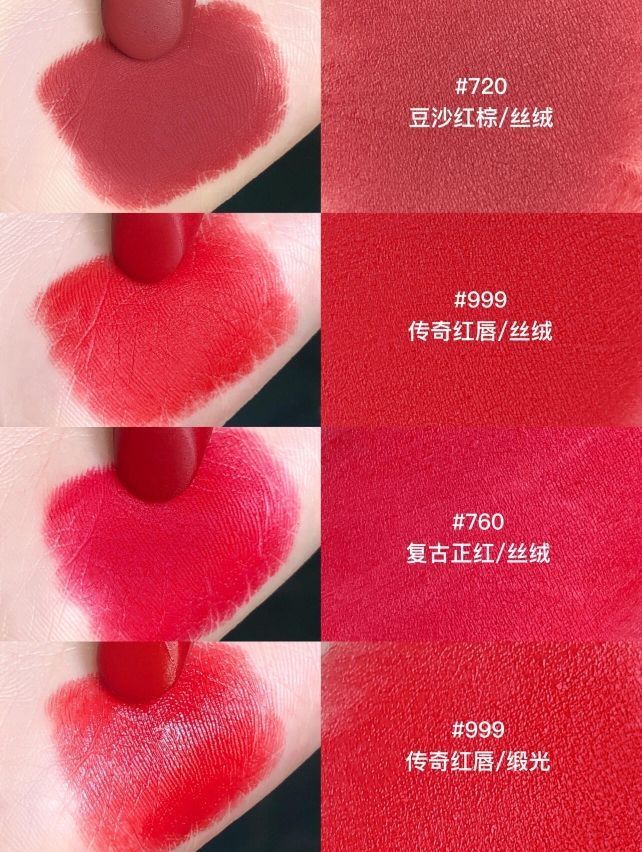 DIOR家的烈艳蓝金唇膏更新啦~总共有四种妆效的: 【缎光】:最经典的质地了,滋润好上色。 【哑光】:虽是哑光但完全不觉得干,着色度高。 【鎏金】:hin特别的珠光质感,单涂&叠加唇蜜都超美。 【丝绒】:这个新出的质地我真的是爱不完了,上嘴是雾绒绒的妆效,而且完全不会觉得干,不用打底都可以轻松上色! 💄 选了八支颜色全上嘴了~ #720 豆沙红棕 丝绒 这支绝了, 真的超爱超爱超爱!! 非常纯正的...