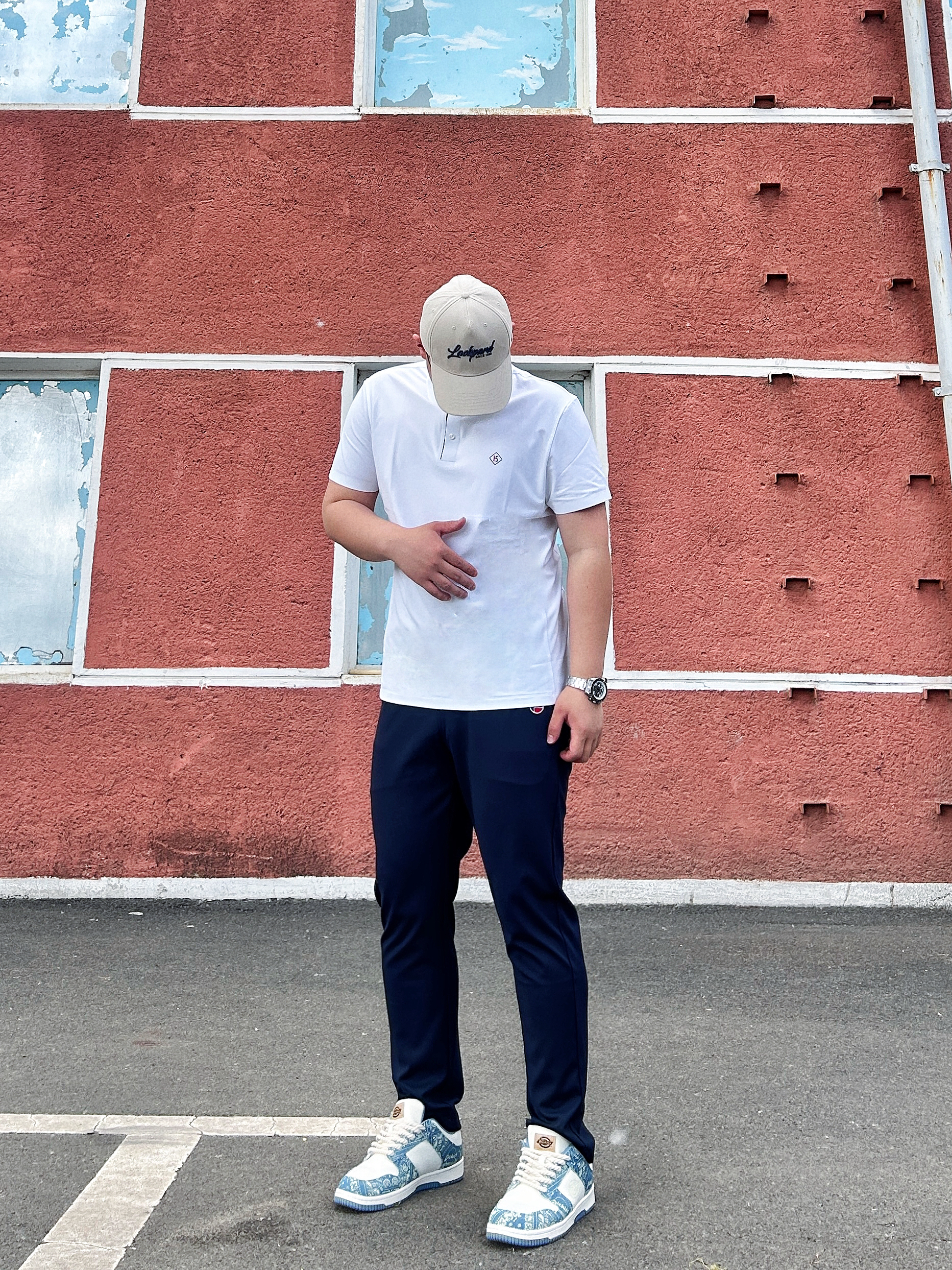 又是阳光男士的一天 简单的纯白Polo衫搭配冰丝休闲裤👖 藏蓝色的裤子搭配正好是点缀 Polo衫正好是立领的设计 排扣都可以简单调节,脖子松紧适中 裤子穿起来休闲舒服,冰丝的面料透气吸汗 夏天的清凉感也可以get到 搭配一双休闲的板鞋成熟百搭 出门刷街旅游都可以穿,也可以简单的商务穿搭 情侣出门也是面子到位辣