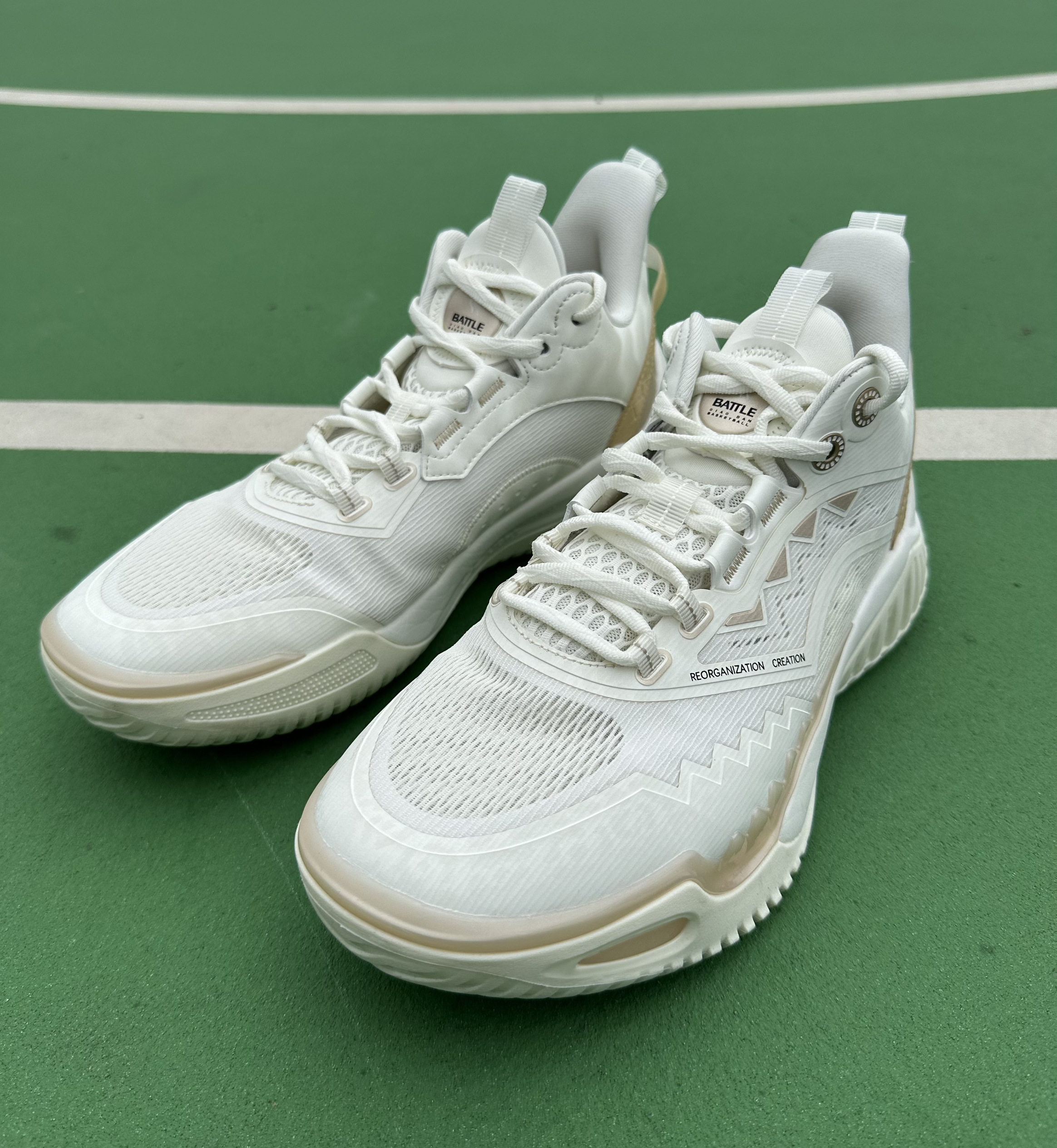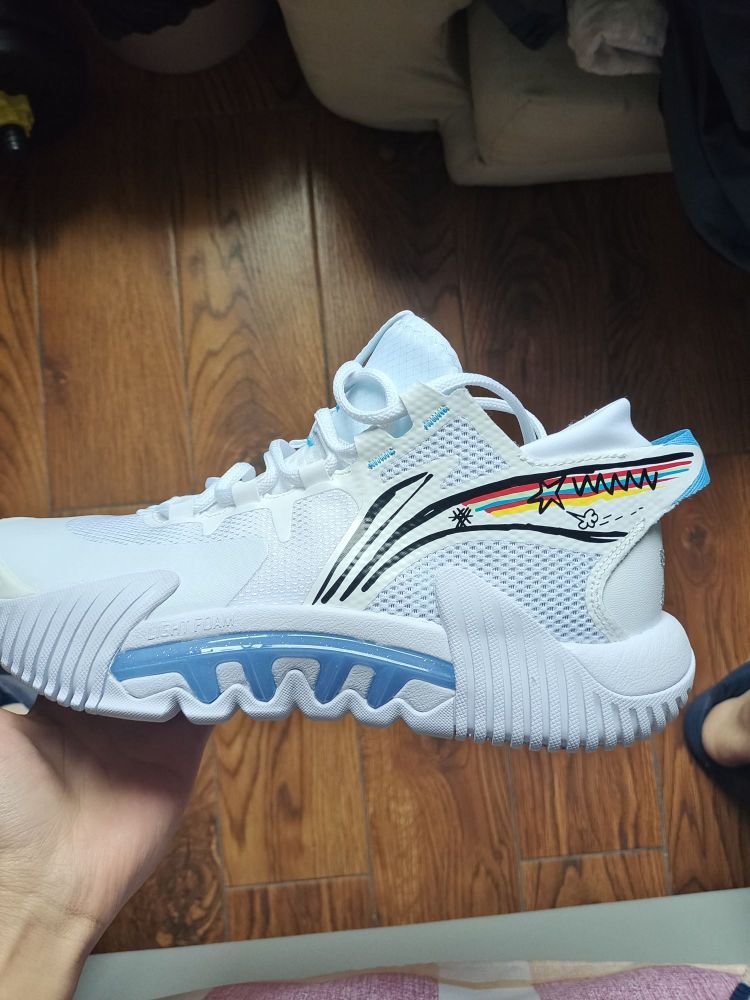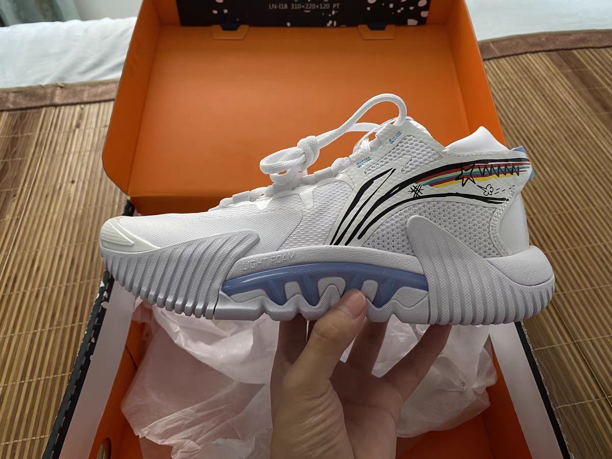 💍双层工程网布材质保证了鞋面的透气与强度,侧面tpu上包角度比较刁钻,点到为止❗️恰好给了宽脚党生存的空间,中底全掌巭light脚感软弹,鞋垫下方的尼龙支撑片保证鞋身抗扭,后跟革料加固提高脚踝锁定✅ 💍鞋脚一体性出色,运动中没有掉跟问题,防侧翻角做得比较细节❗️❗️通过圆润的上翻来杜绝卷边风险,前掌内侧橡胶面积也给的相当到位,外侧用了点状纹路进一步补强✅即使做极限角度变向依旧避免了打滑风险。 💍超...