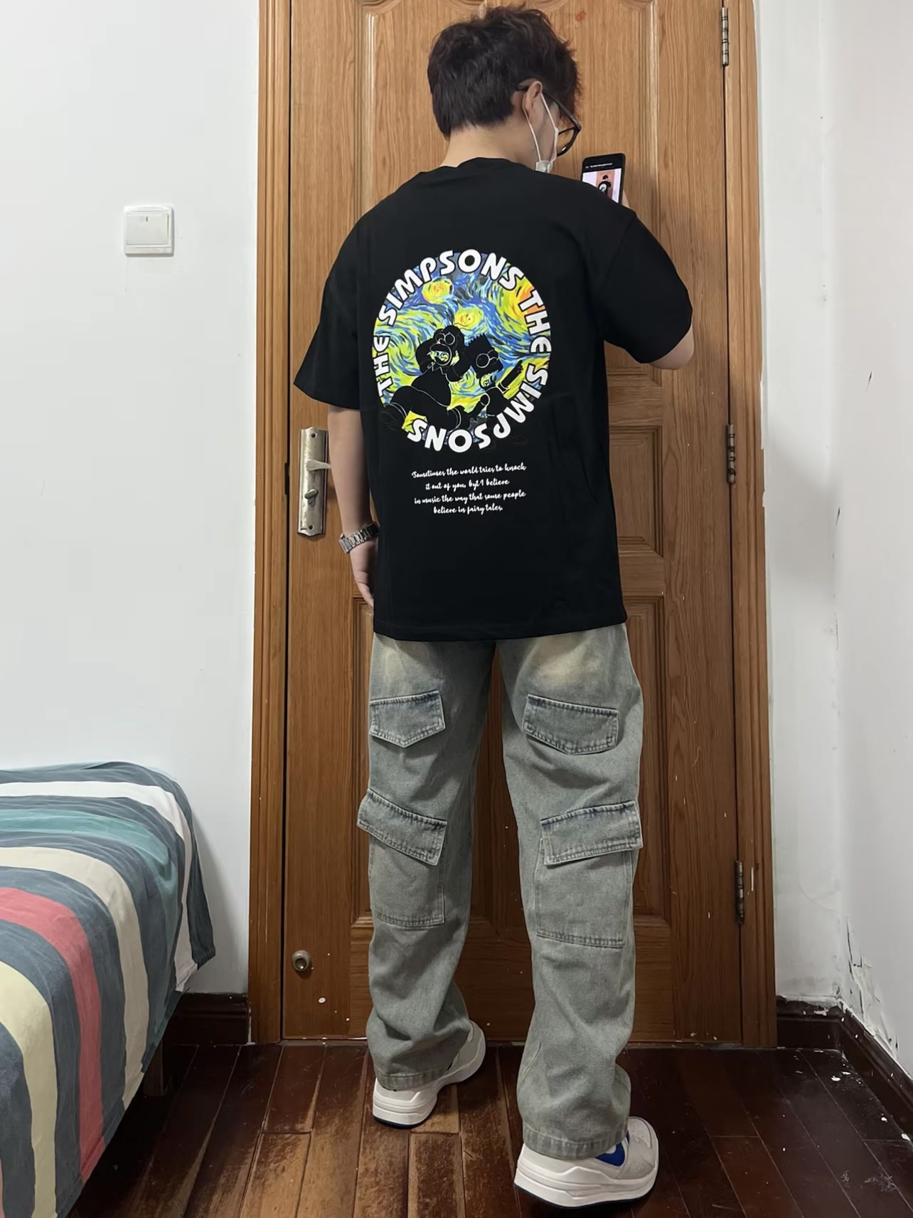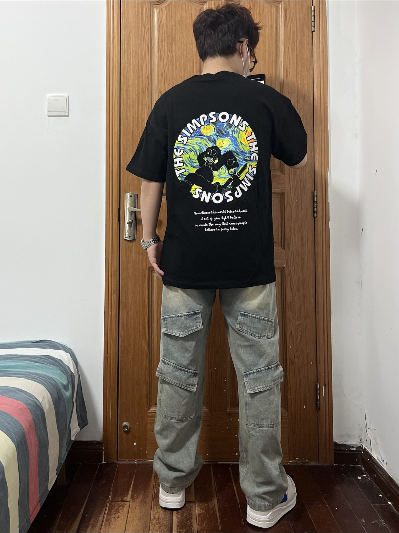今日份穿搭分享🎉 The Simpsons辛普森一家 星空油画短袖 不管是正面还是背面都是圆形的图案 区别就是正面简单一点背面星空油画更好看 整体走的都是搞怪帅气风格Feel❗️ 黑色T恤也很显瘦百搭帅肯定没得说 原谅我这次跟风买的没踩雷哈哈哈🉑️ 搭配一条做旧牛仔裤和蓝色勾子Nike 👔 The Simpsons辛普森一家 👖 牛仔裤 👟 Nike 🙋♂️ 170/120斤 XL 持续带...