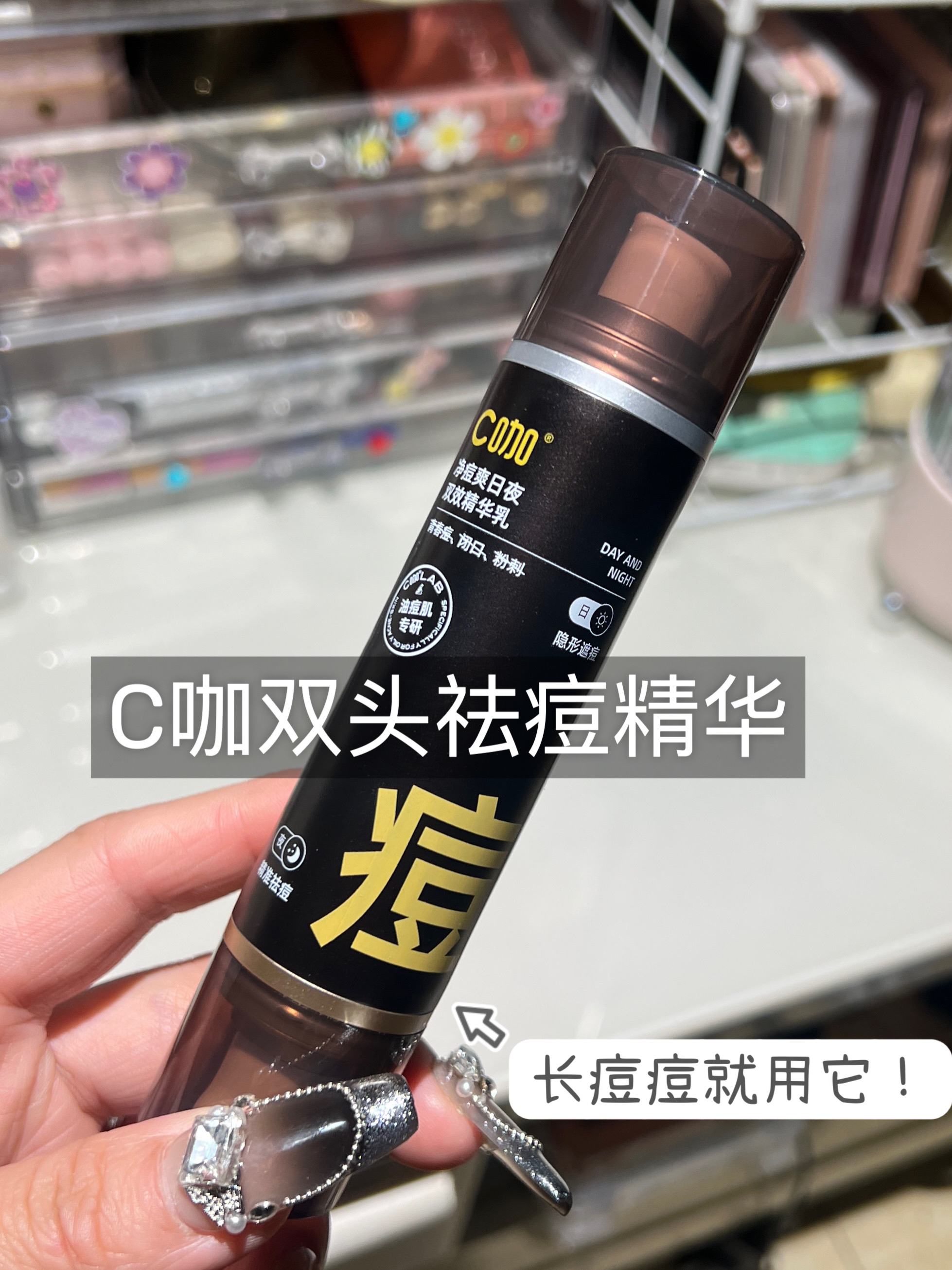 大水滴家的祛痘点涂精华。这款祛痘精华比较适合像我这样的熬夜党长痘痘。脓包痘、红肿痘,闭口痘都可以用这款祛痘精华。要等它水粉分层了之后再用,点涂到自己痘痘的位置,大概一分钟就会变干,可以等30分钟去洗了或者第二天早上再洗。脓包痘痘一般都会瘪下去的,还能淡化痘印。