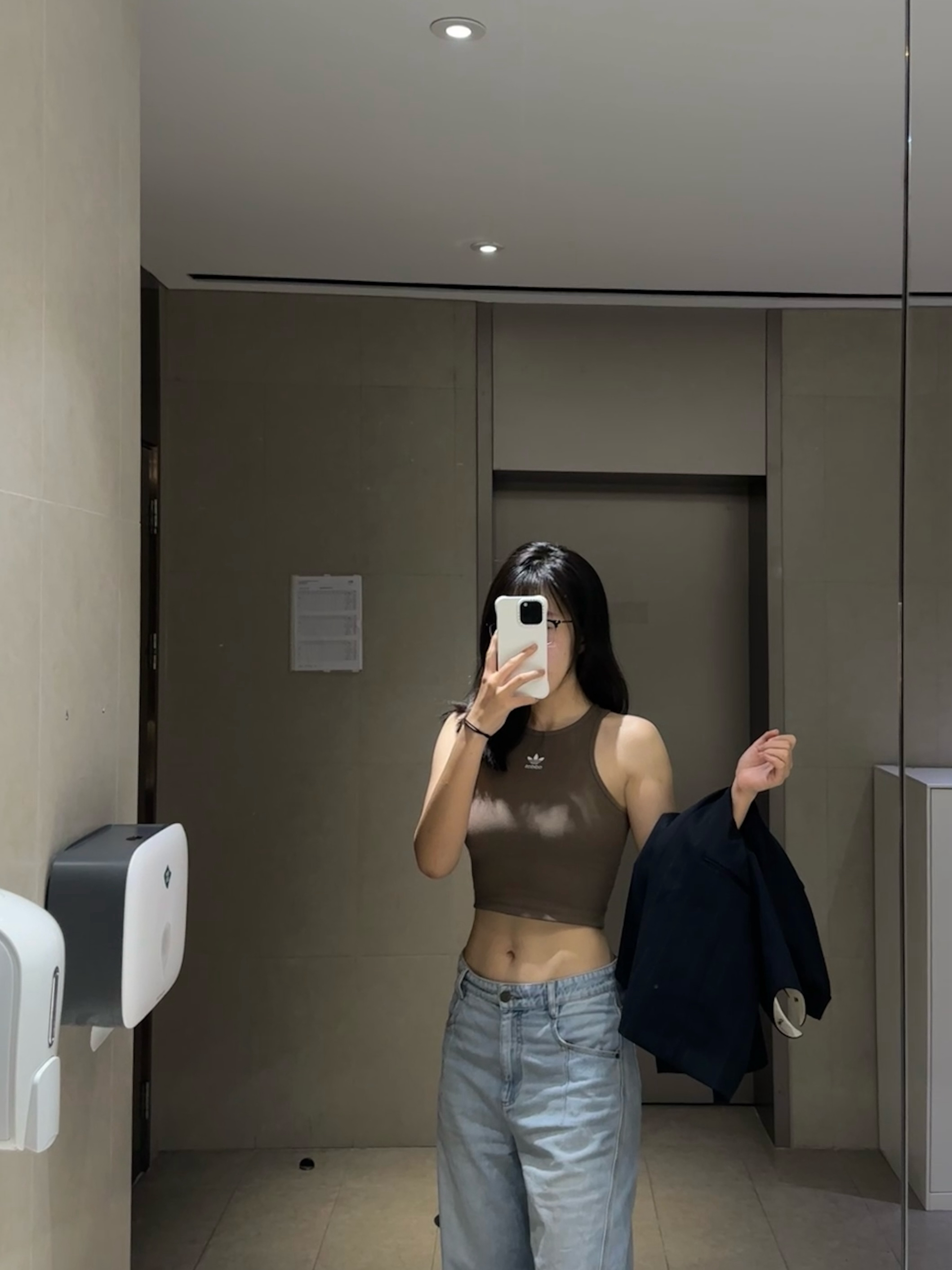 上班时间西装革履一本正经 下班之后吊带背心做回自己 外套👚:LESS 裤子👖:玛丝菲尔 内搭👙:三叶草背心
