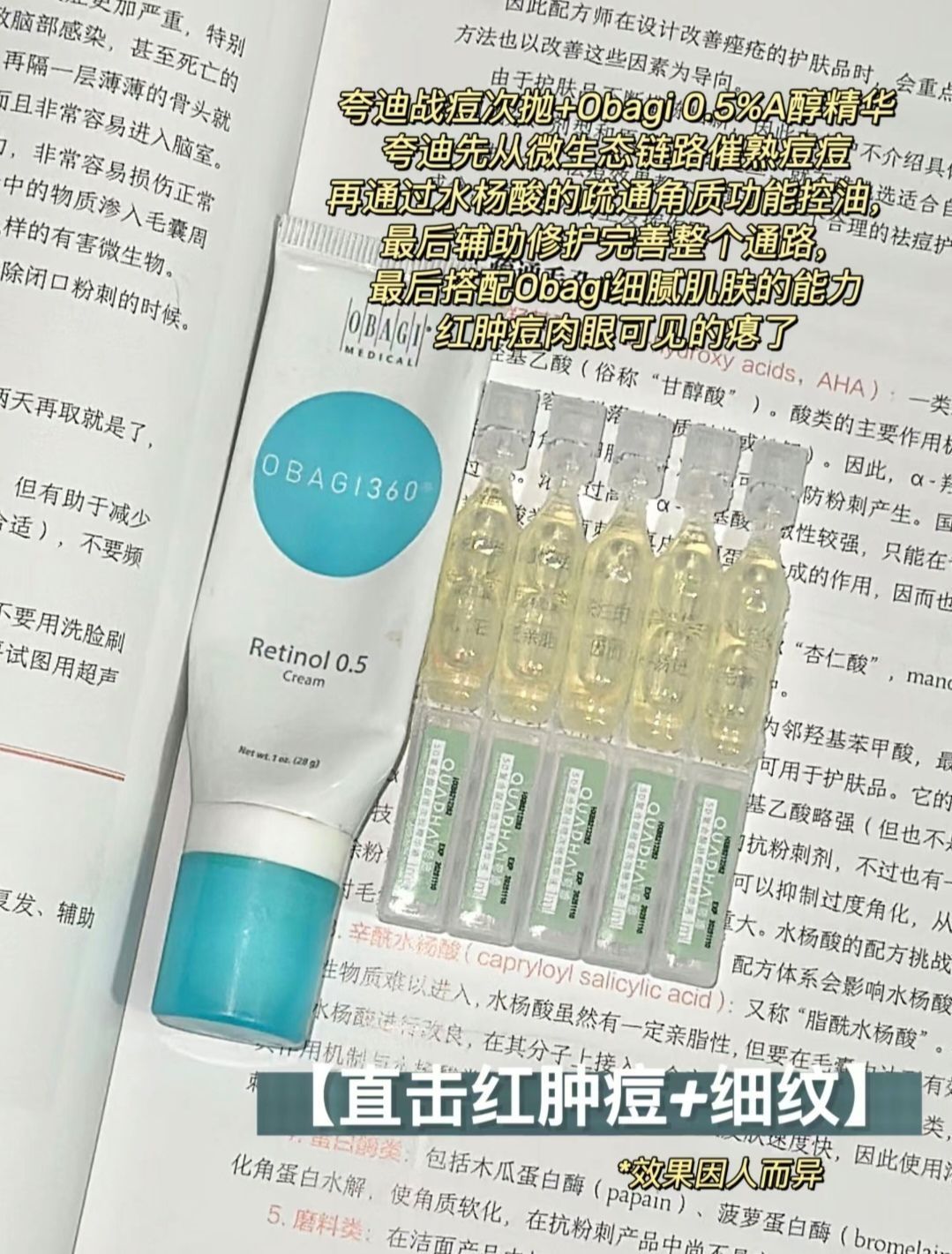 这不618快到了,给大家分享四组祛痘搭配 以夸迪战痘为代表,准备了4组水杨酸+A醇搭配Routine: 1、新手入门:夸迪+露得清A醇2、直击细纹+红肿痘:夸迪+Obagi 0.5%A醇精华3、痘痘+暗沉消消乐:夸迪+Janmari琉光精华4、360o无死角平滑:夸迪+科瑞肤A醛精华(用料超猛,仅适合超级耐受皮) 注意:以上都是需要酸和A醇都建立耐受!!!且隔开使用*