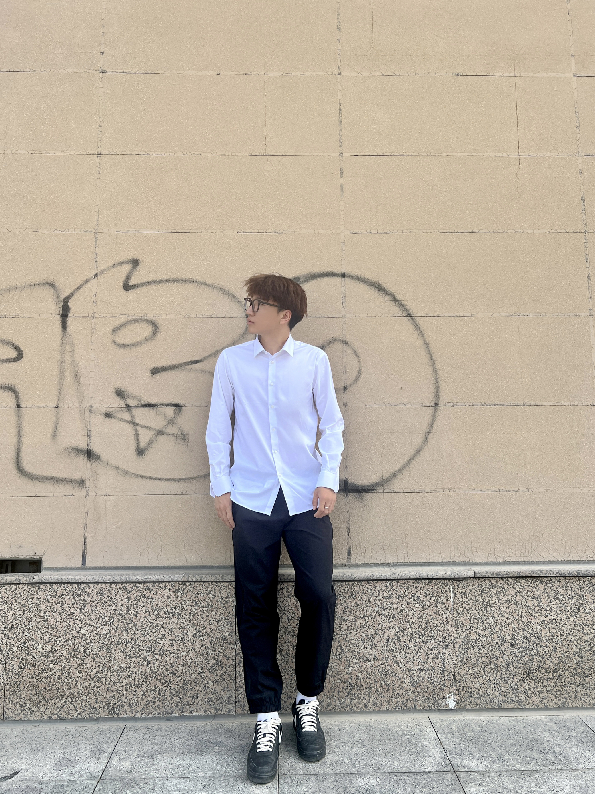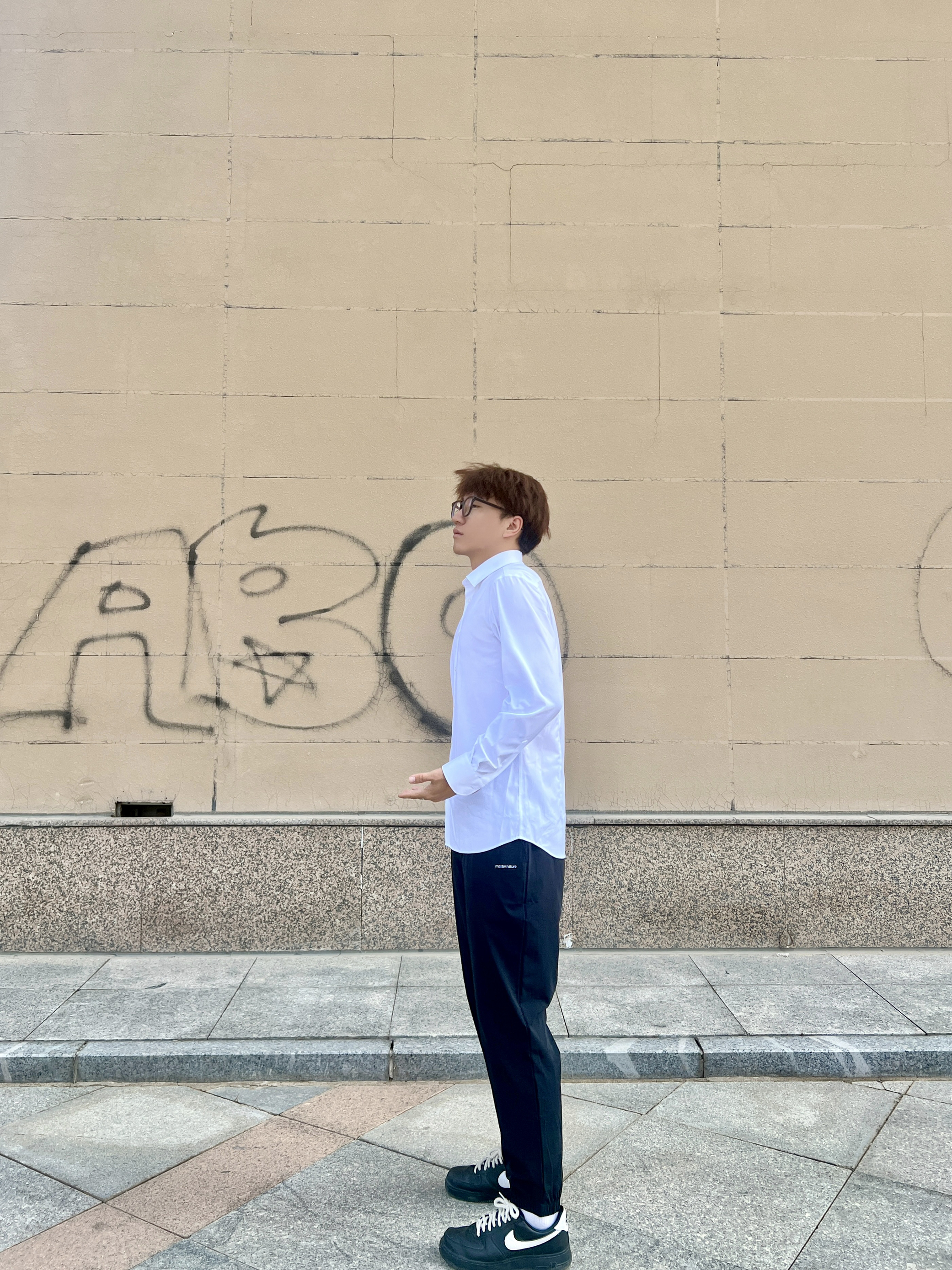 今天一身休闲通勤穿搭 上身是报喜鸟家的衬衫✨ 搭配了一条wearx家的束脚裤 速干冰丝面料舒适 上身紧致显身材🌟 而且还有一定的防晒效果 腰部有一个可伸缩扣 可以自己调松紧🫧 整体还是比较正式的 平时出勤上班穿都没问题✅ ——— 👔👖:我185/75一身都是2xl,都是比较合身的,不过体重稍大的建议拍大一码。
