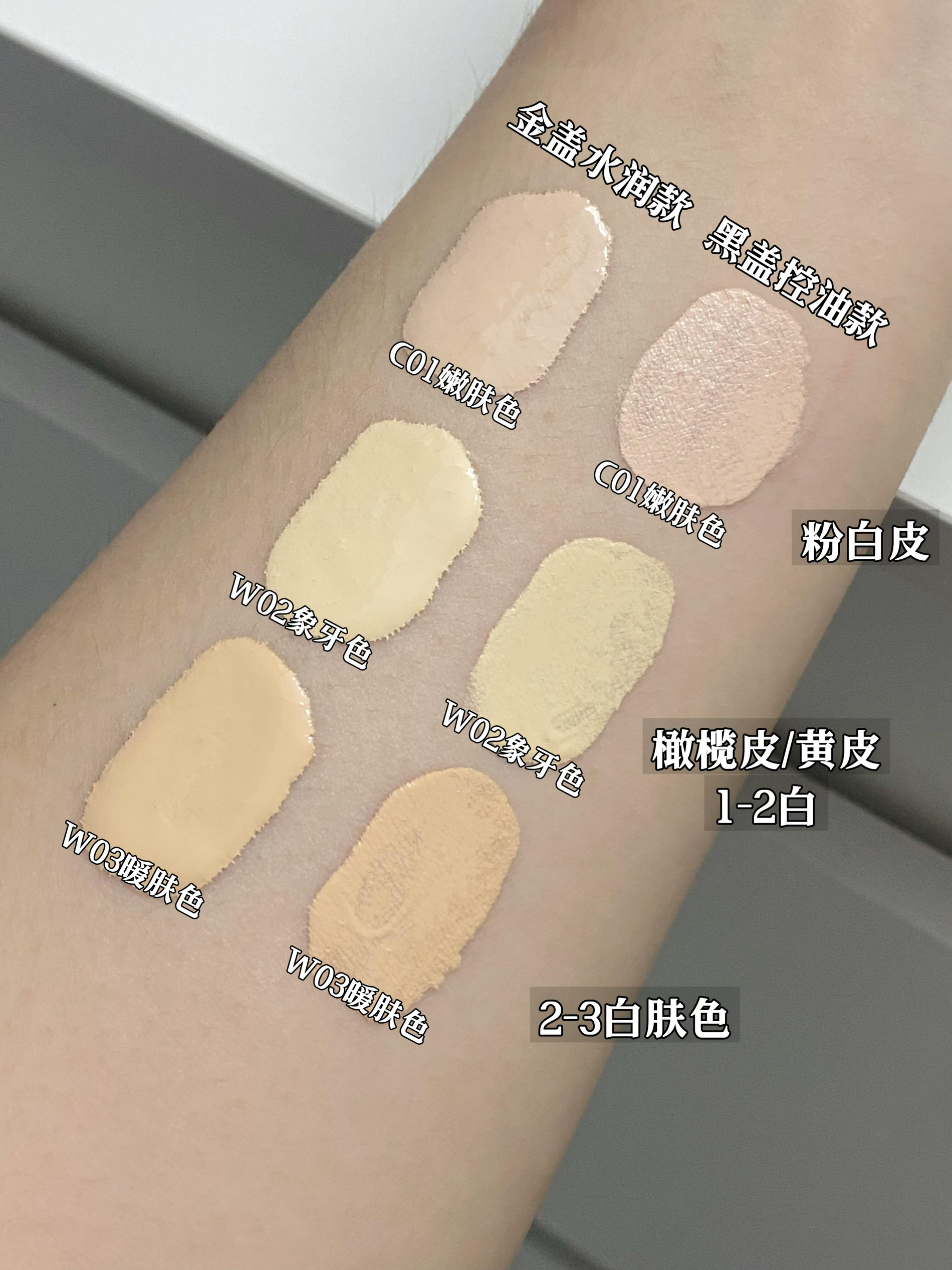 白菜价国货粉底液!!! 几十块用处几千块大牌妆效! 不服它服谁!!! 上脸的妆效真的巨自然! 我是黄一白用的都是W02亮肤色 ✅小金盖水润款W02: 适合干皮、混干皮 打出来就是很清透的奶油肌妆效 很轻薄水润 完全不带卡粉的 ✅小黑盖哑光款W02: 适合油皮、混油皮 拍出来就是很高级的柔雾哑光妆效 遮瑕力特别好 持妆扒脸还控油! 平价又好用的粉底液!不火真的没道理啊!!!