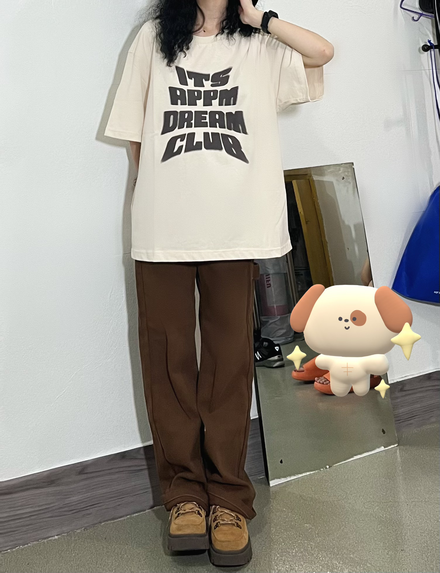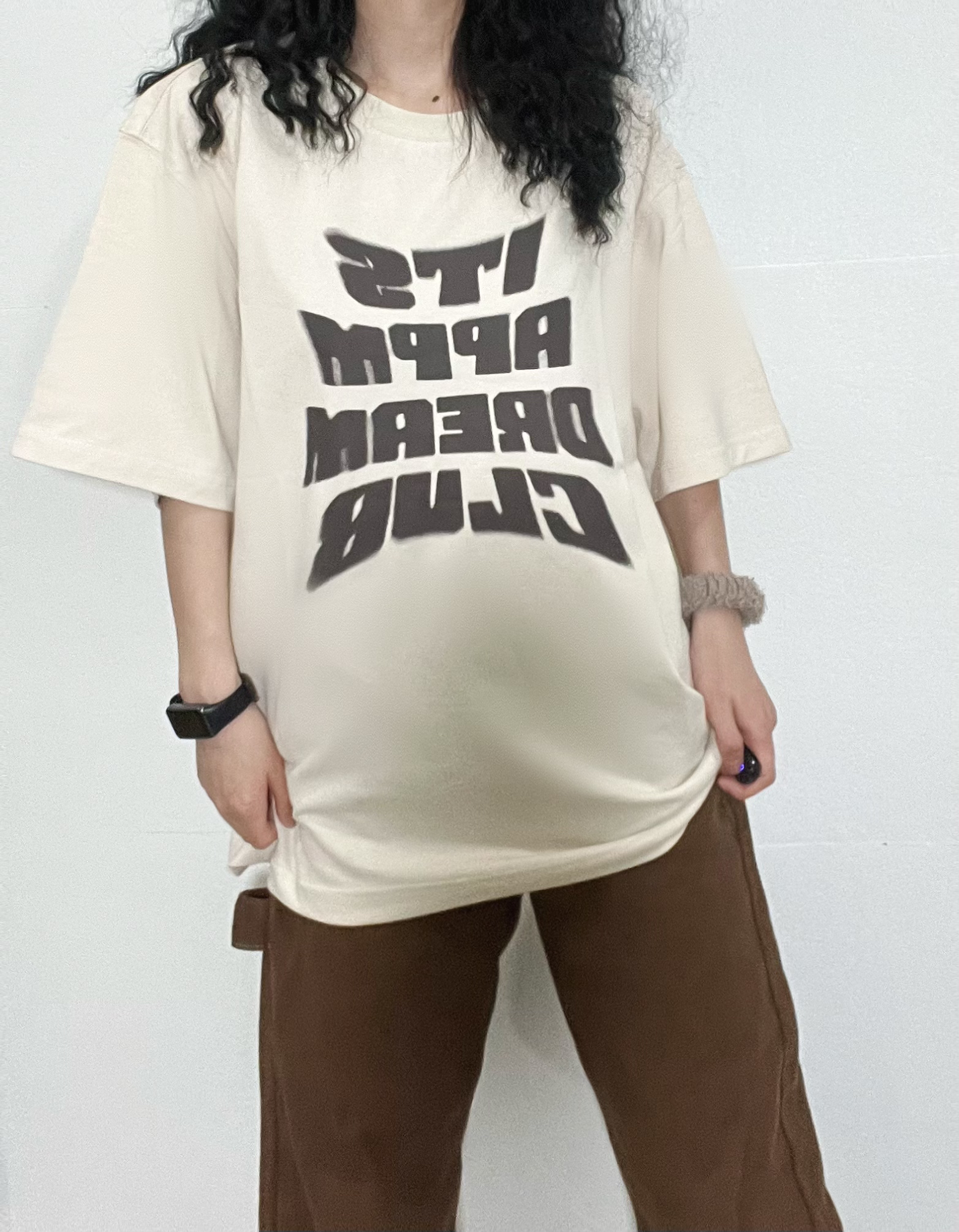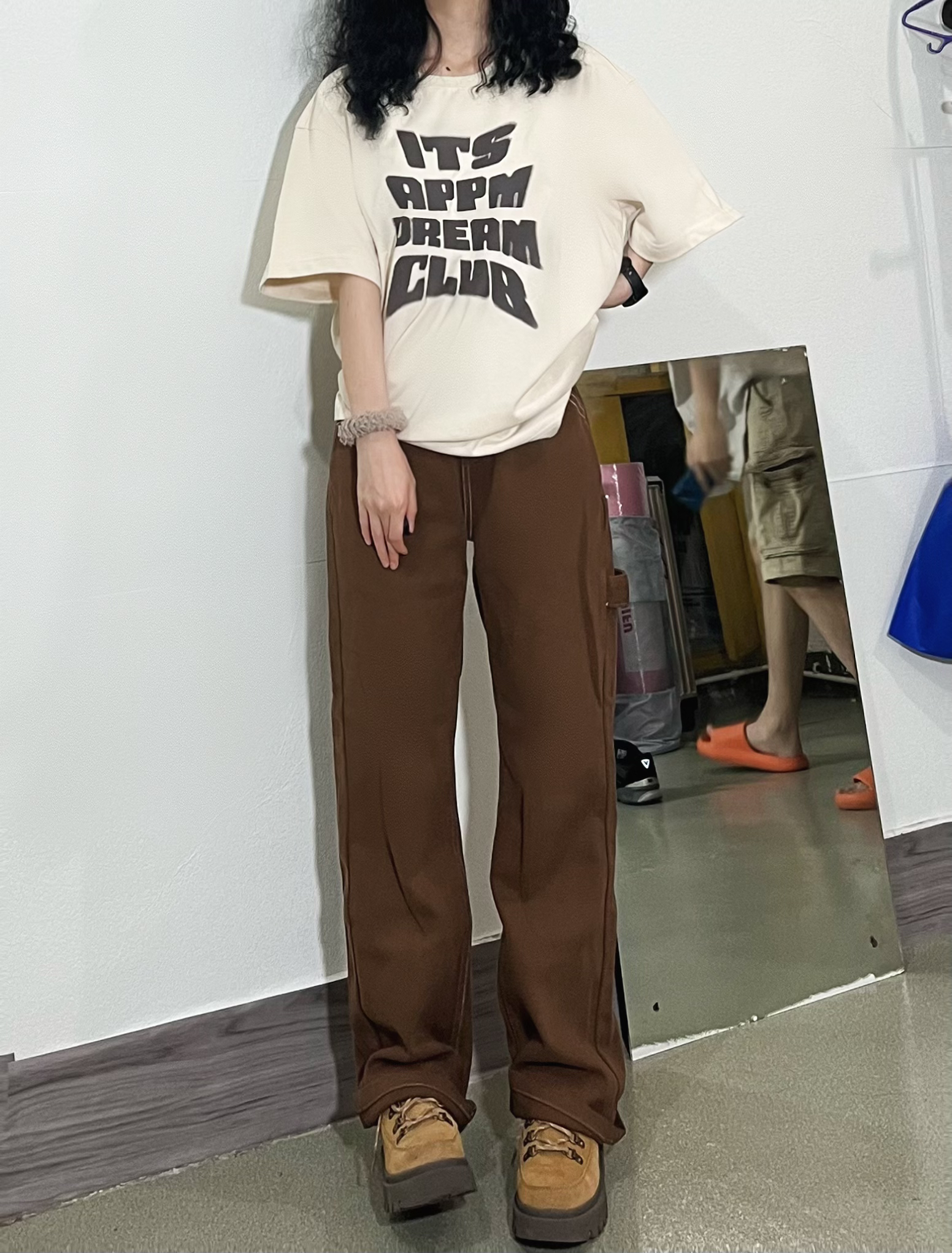 👧156/74 超酷的字母短袖上衣!搭配棕色直筒裤,美式复古味十足~