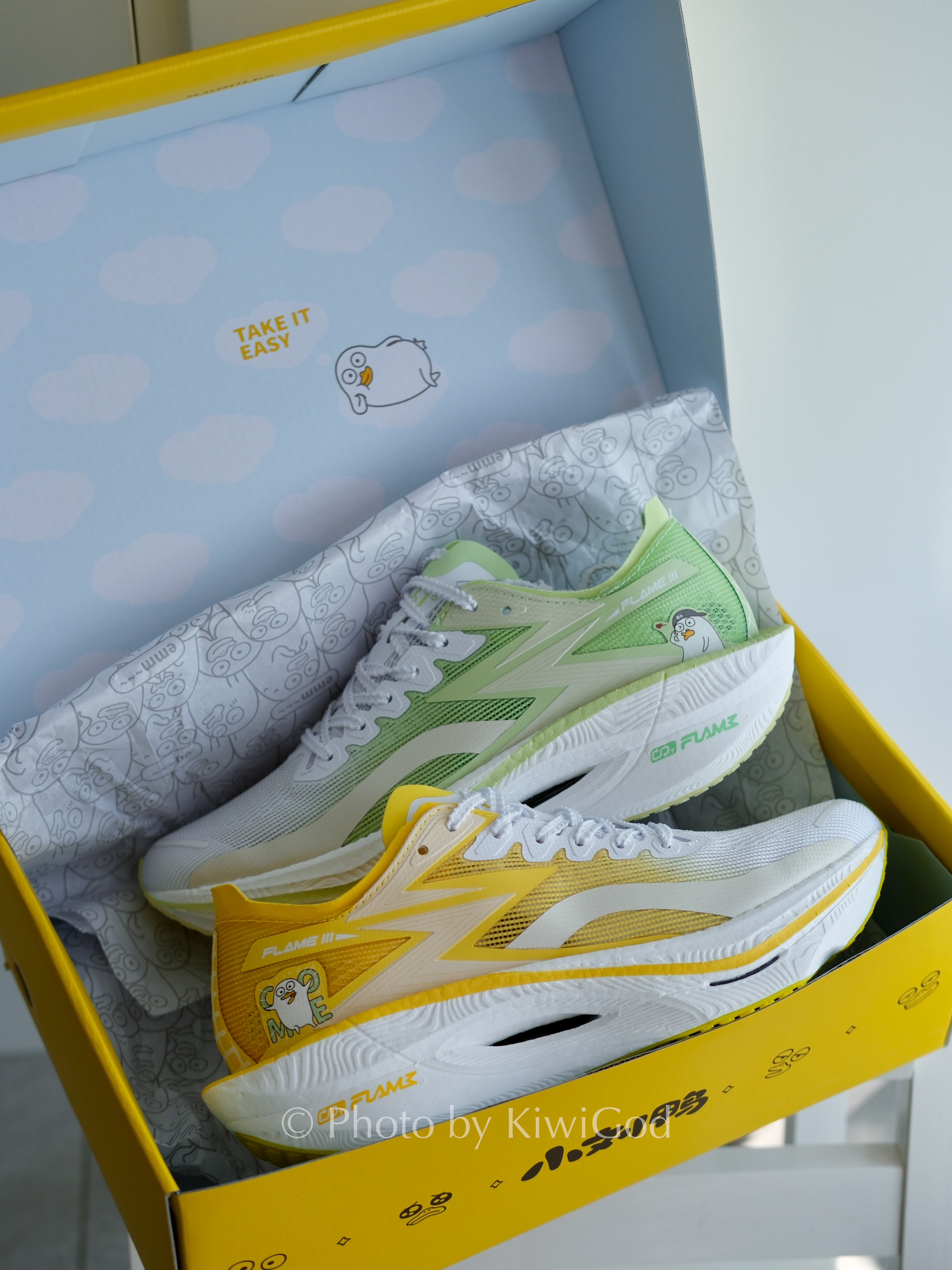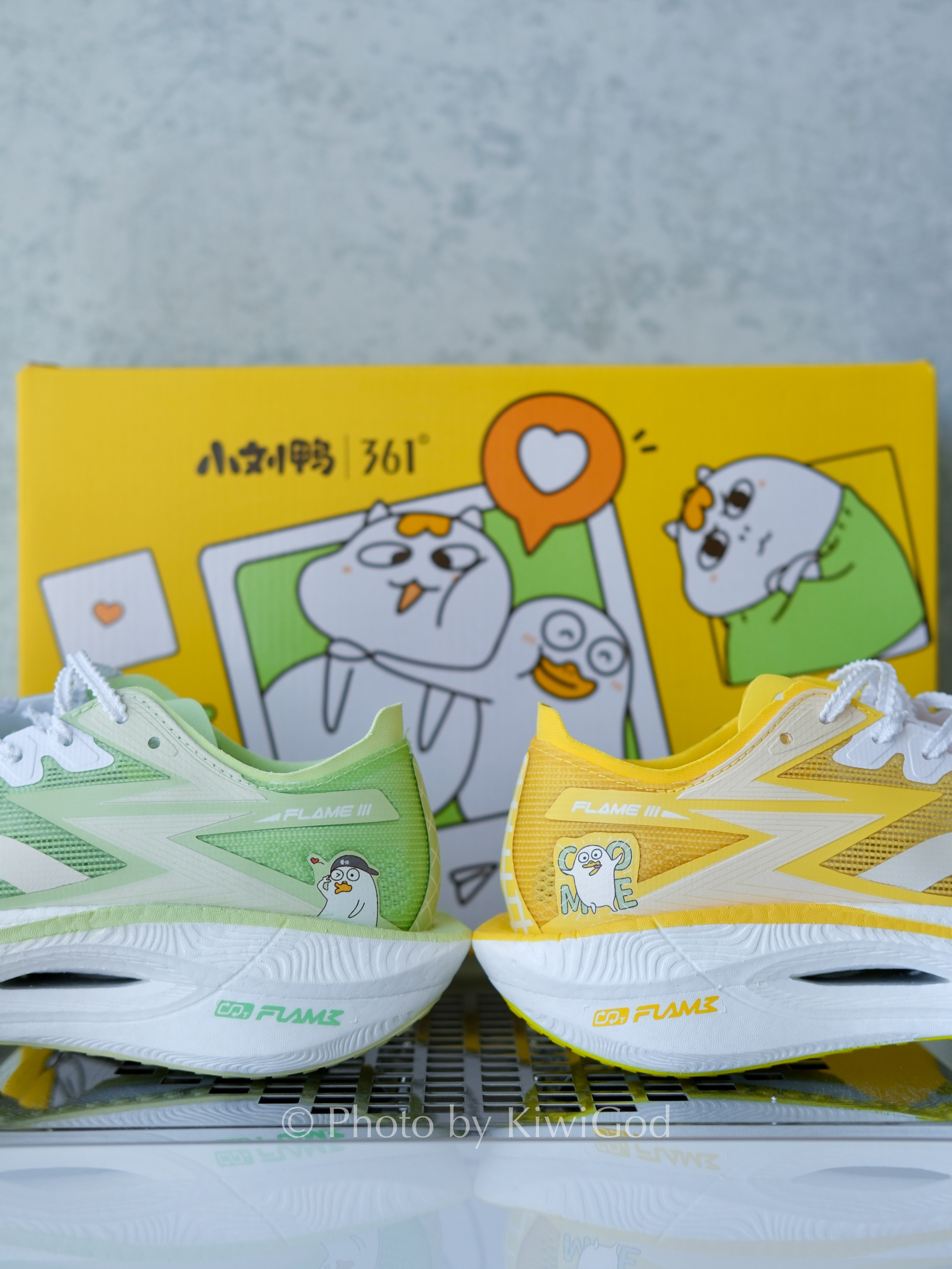 看看我的飞燃3,是不是跟你们的不太一样呢~看到后跟你就懂了~表情包顶流——小刘鸭! 🏃🏻♂️这好像是飞燃3的第一个联名配色(后浪是自家人配色不算不算~)。左右脚是鸳鸯配色~嫩芽般的绿色和活力柠檬黄,非常活泼夏日。鞋身和鞋垫上都有联名IP元素。 🎁这次的彩蛋在鞋底,两种不一样的配色盲盒发售,大家拿到颜色不同可不要跑去售后喔~ 飞燃3大家肯定很熟悉了,不多废话,定位虽然是较低门槛的碳板跑鞋,仍...