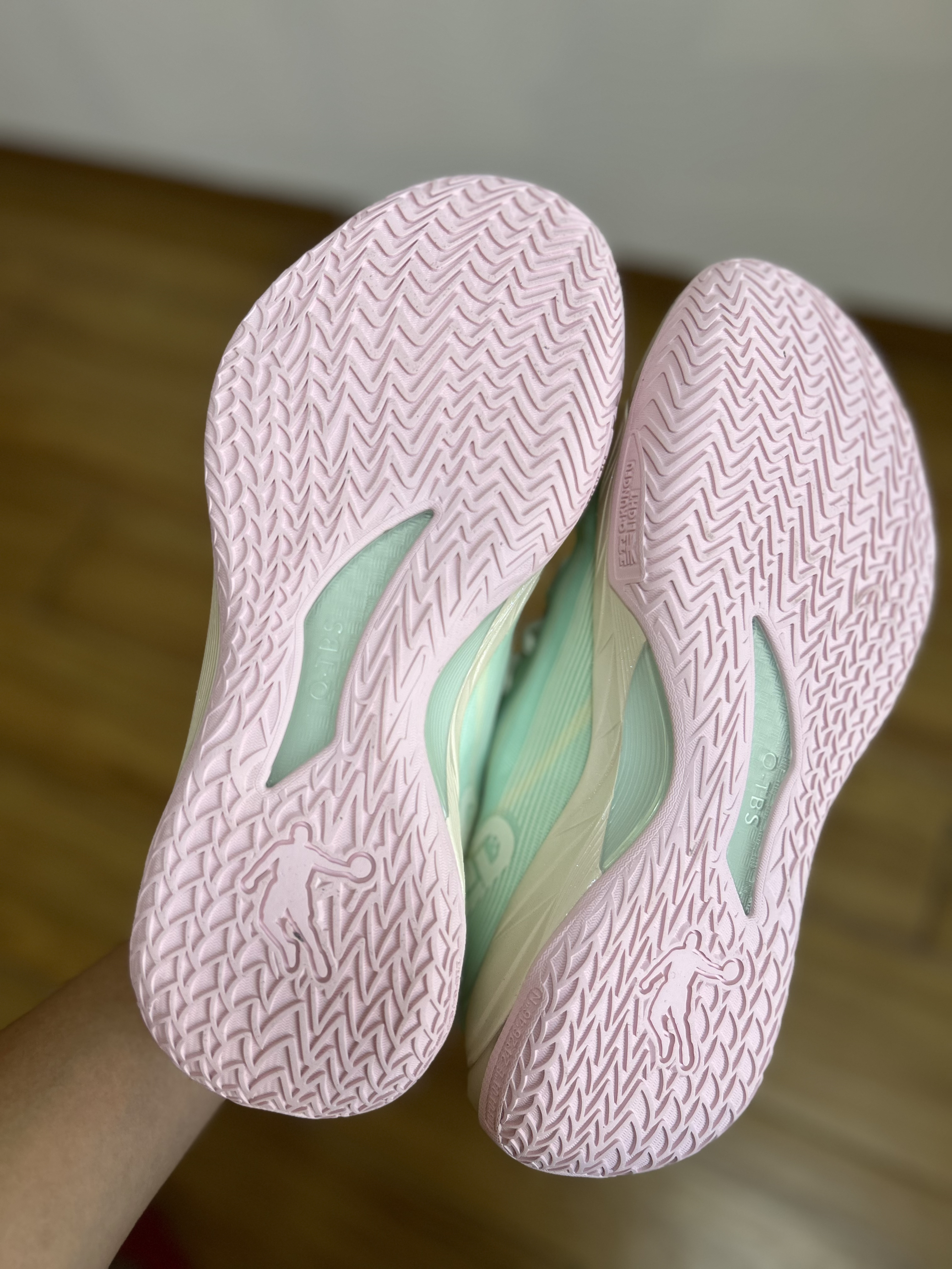 这双毒牙很帅,后跟很有辨识度,是我整双鞋最喜欢的地方,整体做工还不错,没有多余的溢胶,这个价位性价比很高。 谈谈上脚的一些感受: 👉整双鞋刚性很强,前中后配有TPU,抗扭完全没问题,整体包裹还不错,上脚感觉很有安全感。 👉中底前掌配置巭科技,调教不是很软榻,是那种很韧的感觉,鞋底按压也有轻微回弹,应该中底衰减会控制得不错,鞋垫也很舒服,配上精英袜怕不及待要实战。 👉鞋底花纹类似人字纹,纹路很深,耐...